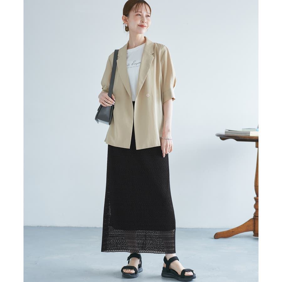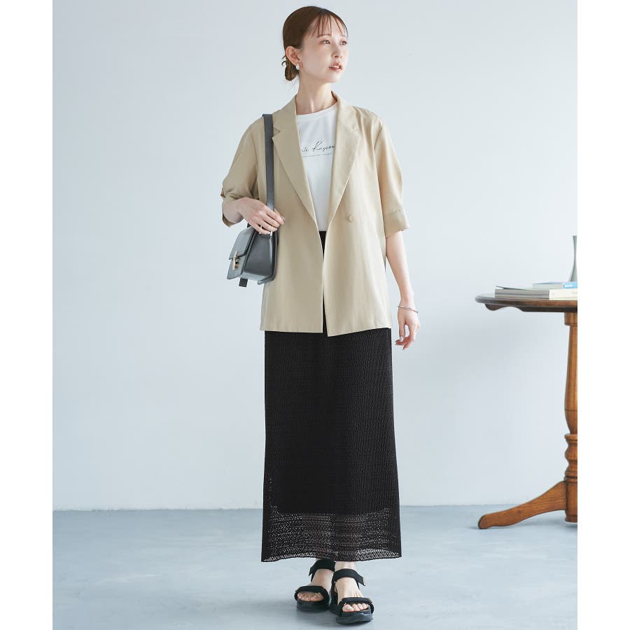 ・カジュアルなTシャツと合わせて、大人な抜け感スタイルがおすすめ。