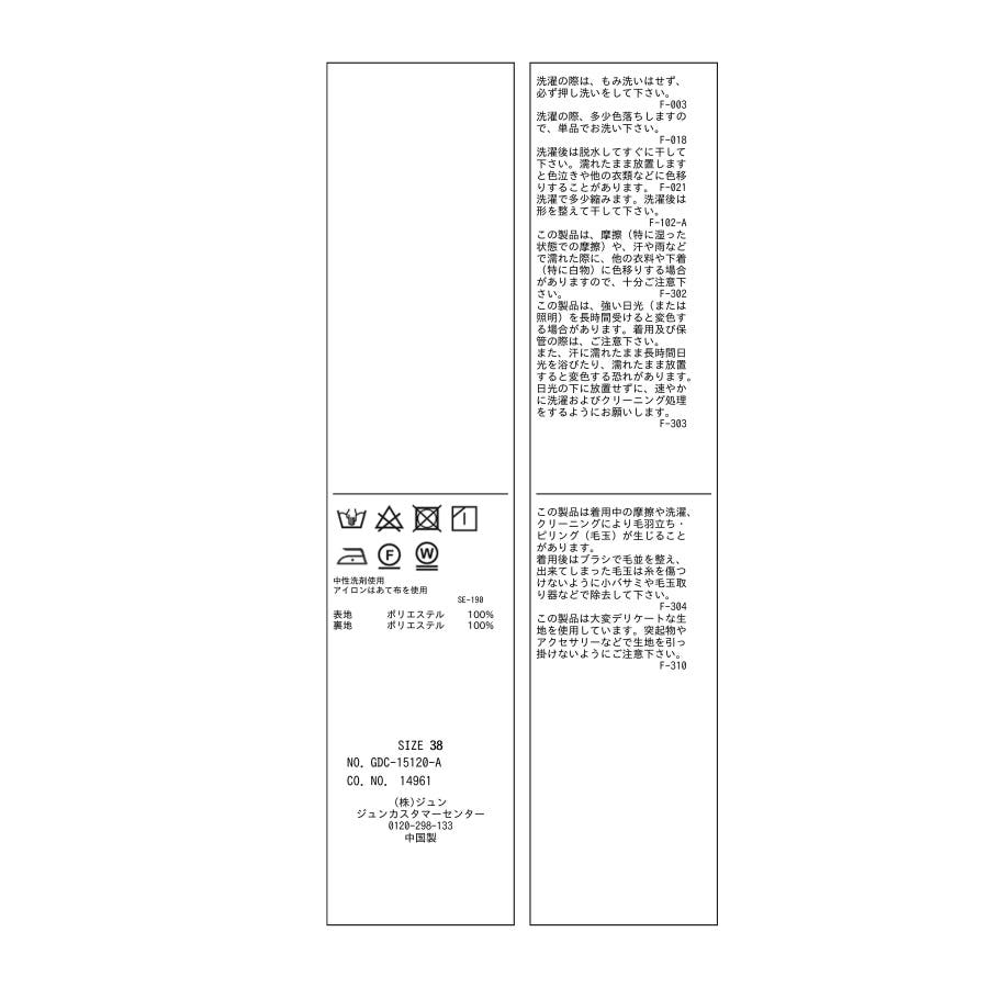 【洗濯表記】手洗い|漂白不可|タンブル乾燥不可|自然乾燥|アイロン仕上げ可|ドライ可|ウエットクリーニング可