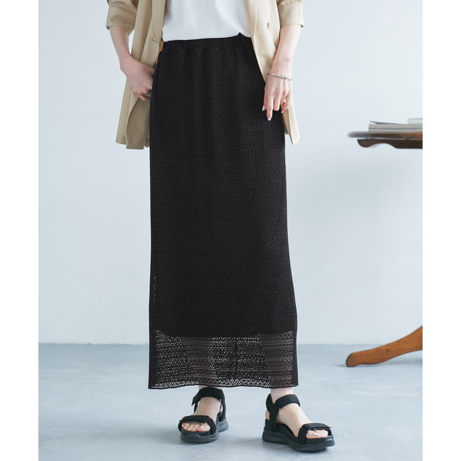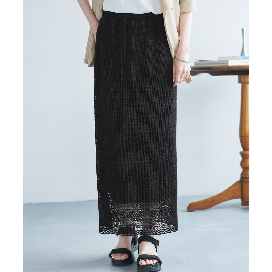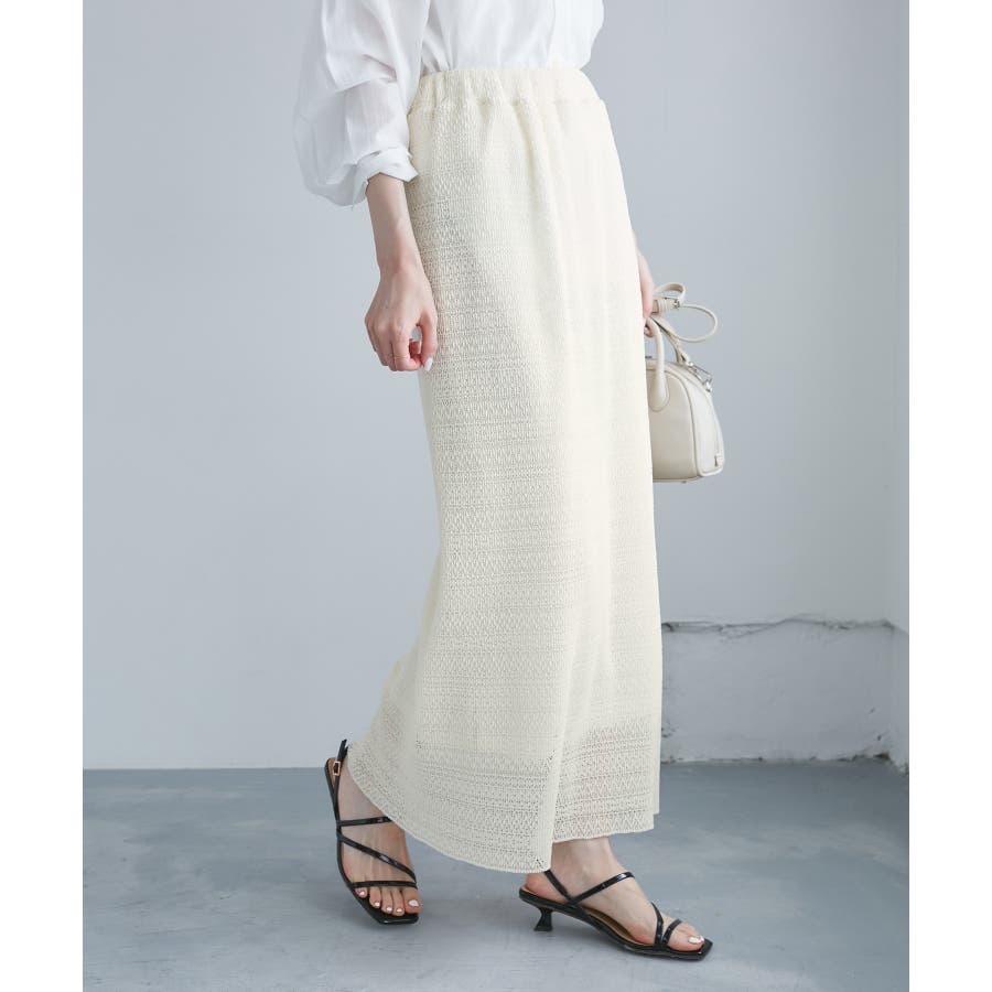 ・繊細なレースにプリーツ加工を施した、上品な印象のアイラインスカート。