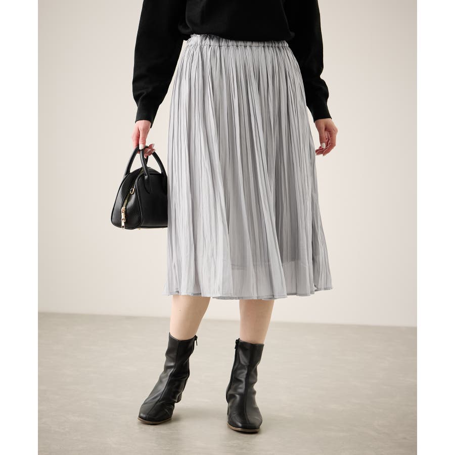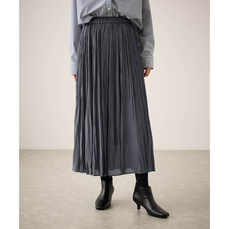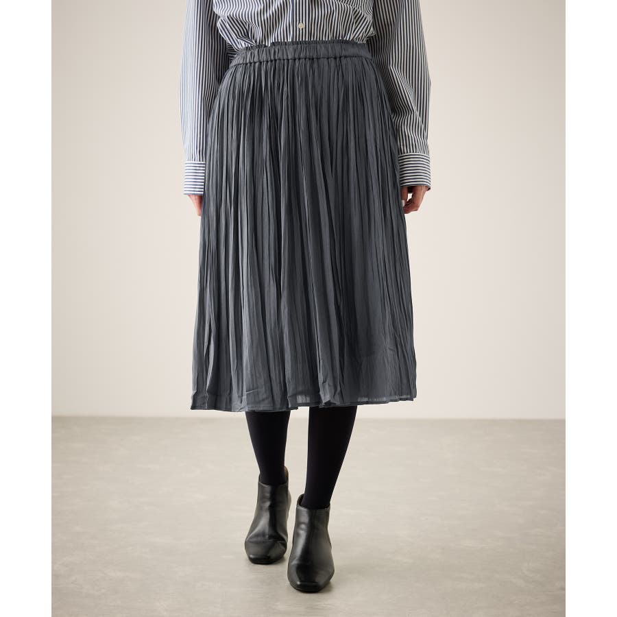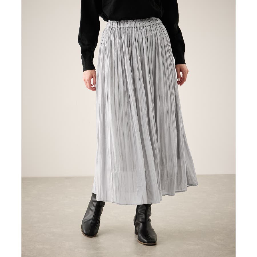 ・ナチュラルなシワ感のある、楊柳素材のロングスカート。