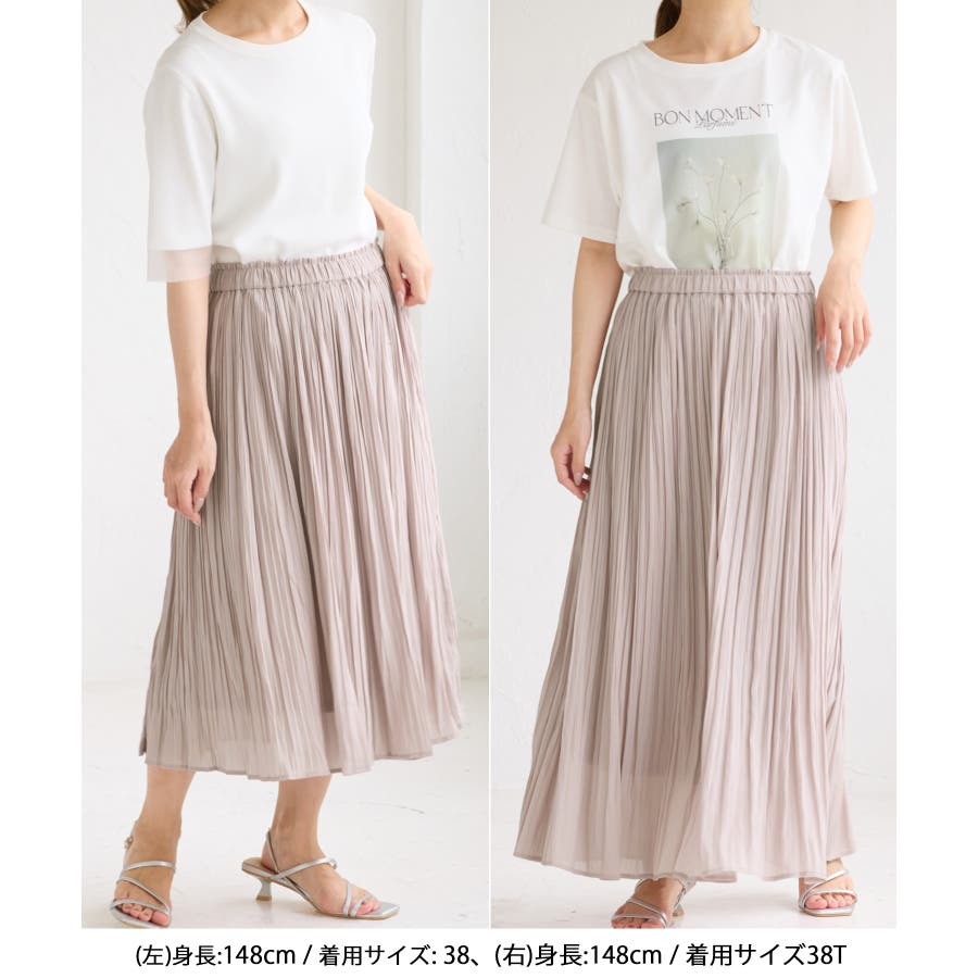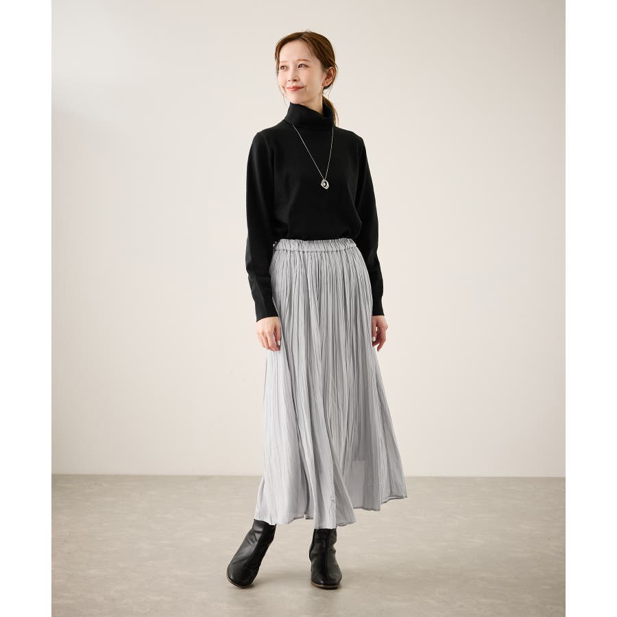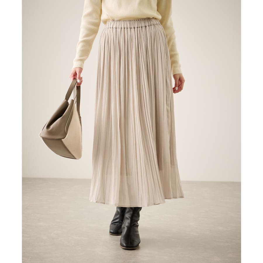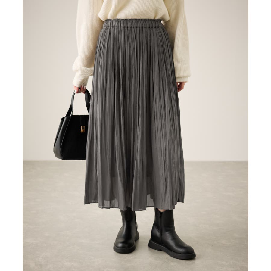 ・ナチュラルなシワ感のある、楊柳素材のロングスカート。