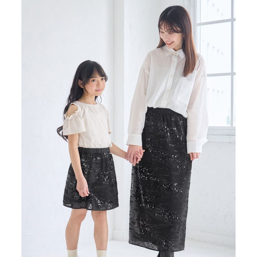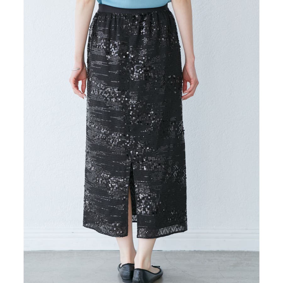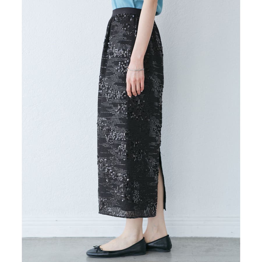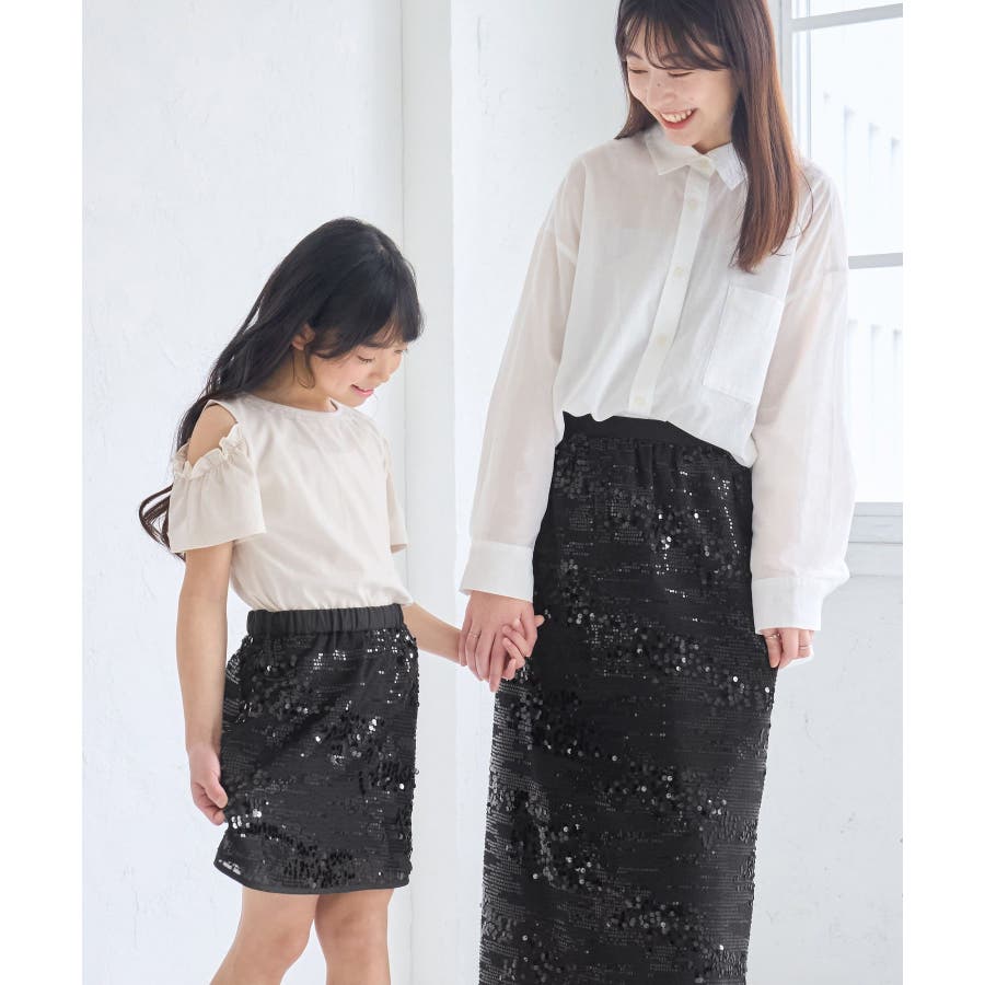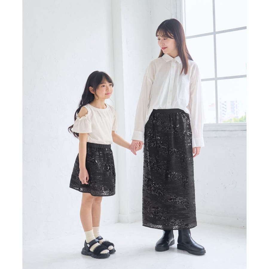 【素材感】 ・きらびやかなスパンコール素材を用いたアイラインスカート。 【デザイン・シルエット】 ・大人が着やすい長め丈で、深いバックスリットにより歩きやすさをキープ。 ・ウエストゴムでイージーな穿き心地。 【カラー】 ・ブラック、オフホワイトのモノクロカラー2色展開。 【スタイリングポイント】 ・レギンスを重ね、バブーシュやバレエシューズでラフに着こなして。 ・スウェットシャツやフーディーで着崩すのもおしゃれ。 ・ジャケットやシャツ合わせできれいめにも対応可能。 ・同シリーズでKIDS(品番:GRC25010)も展開しているので、親子お揃いもおすすめ。 ----------------------------- 裏地:あり 透け感:裏地がない部分はややあり 伸縮性:なし ウエスト:ゴム ポケット:なし 生地感・厚さ:普通 季節:春・夏・秋・冬 ----------------------------- ※撮影時の光、お使いのモニター環境によって色の見え方が違う場合がございます。 ※モデル身長:165cm 着用サイズ:38