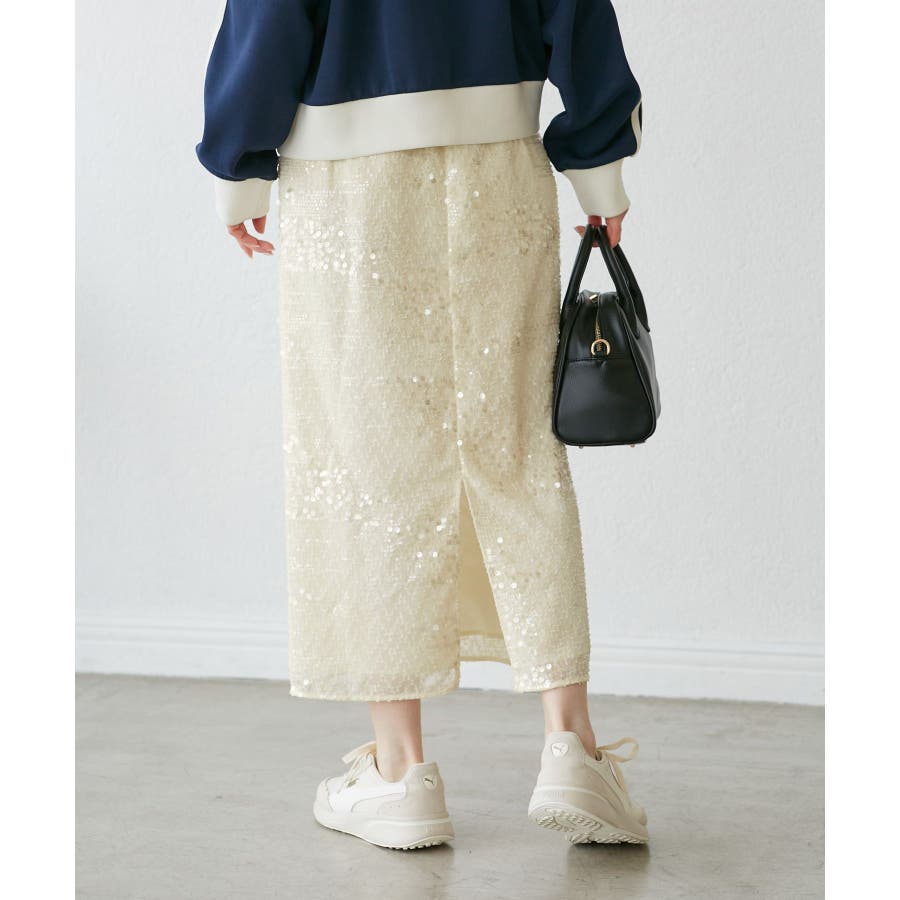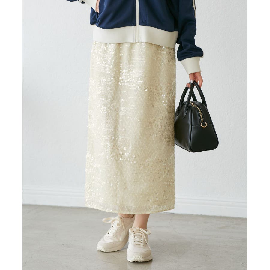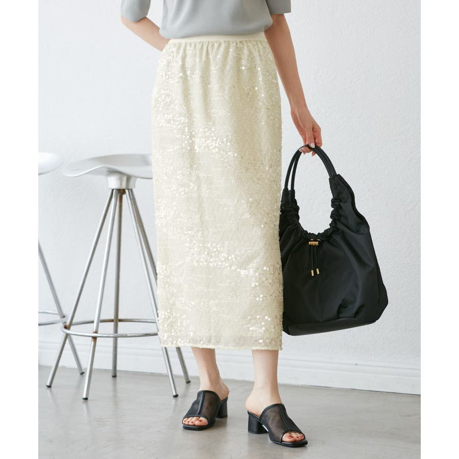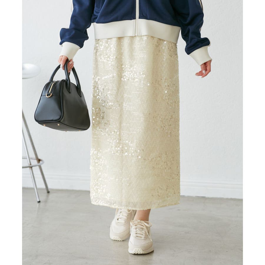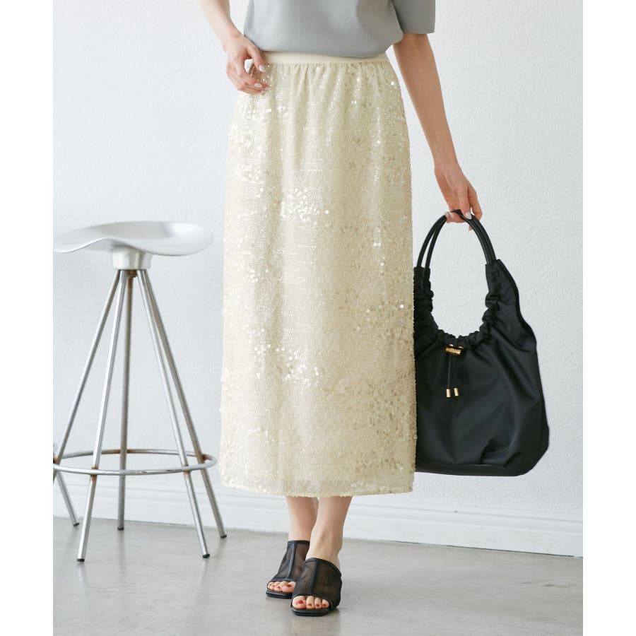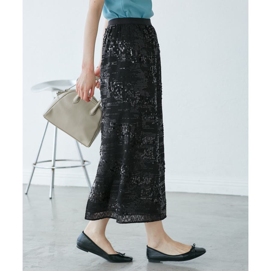 【素材感】 ・きらびやかなスパンコール素材を用いたアイラインスカート。 【デザイン・シルエット】 ・大人が着やすい長め丈で、深いバックスリットにより歩きやすさをキープ。 ・ウエストゴムでイージーな穿き心地。 【カラー】 ・ブラック、オフホワイトのモノクロカラー2色展開。 【スタイリングポイント】 ・レギンスを重ね、バブーシュやバレエシューズでラフに着こなして。 ・スウェットシャツやフーディーで着崩すのもおしゃれ。 ・ジャケットやシャツ合わせできれいめにも対応可能。 ・同シリーズでKIDS(品番:GRC25010)も展開しているので、親子お揃いもおすすめ。 ----------------------------- 裏地:あり 透け感:裏地がない部分はややあり 伸縮性:なし ウエスト:ゴム ポケット:なし 生地感・厚さ:普通 季節:春・夏・秋・冬 ----------------------------- ※撮影時の光、お使いのモニター環境によって色の見え方が違う場合がございます。 ※モデル身長:165cm 着用サイズ:38