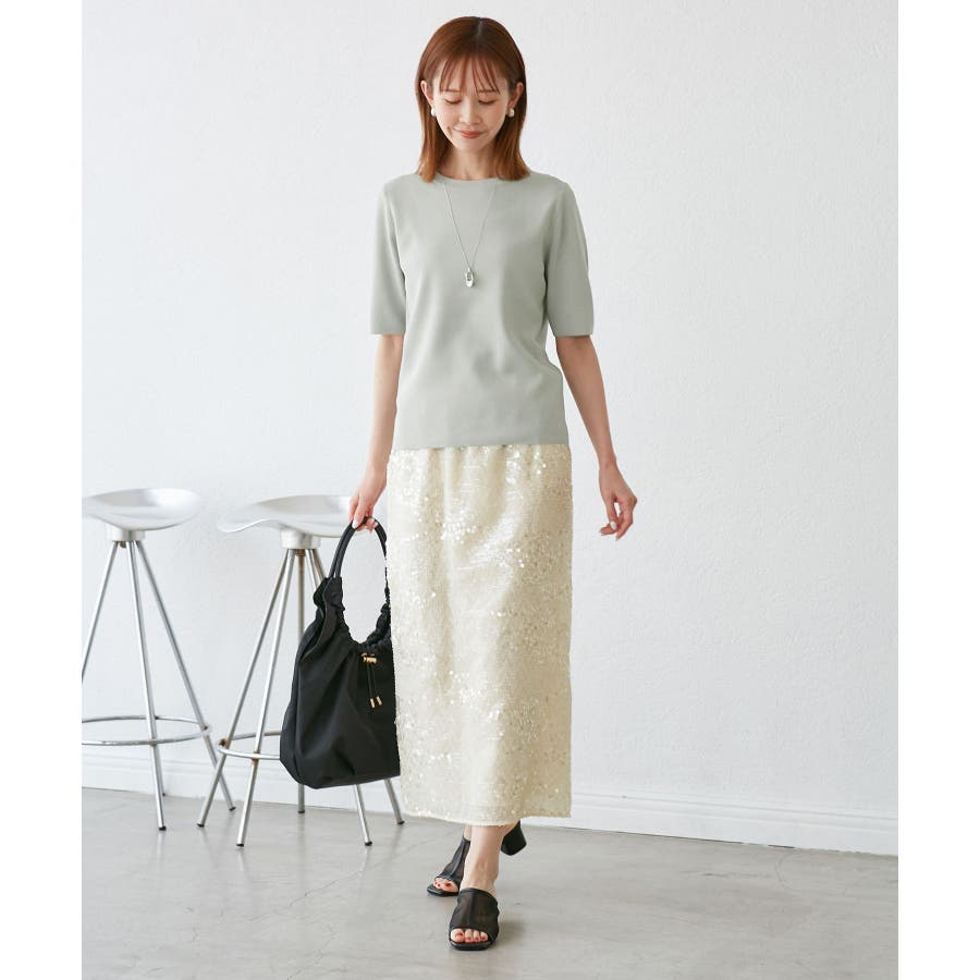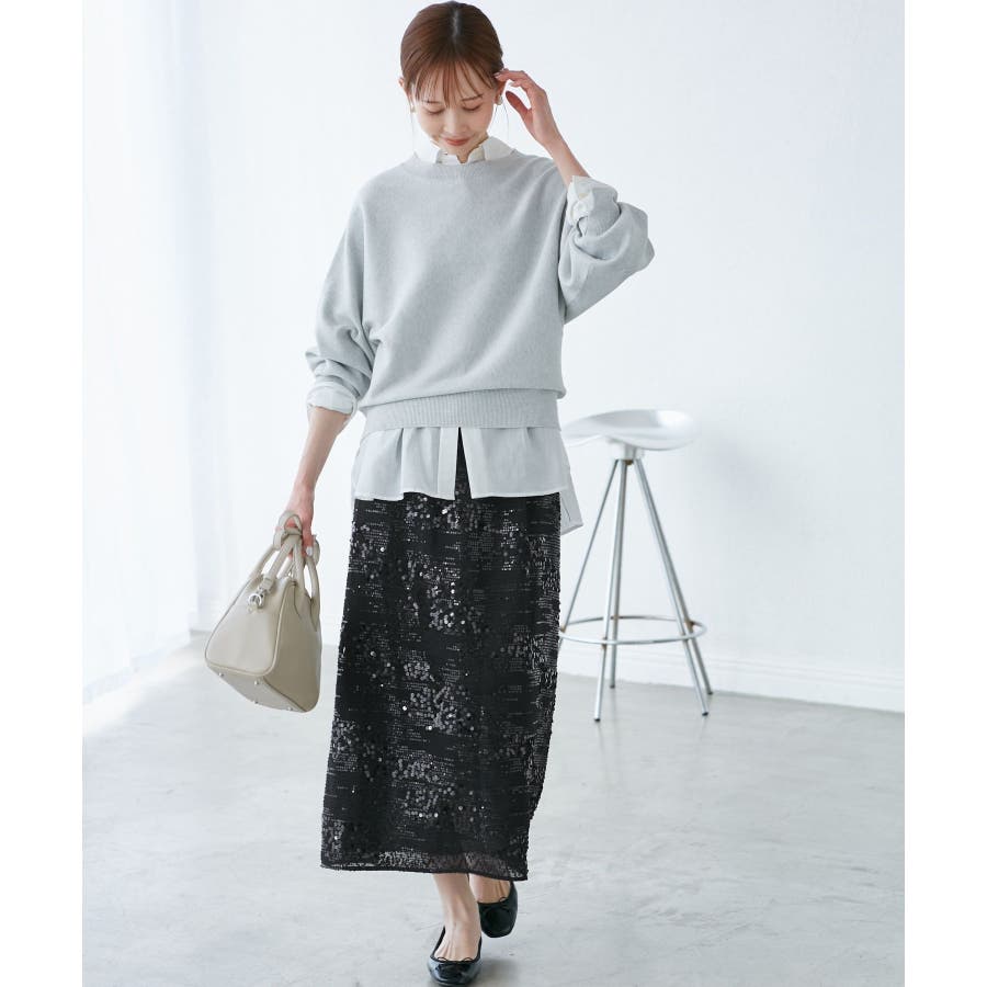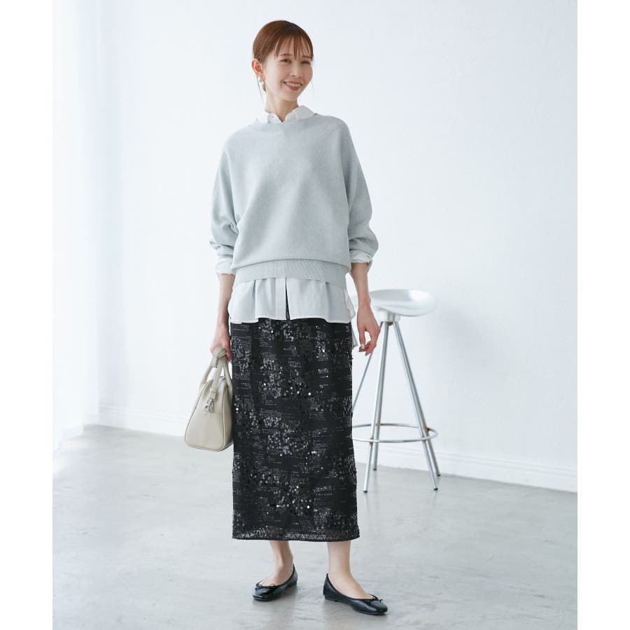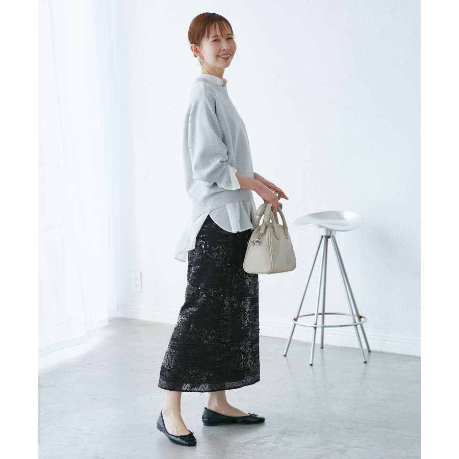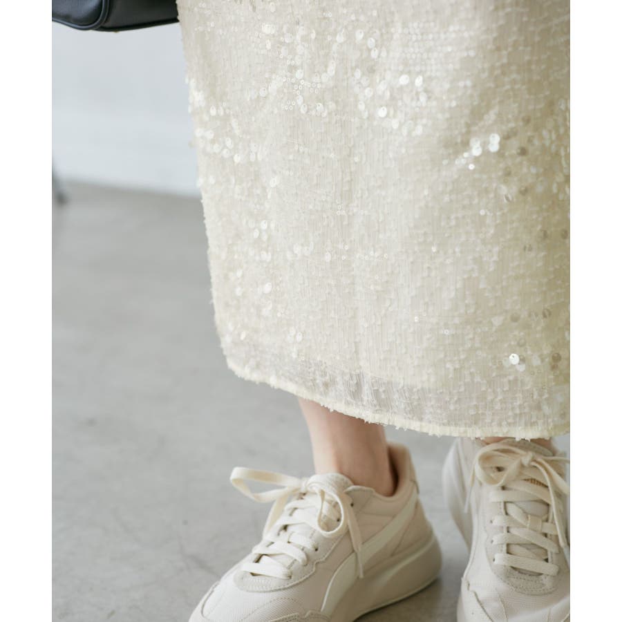 【素材感】 ・きらびやかなスパンコール素材を用いたアイラインスカート。 【デザイン・シルエット】 ・大人が着やすい長め丈で、深いバックスリットにより歩きやすさをキープ。 ・ウエストゴムでイージーな穿き心地。 【カラー】 ・ブラック、オフホワイトのモノクロカラー2色展開。 【スタイリングポイント】 ・レギンスを重ね、バブーシュやバレエシューズでラフに着こなして。 ・スウェットシャツやフーディーで着崩すのもおしゃれ。 ・ジャケットやシャツ合わせできれいめにも対応可能。 ・同シリーズでKIDS(品番:GRC25010)も展開しているので、親子お揃いもおすすめ。 ----------------------------- 裏地:あり 透け感:裏地がない部分はややあり 伸縮性:なし ウエスト:ゴム ポケット:なし 生地感・厚さ:普通 季節:春・夏・秋・冬 ----------------------------- ※撮影時の光、お使いのモニター環境によって色の見え方が違う場合がございます。 ※モデル身長:165cm 着用サイズ:38