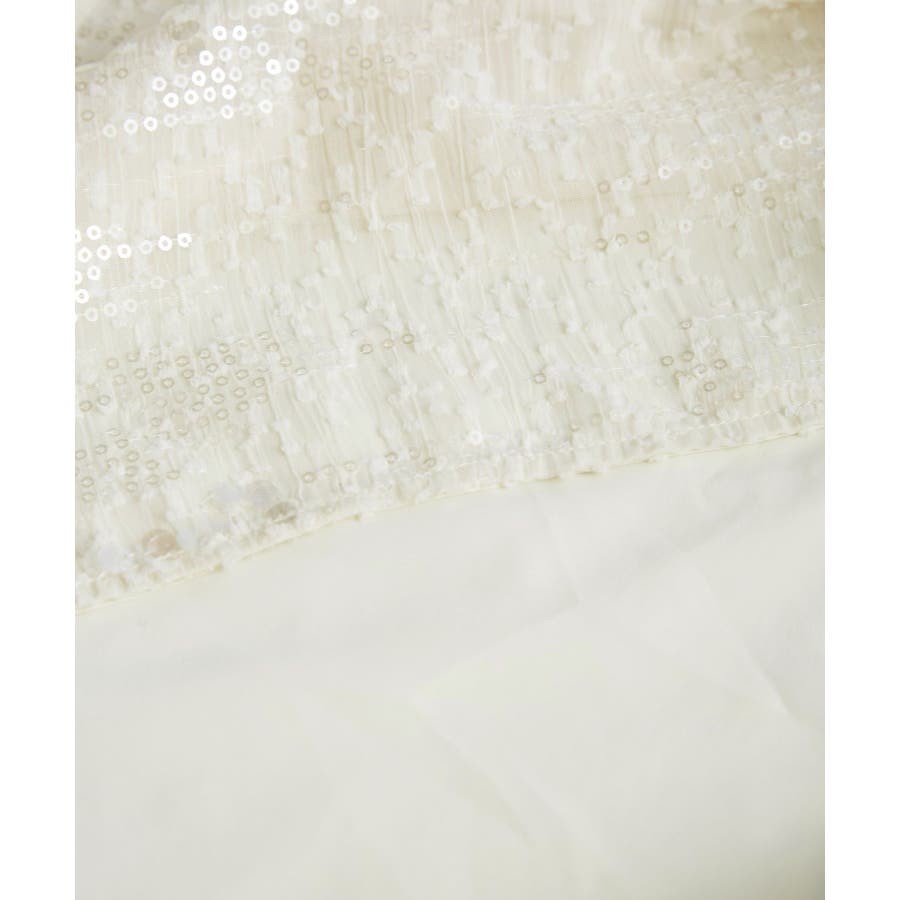 素材 | ブラック(01):(表地)(基布)ポリエステル 100% (スパンコール押さえ糸)(上糸)ナイロン 100% (下糸)ポリエステル 100% (裏地)ポリエステル 100%|オフホワイト(15):(表地)(基布)ポリエステル 100% (スパンコール押さえ糸)(上糸)ナイロン 100% (下糸)ポリエステル 100% (裏地)ポリエステル 100% |