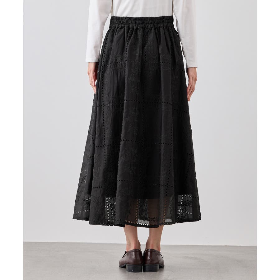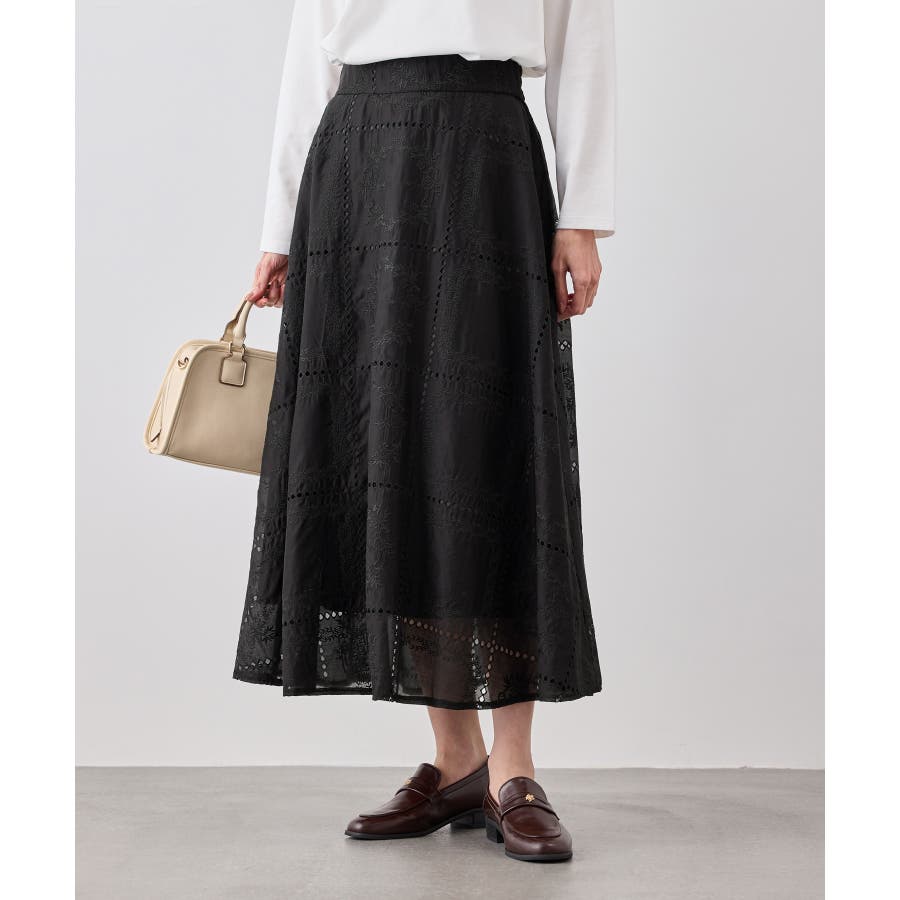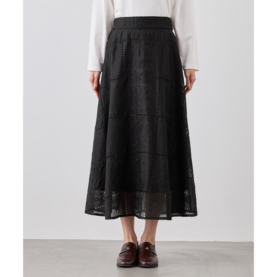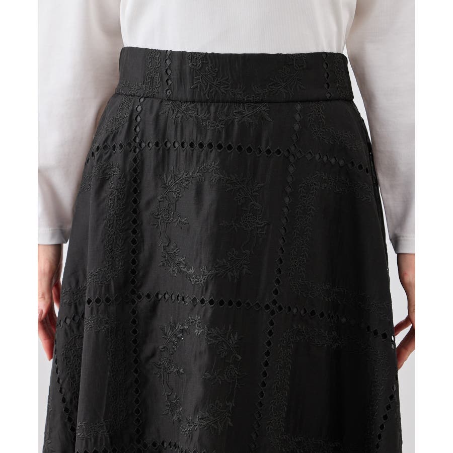 刺繍レースフレアスカート