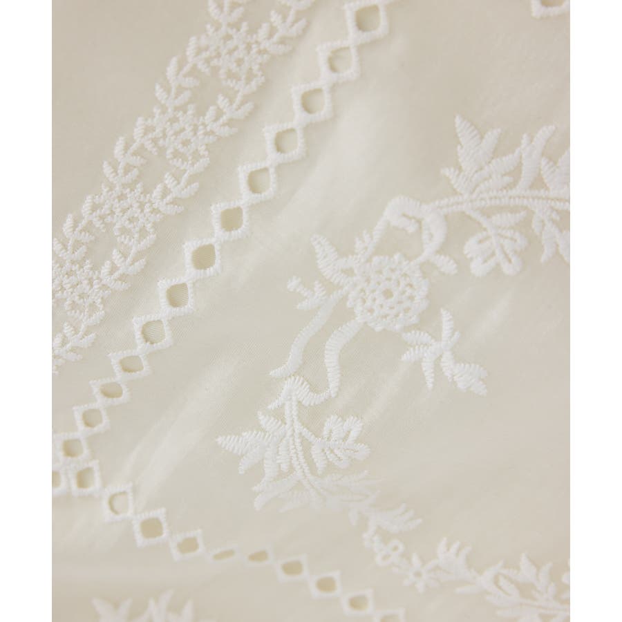 ・シアー感のある生地に刺繍を施した、表情豊かで価値感のある素材を使用。