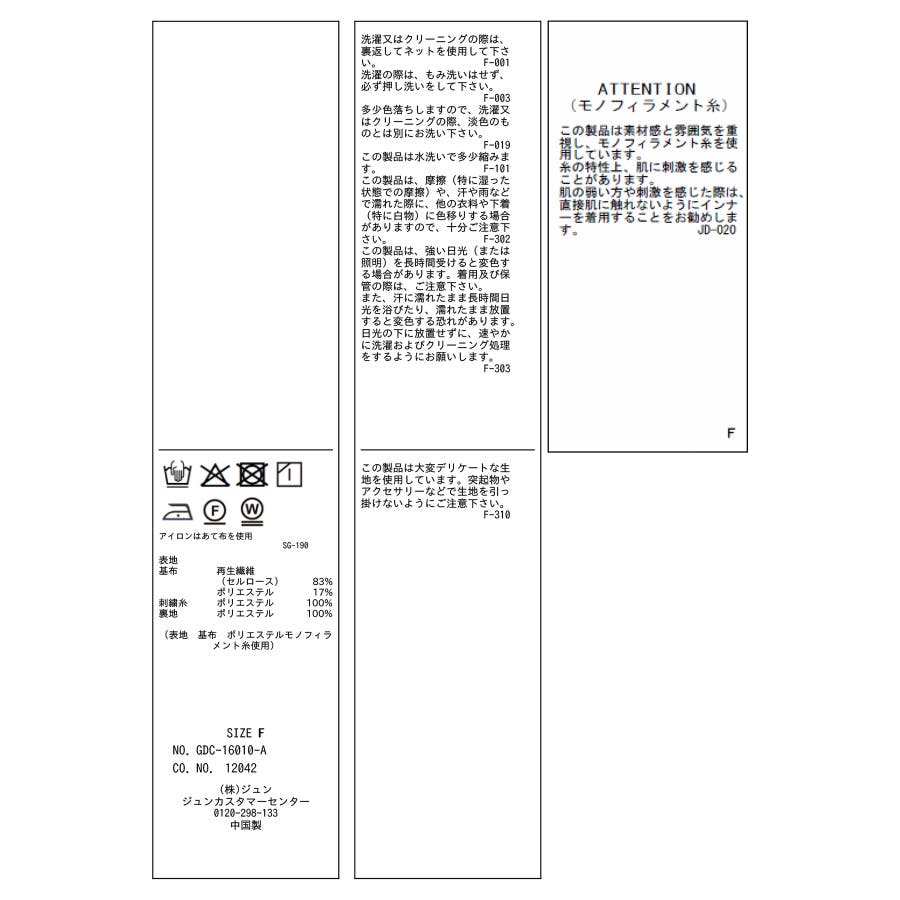 | 素材 | (表地) (基布) 再生繊維(セルロース) 83% ポリエステル 17% (刺繍糸) ポリエステル 100% (裏地) ポリエステル 100% |