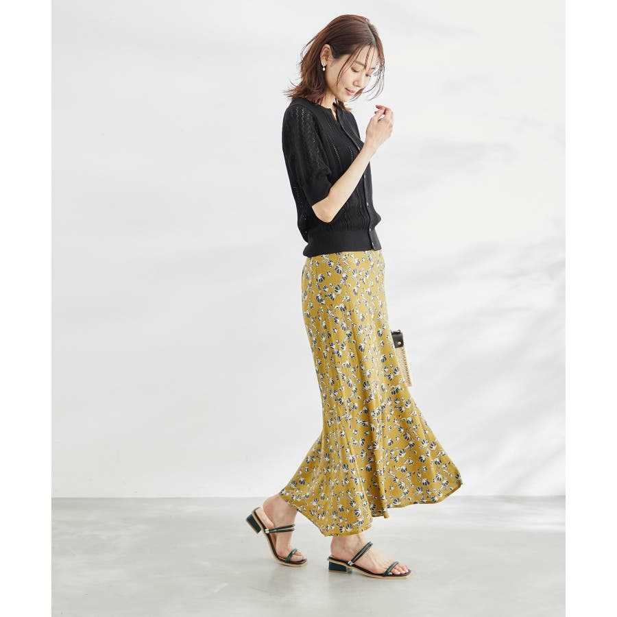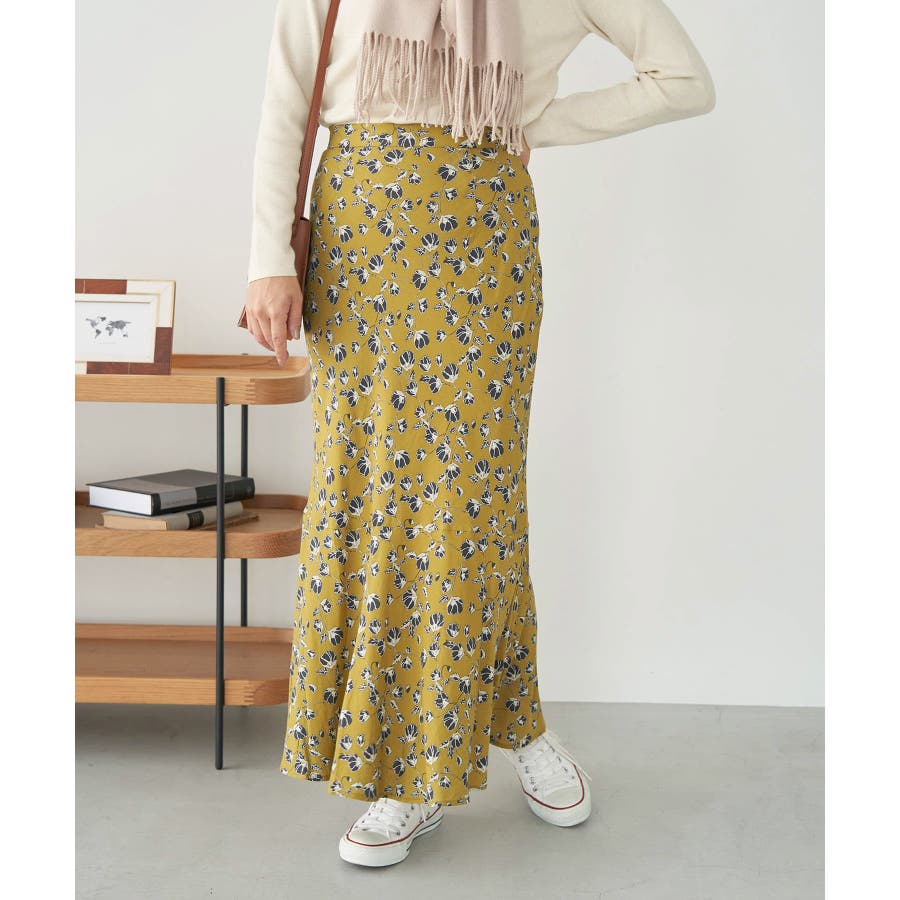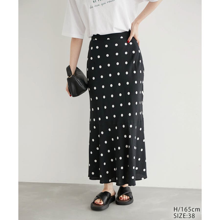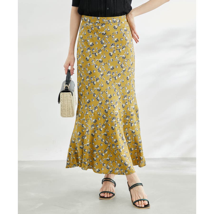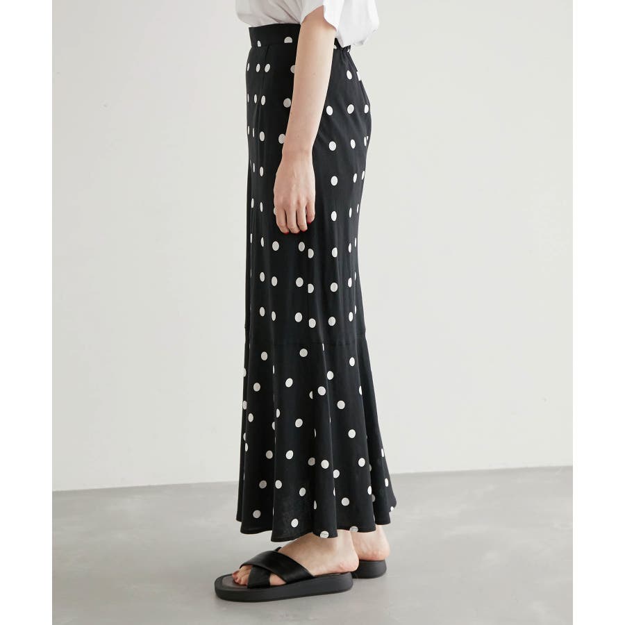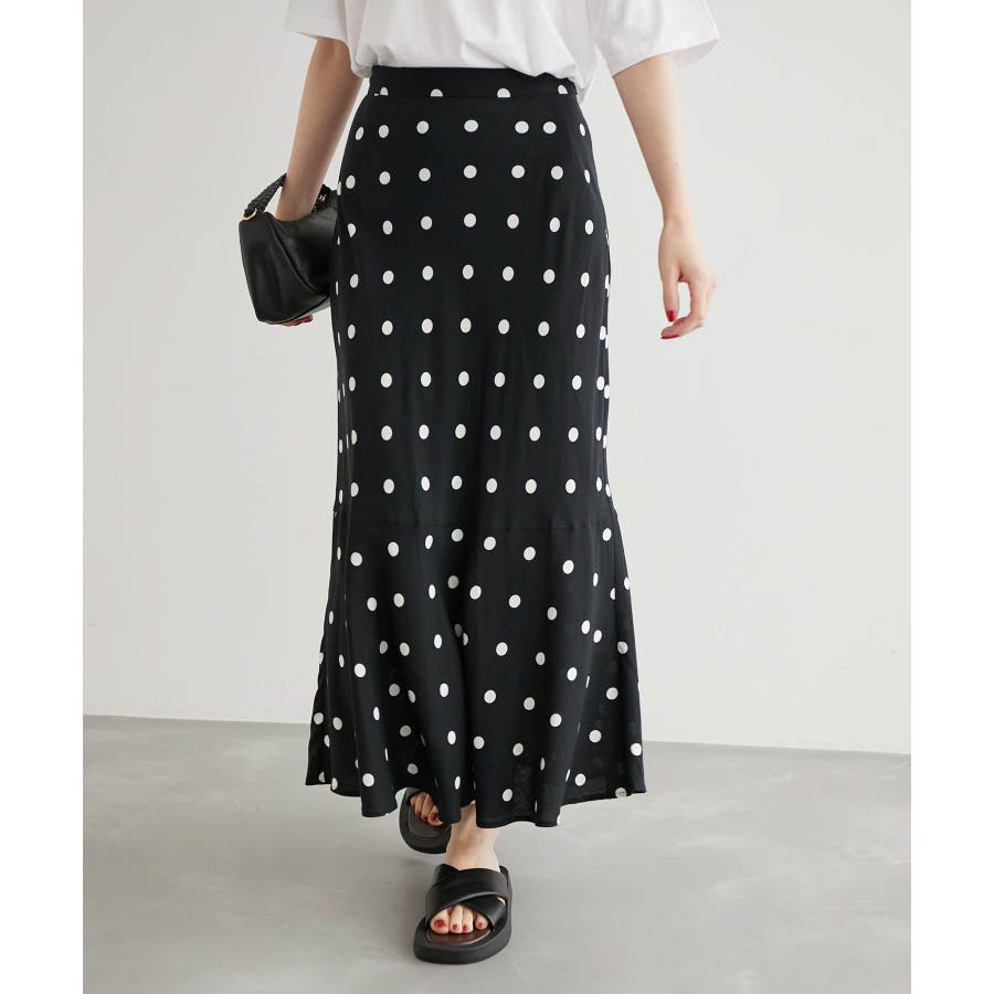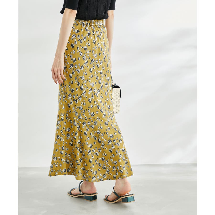 【素材感】 ・麻レーヨン混のナチュラルな風合い。 ・裏地は透けにくい厚手の素材を使用。 【デザイン・シルエット】 ・裾の切り替えよりボリュームを持たせた、フェミニンなマーメイドライン。 ・ベルトラインは後ろ側を一部ゴム使いにしてフィット感をアップ。 ・大人なロング丈を採用。 【カラー】 ・カラーによって柄が異なります。 ブラック(01)キナリ(16):ドット イエロー(80):花柄 【スタイリングポイント】 ・クロップドトップスに合わせてモダンなスタイリングが完成。 ・ビッグサイズのカットソーやTシャツをインして着ても好バランスに。 ・同シリーズでワンピース(品番:GDE52080)も展開。 ----------------------------- 裏地:あり 透け感:裏地が付いていないところは透け感あり 伸縮性:なし 生地感・厚さ:やや薄手 ウエスト:後ろゴム ポケット:なし その他仕様:左ファスナー 季節:春~秋(タイツやニットを合わせれば肌寒い日にも着られます) ----------------------------- ※撮影時の光、お使いのモニター環境によって色の見え方が違う場合がございます。 ※ブラック(01)モデル身長:165cm 着用サイズ:38 ※キナリ(16)モデル身長:165cm 着用サイズ:38/160cm 着用サイズ:38 ※イエロー(80)モデル身長:165cm 着用サイズ:38/160cm 着用サイズ:38