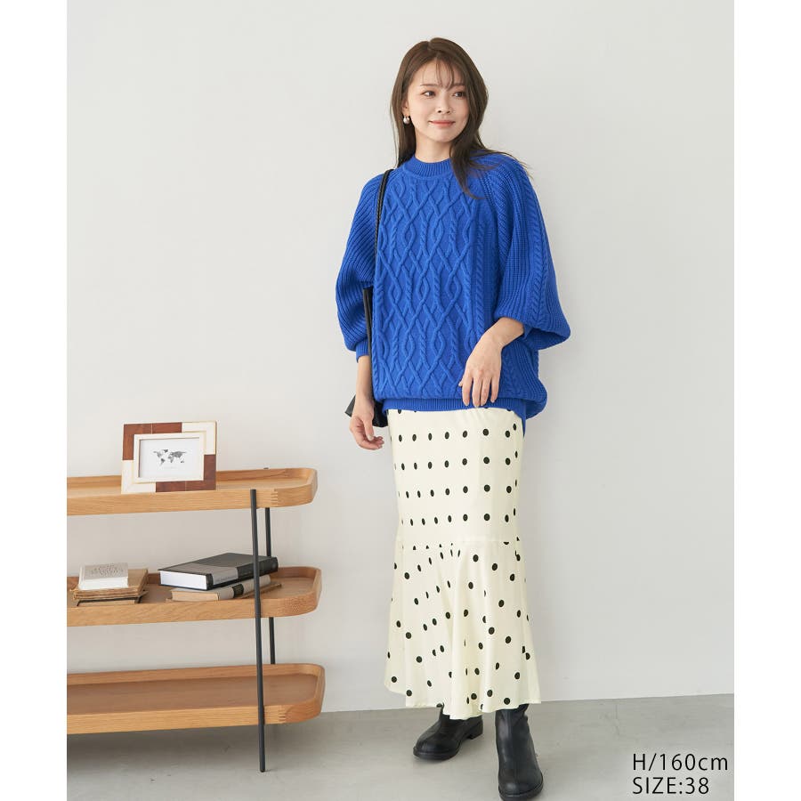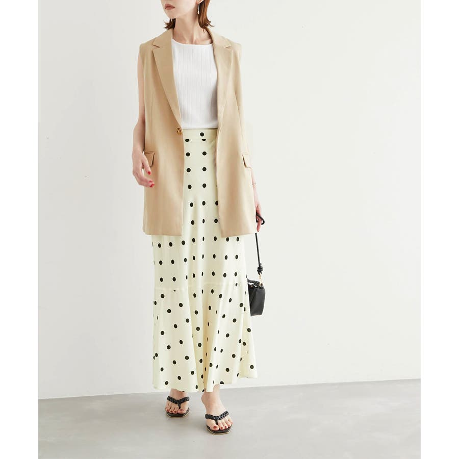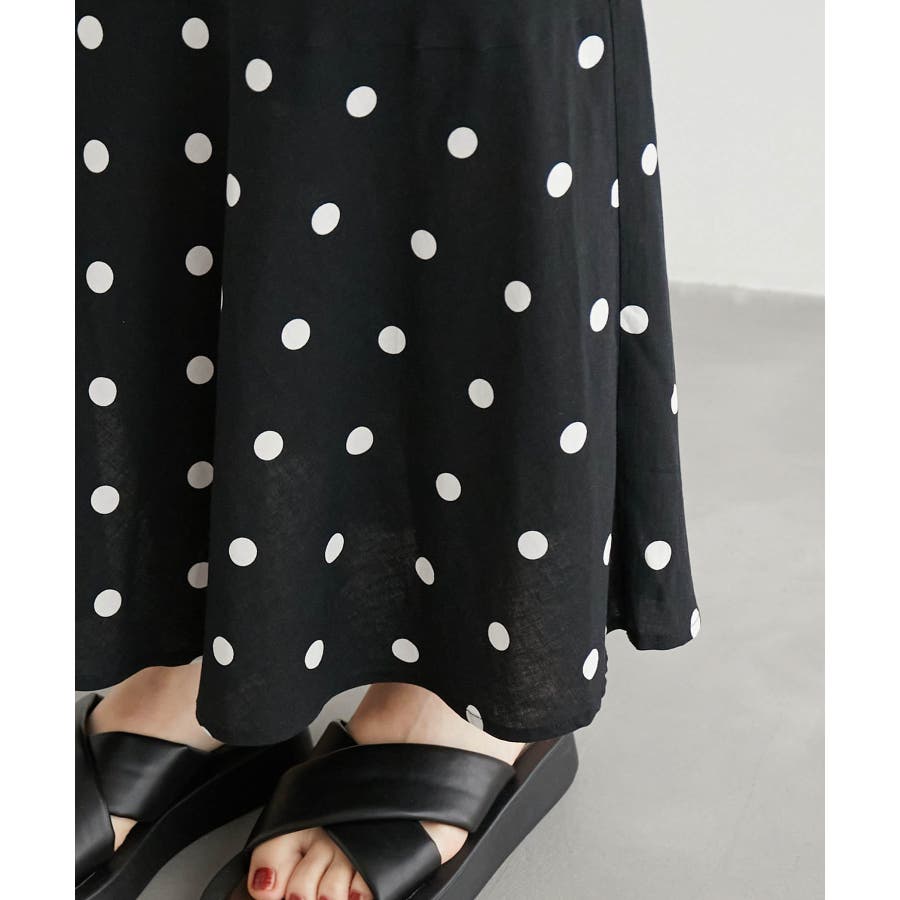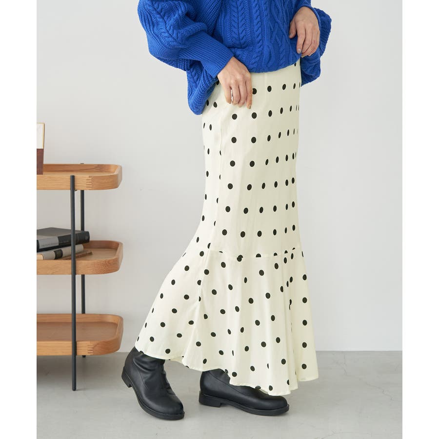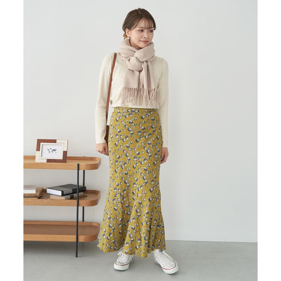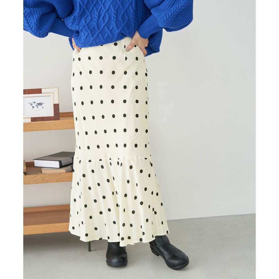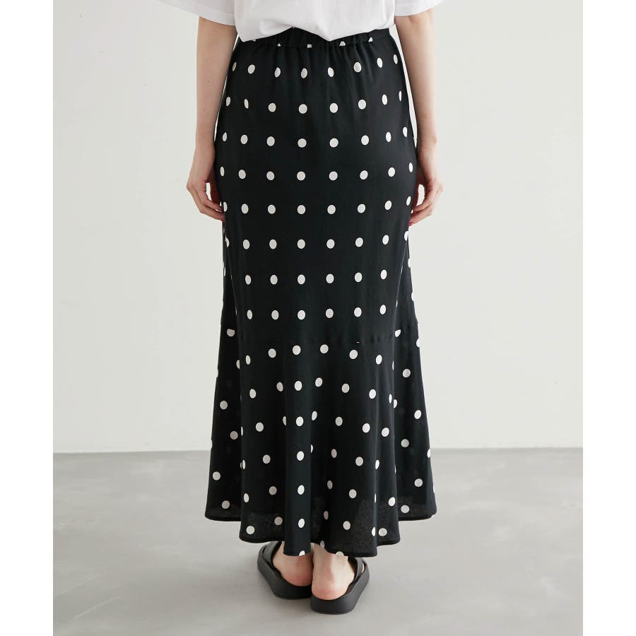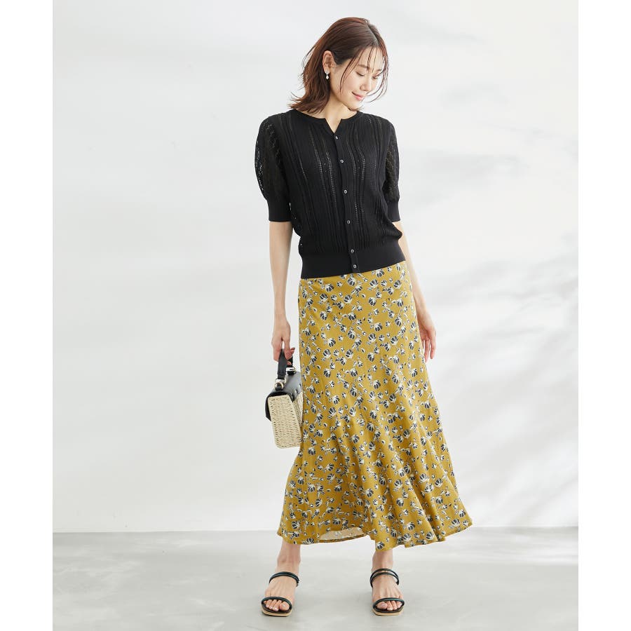 【素材感】 ・麻レーヨン混のナチュラルな風合い。 ・裏地は透けにくい厚手の素材を使用。 【デザイン・シルエット】 ・裾の切り替えよりボリュームを持たせた、フェミニンなマーメイドライン。 ・ベルトラインは後ろ側を一部ゴム使いにしてフィット感をアップ。 ・大人なロング丈を採用。 【カラー】 ・カラーによって柄が異なります。 ブラック(01)キナリ(16):ドット イエロー(80):花柄 【スタイリングポイント】 ・クロップドトップスに合わせてモダンなスタイリングが完成。 ・ビッグサイズのカットソーやTシャツをインして着ても好バランスに。 ・同シリーズでワンピース(品番:GDE52080)も展開。 ----------------------------- 裏地:あり 透け感:裏地が付いていないところは透け感あり 伸縮性:なし 生地感・厚さ:やや薄手 ウエスト:後ろゴム ポケット:なし その他仕様:左ファスナー 季節:春~秋(タイツやニットを合わせれば肌寒い日にも着られます) ----------------------------- ※撮影時の光、お使いのモニター環境によって色の見え方が違う場合がございます。 ※ブラック(01)モデル身長:165cm 着用サイズ:38 ※キナリ(16)モデル身長:165cm 着用サイズ:38/160cm 着用サイズ:38 ※イエロー(80)モデル身長:165cm 着用サイズ:38/160cm 着用サイズ:38