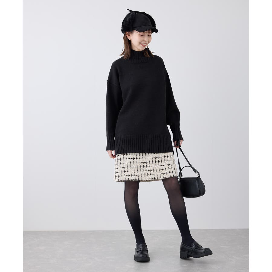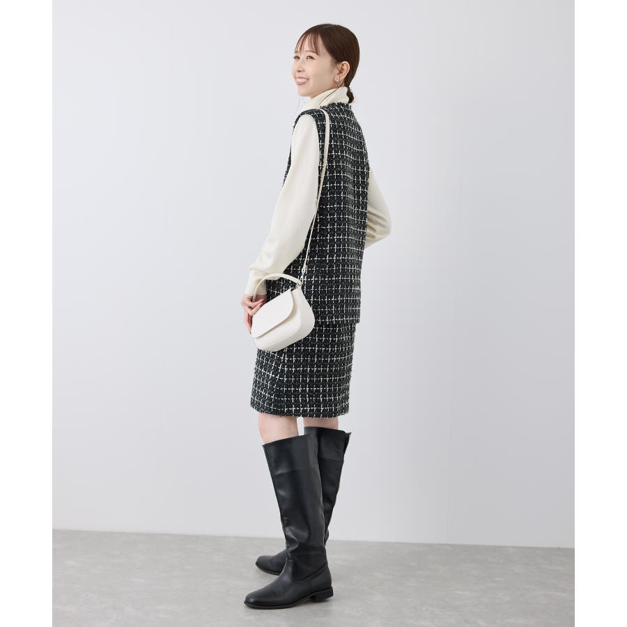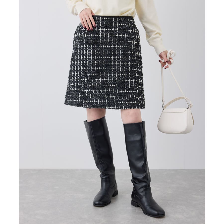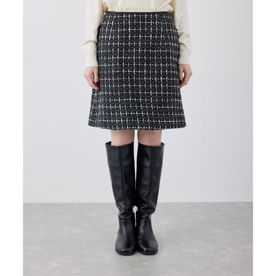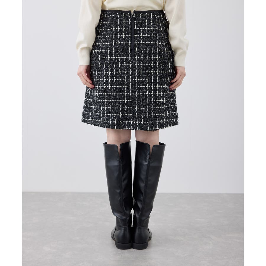 【素材感】 ・ブラック系(02)には薄金のラメ糸を、キナリ系(17)にはゴールドラメを入れたこだわりの生地を使用。 【デザイン・シルエット】 ・チェック柄ツイードのミニスカート。 ・広がりすぎない台形シルエットで大人な印象。 ・バックファスナーにあしらった引手がポイント。 ・秋冬らしい暖かなルックス。 【カラー】 ・アイボリー、ブラックのモノクロカラー2色で展開。 【スタイリングポイント】 ・クラシカルなリブタートルに合わせてスカートを主役に。 ・カレッジロゴ入りのスウェットシャツやフーディー合わせもおすすめ。 ・ゆったりフォルムのセーターに合わせればトレンド感もアップ。 ・ロングブーツやカラータイツで足もとのおしゃれも楽しんで。 ・同シリーズでジレ(品番:GDV54130)も展開しているので、セットアップとしても◎ ・同シリーズでKIDSのビスチェ(品番:GRH64020)、スカート(品番:GRC64030)も展開しているので、親子お揃いも一押し。 ----------------------------- 裏地:あり 透け感:なし 伸縮性:なし 生地感・厚さ:普通 ポケット:あり その他仕様:後ろファスナー 季節:春・秋 ----------------------------- ※撮影時の光、お使いのモニター環境によって色の見え方が違う場合がございます。 ※モデル身長:165cm 着用サイズ:38