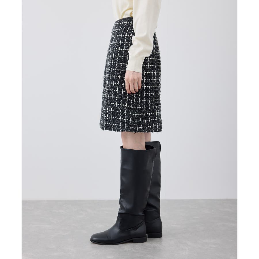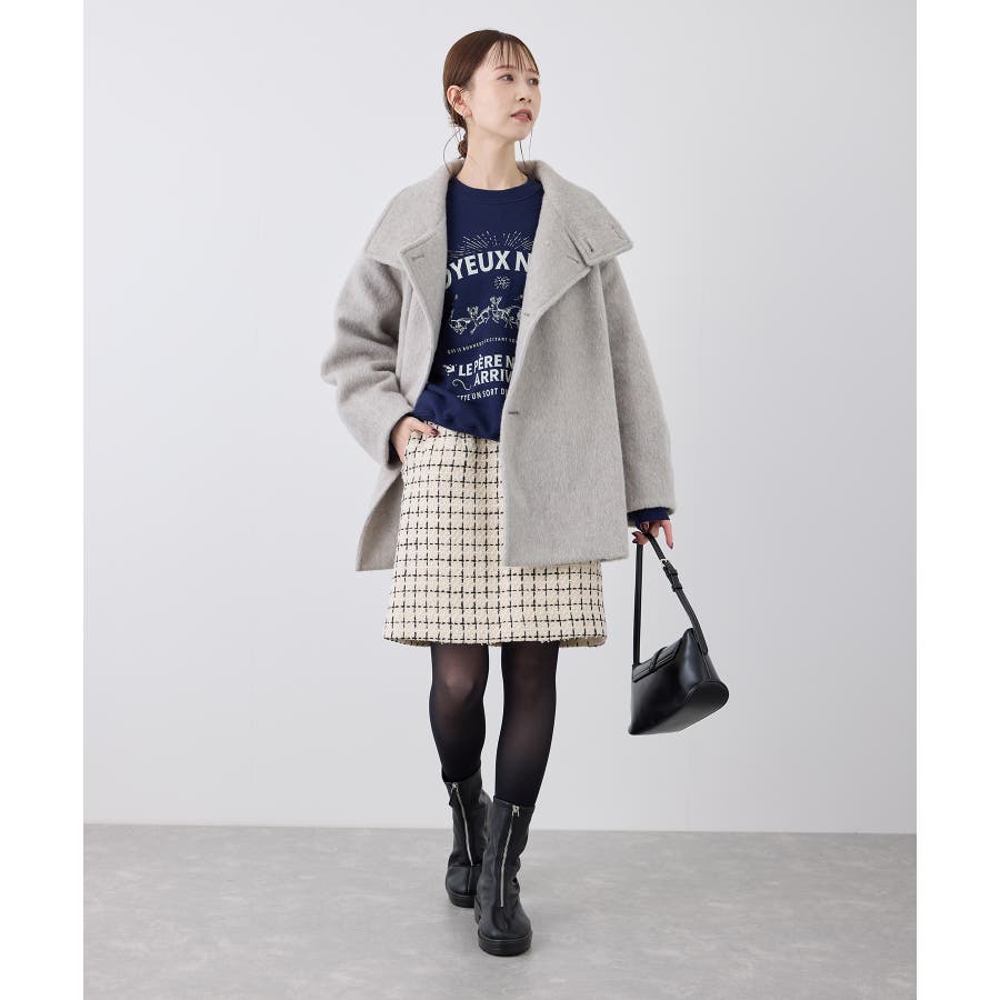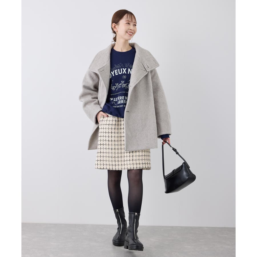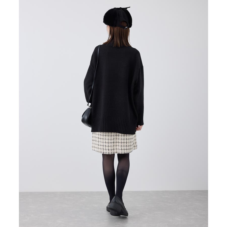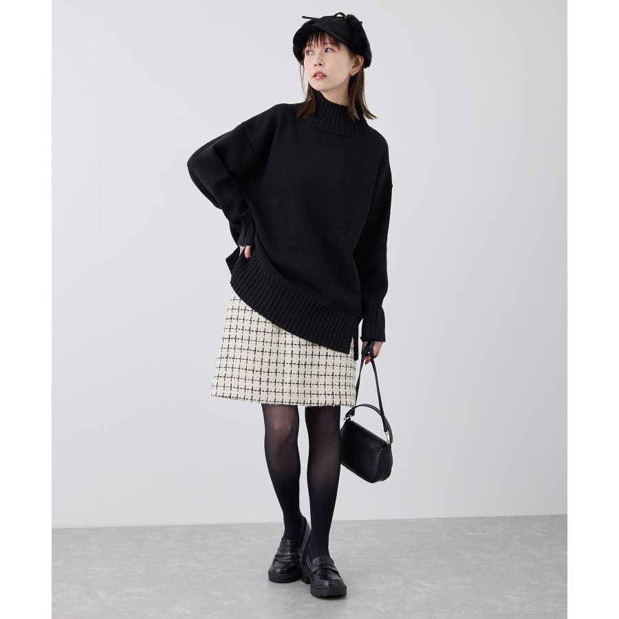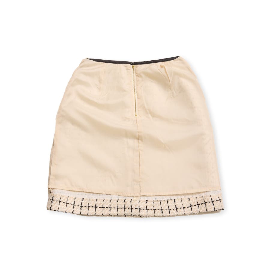 【素材感】 ・ブラック系(02)には薄金のラメ糸を、キナリ系(17)にはゴールドラメを入れたこだわりの生地を使用。 【デザイン・シルエット】 ・チェック柄ツイードのミニスカート。 ・広がりすぎない台形シルエットで大人な印象。 ・バックファスナーにあしらった引手がポイント。 ・秋冬らしい暖かなルックス。 【カラー】 ・アイボリー、ブラックのモノクロカラー2色で展開。 【スタイリングポイント】 ・クラシカルなリブタートルに合わせてスカートを主役に。 ・カレッジロゴ入りのスウェットシャツやフーディー合わせもおすすめ。 ・ゆったりフォルムのセーターに合わせればトレンド感もアップ。 ・ロングブーツやカラータイツで足もとのおしゃれも楽しんで。 ・同シリーズでジレ(品番:GDV54130)も展開しているので、セットアップとしても◎ ・同シリーズでKIDSのビスチェ(品番:GRH64020)、スカート(品番:GRC64030)も展開しているので、親子お揃いも一押し。 ----------------------------- 裏地:あり 透け感:なし 伸縮性:なし 生地感・厚さ:普通 ポケット:あり その他仕様:後ろファスナー 季節:春・秋 ----------------------------- ※撮影時の光、お使いのモニター環境によって色の見え方が違う場合がございます。 ※モデル身長:165cm 着用サイズ:38
