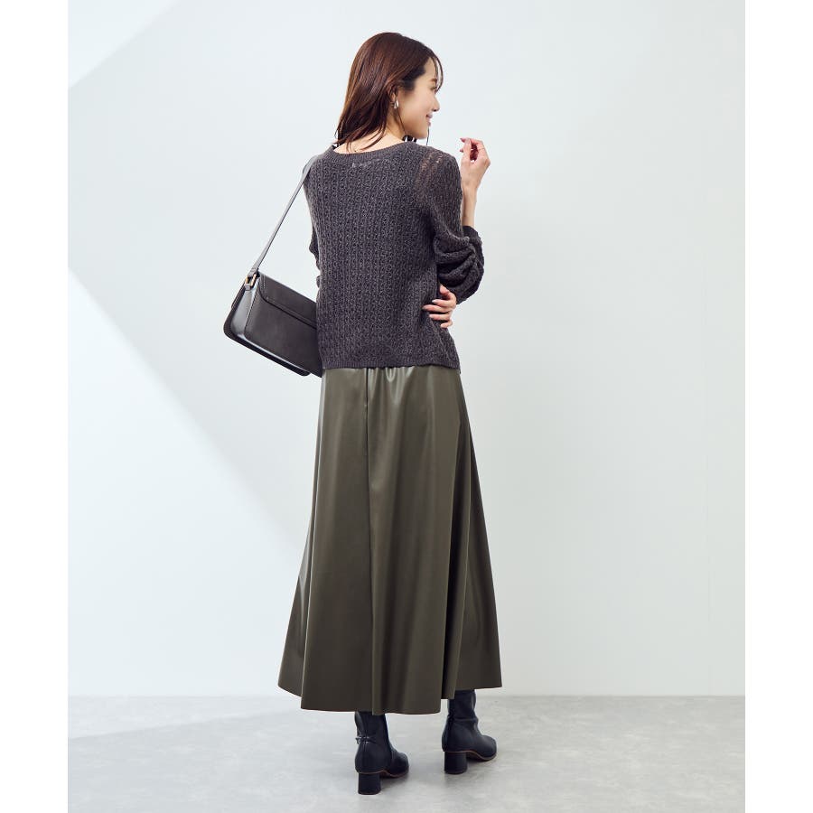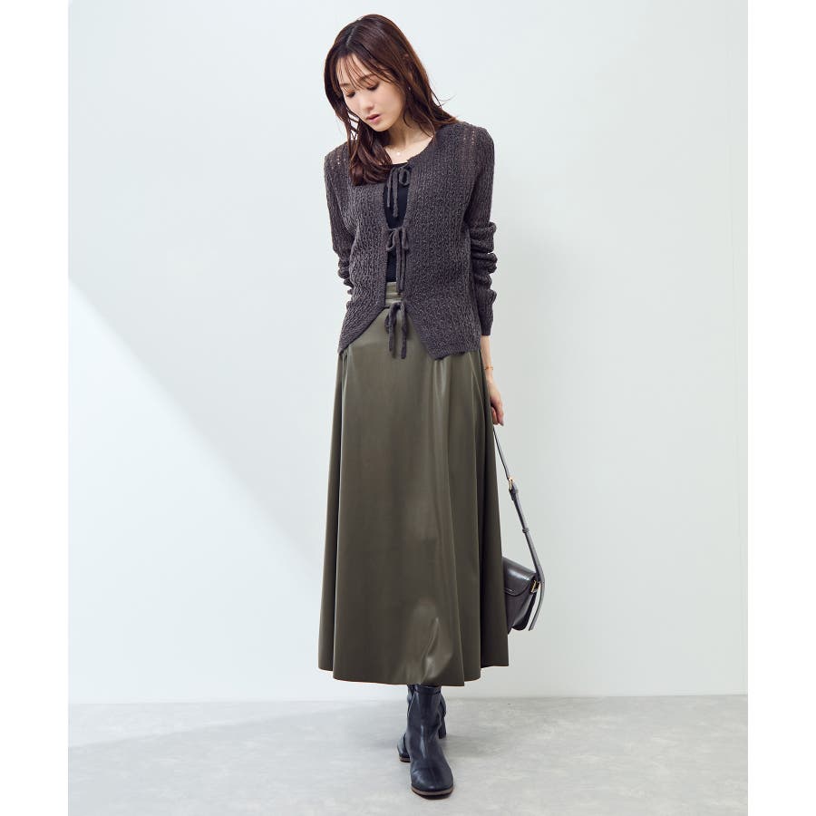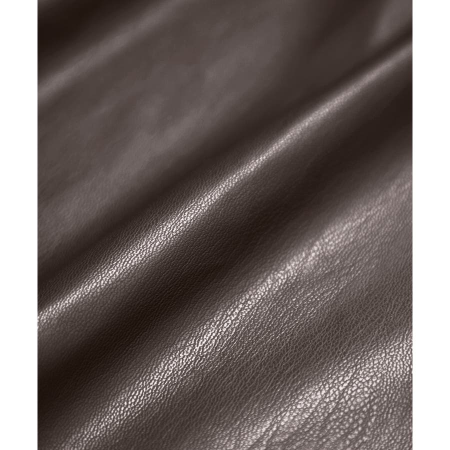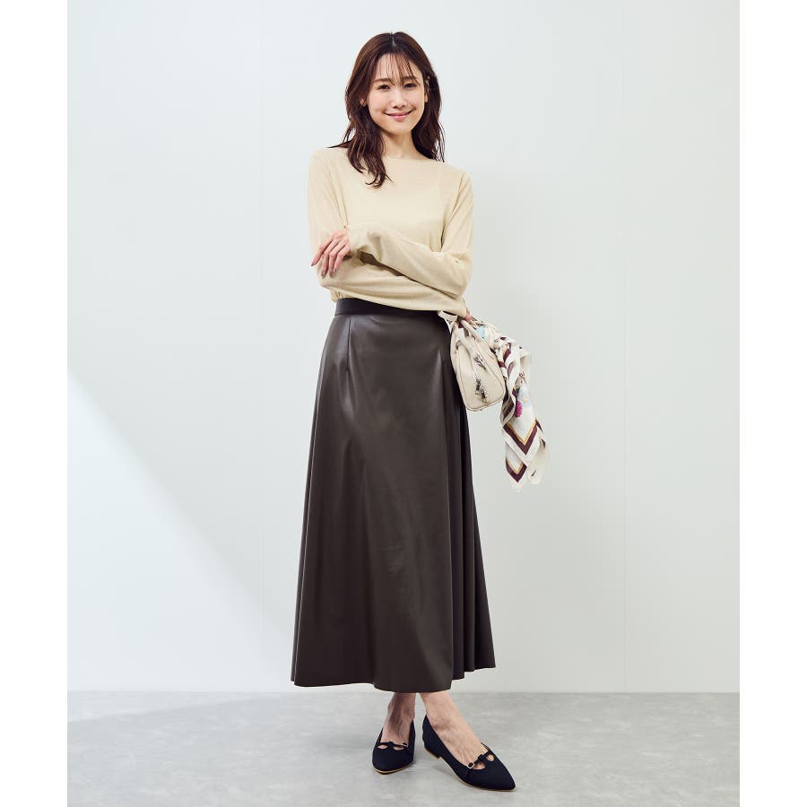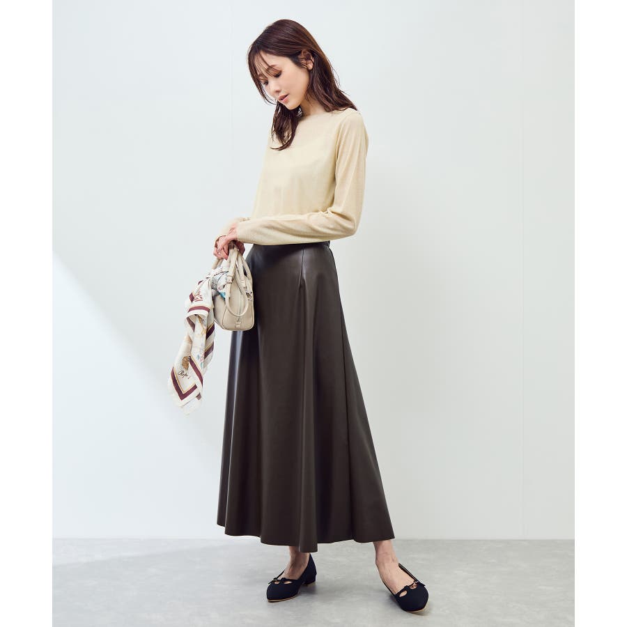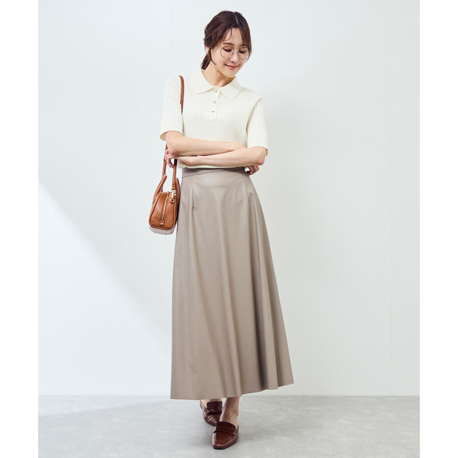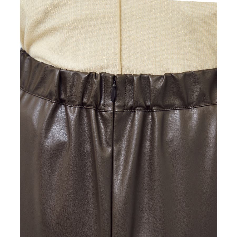 ・色合いがしっかりと出る、シンセティックレザーを用いたフレアスカート。
