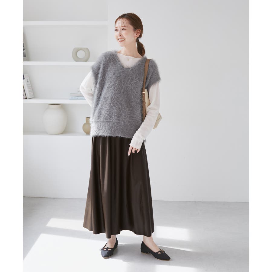 ・抜け感のある、ゆったりシルエットのニット合わせもおすすめ。