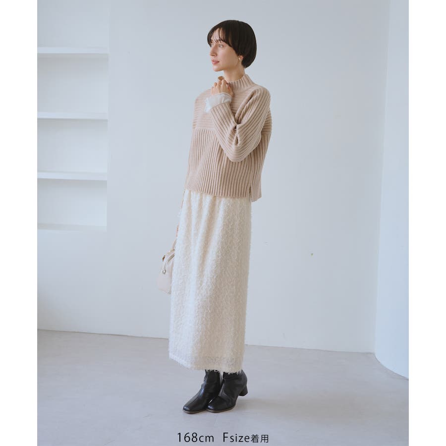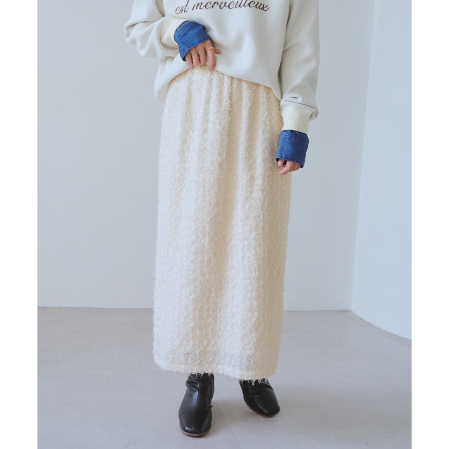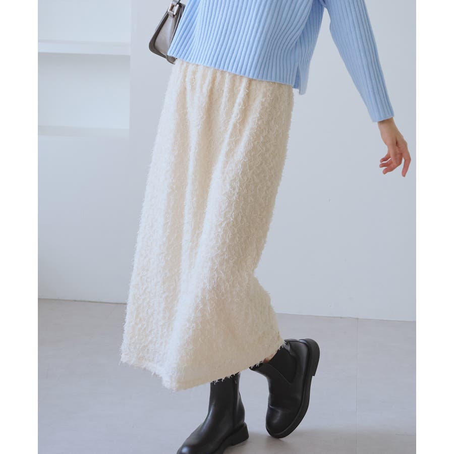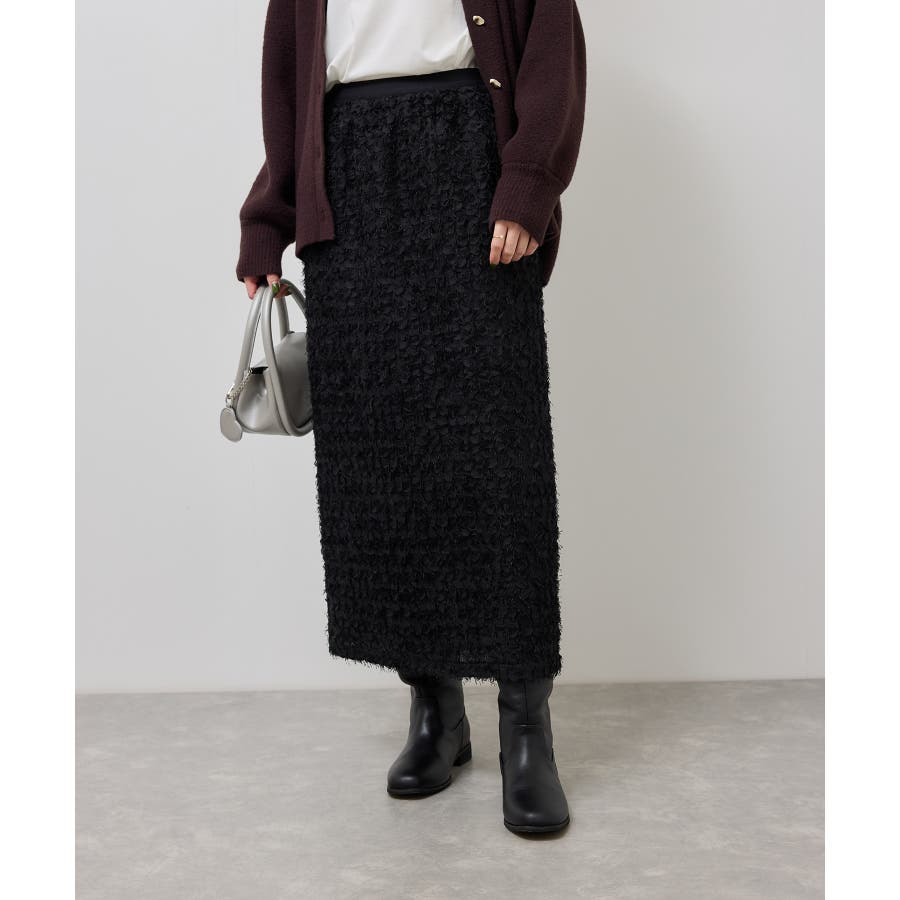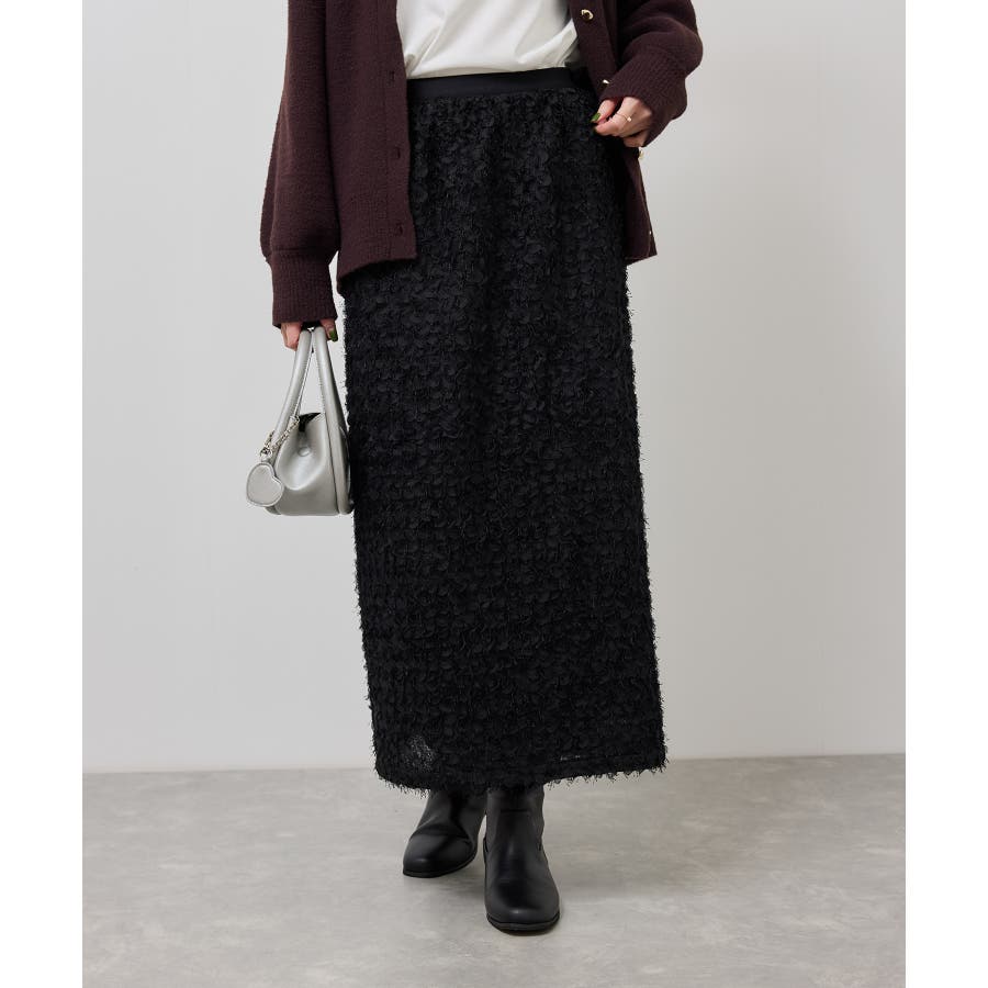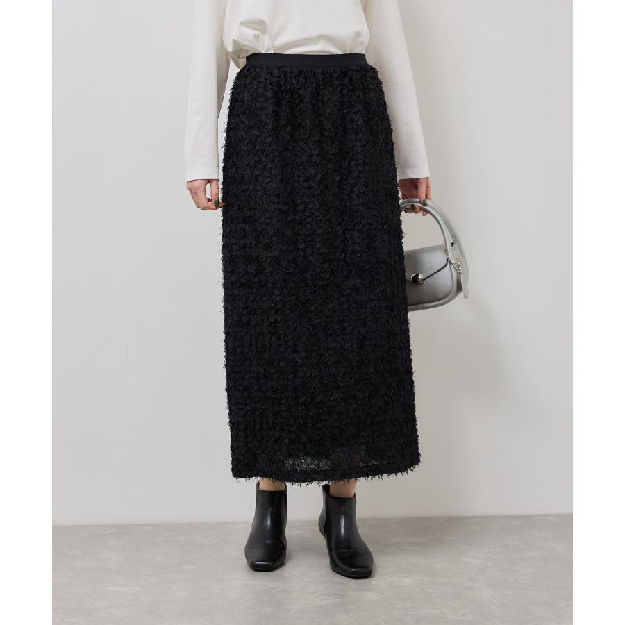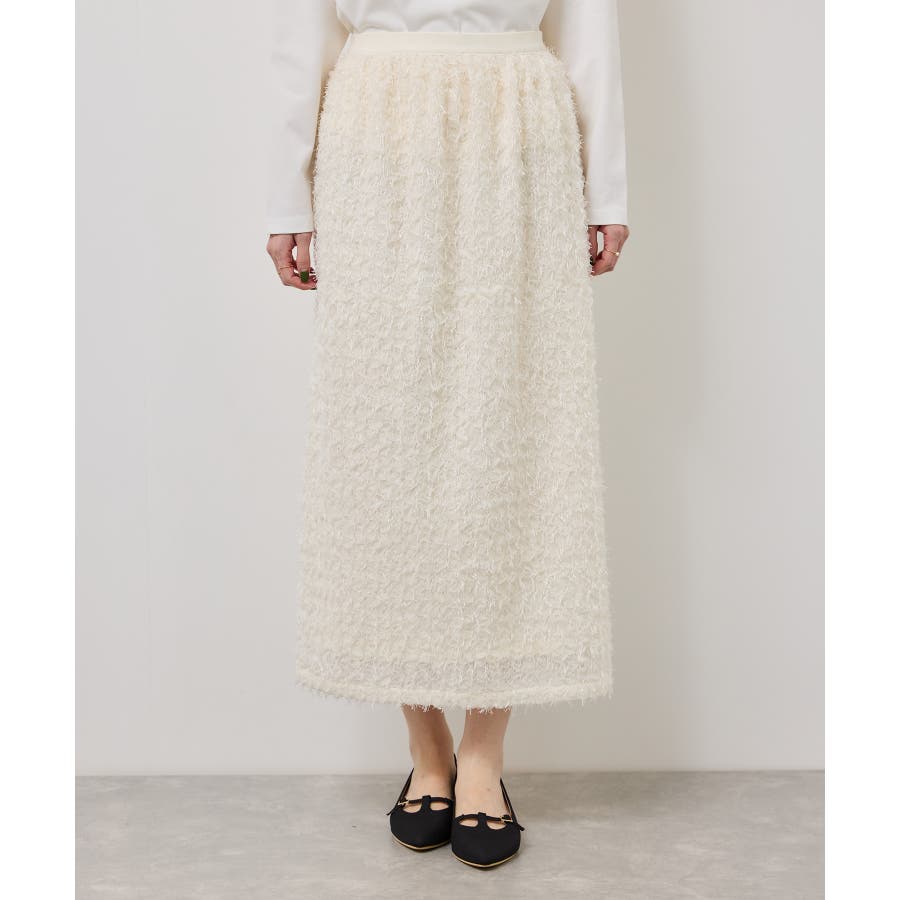 ・チュールとチュール+シャギーの素材感がポイントで形はすっきりとしたアイラインスカート。
