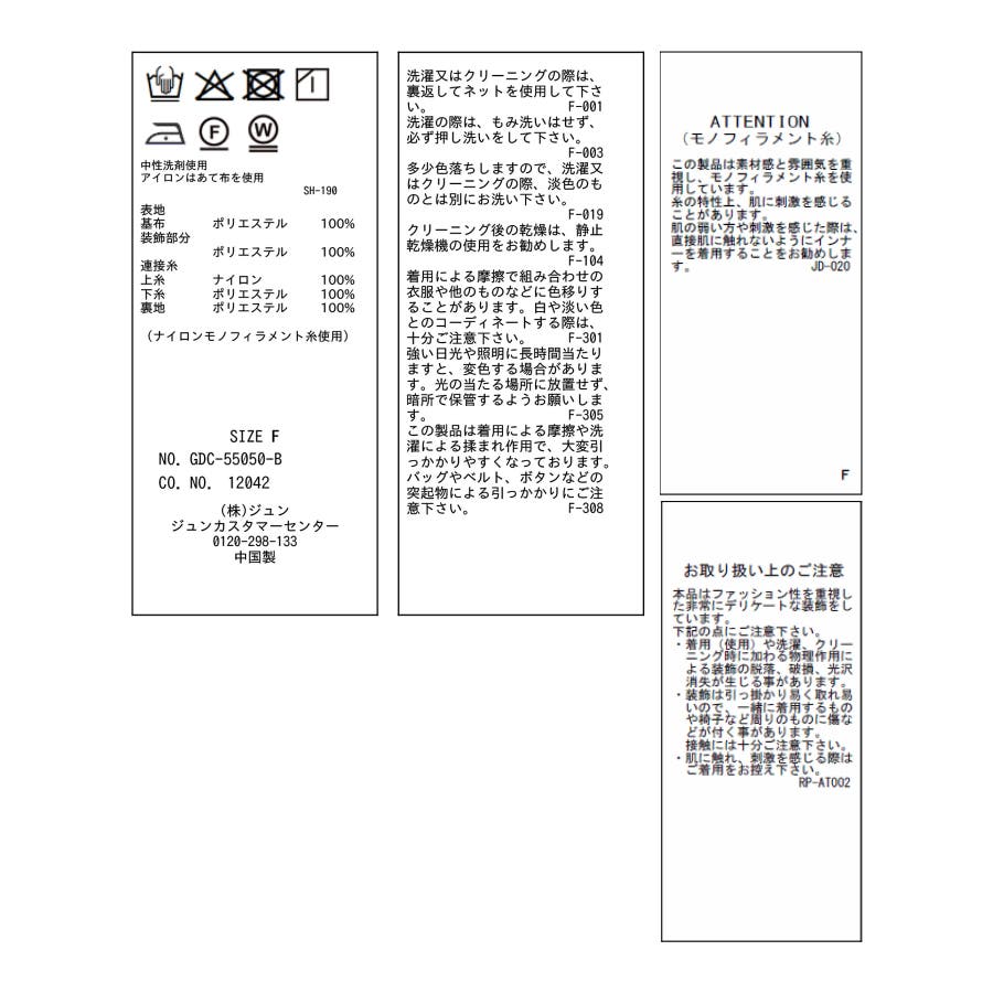 | 素材 | (表地)(基布)ポリエステル 100% (装飾部分)ポリエステル 100% (上糸)ナイロン 100% (下糸)ポリエステル 100% (裏地)ポリエステル 100% |