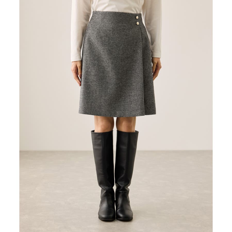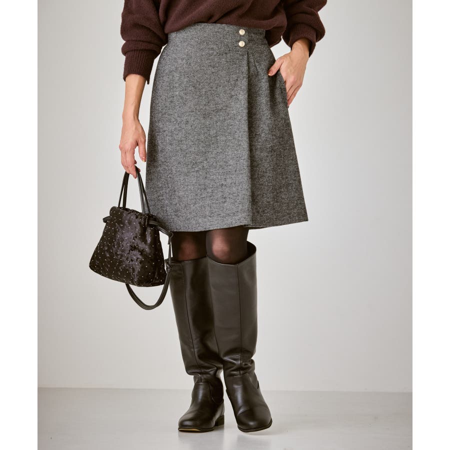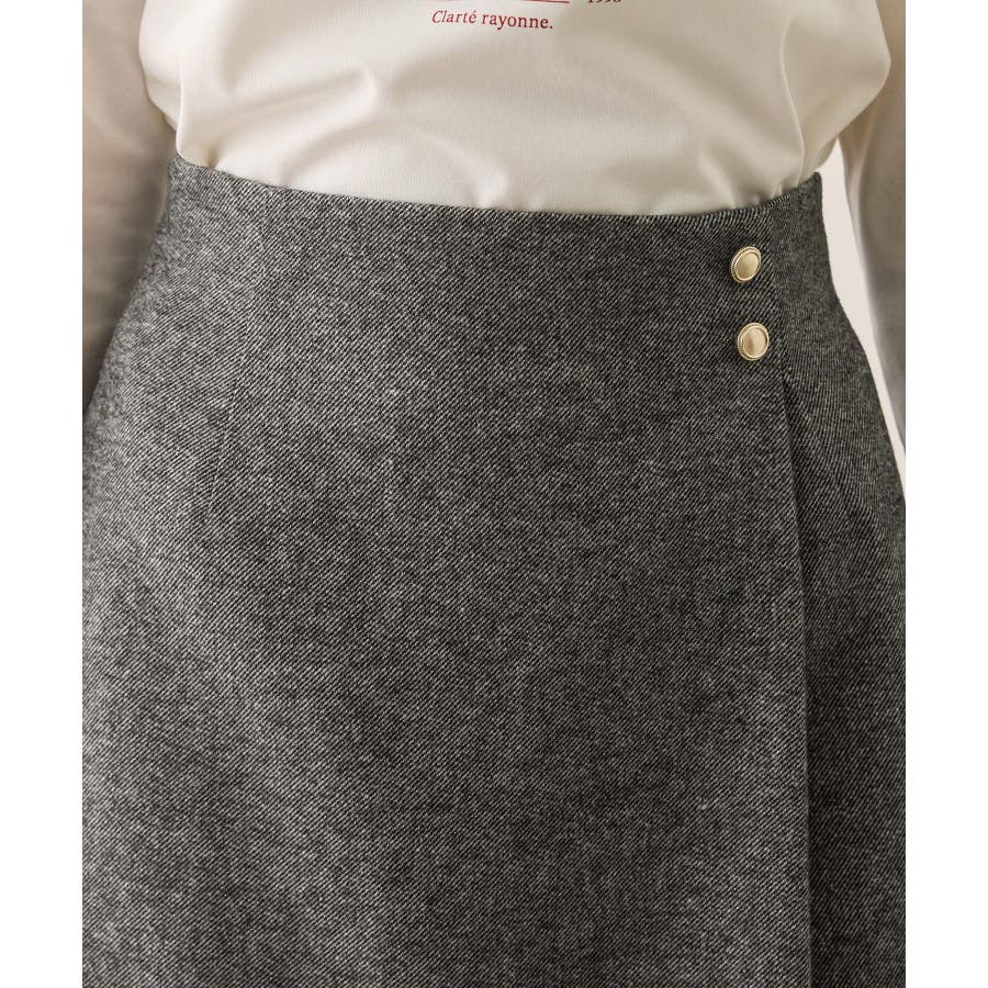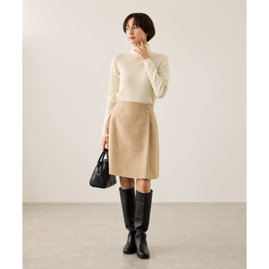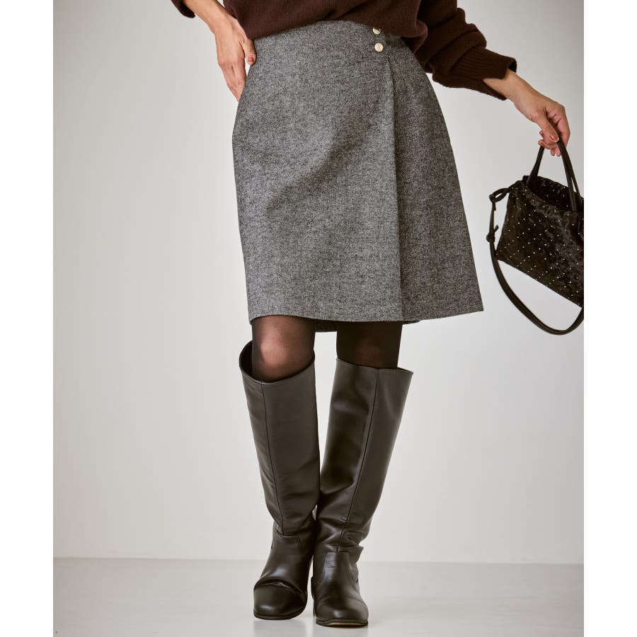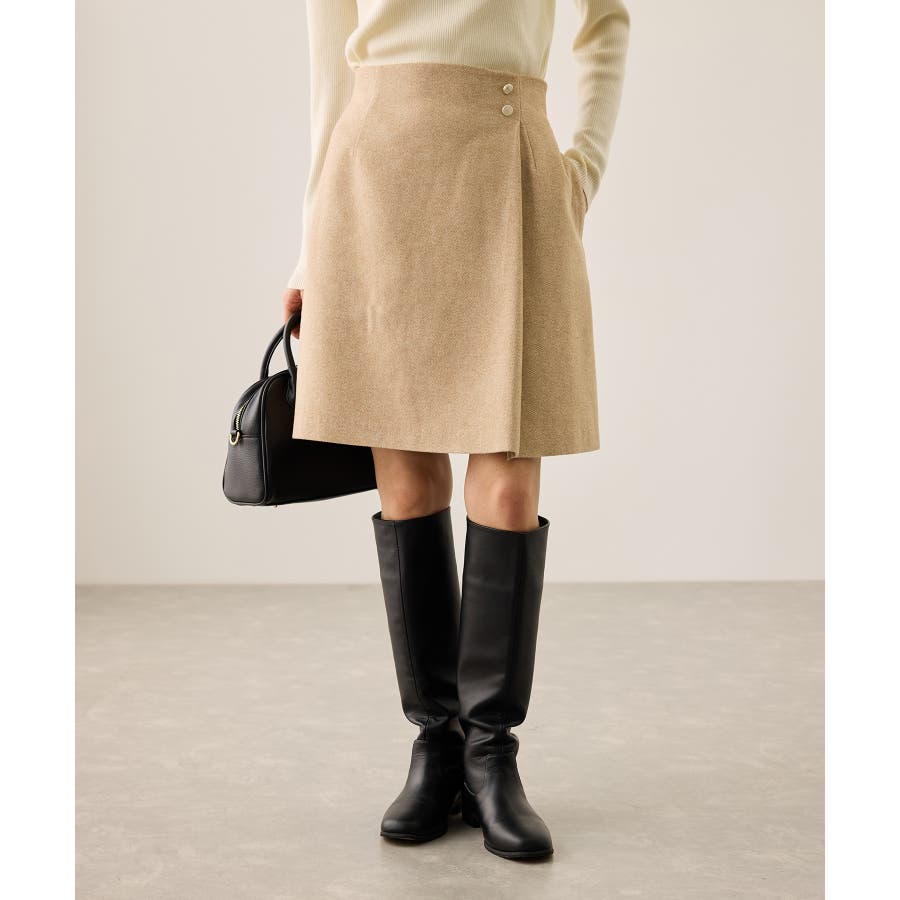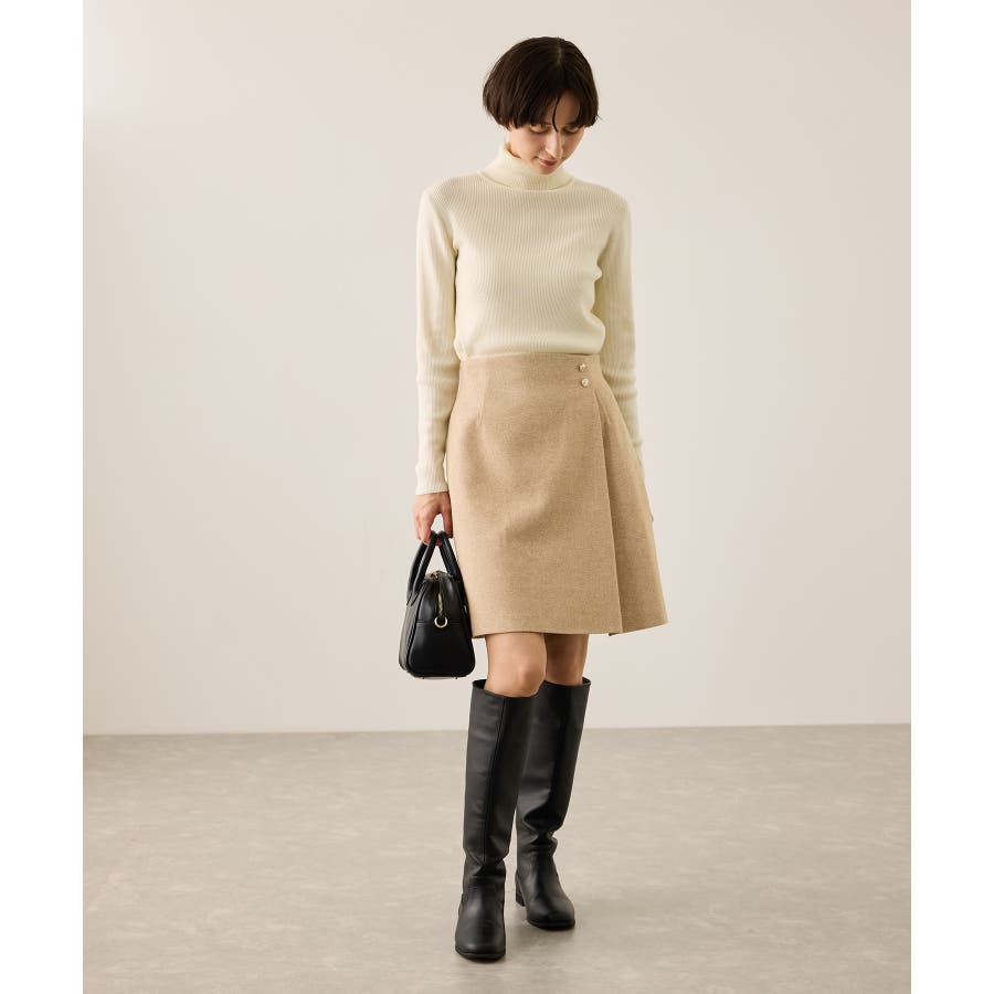 ・ハイウエストで脚長の効果もあり、ラップ風のデザインが腰まわりをすっきりと見せる。