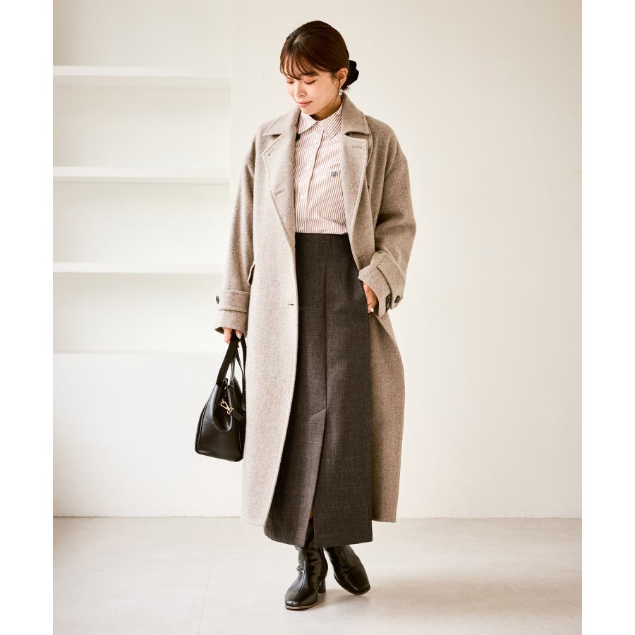 ・ショートブーツからロングブーツまで相性が良く、足元を変えるだけでがらりと印象チェンジが可能。パンプスを合わせればよりエレガントな雰囲気に。