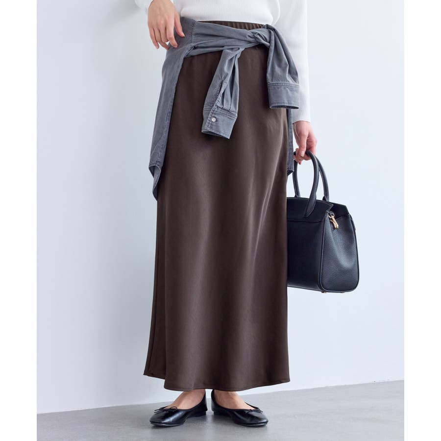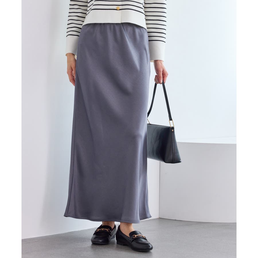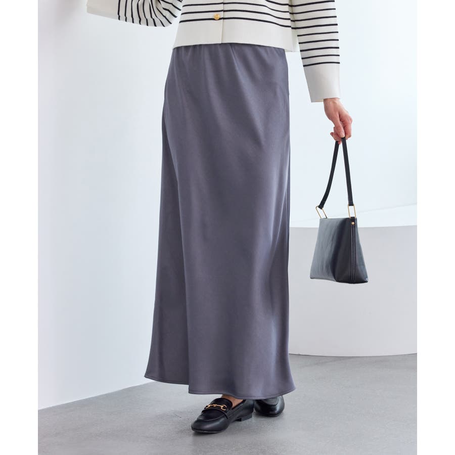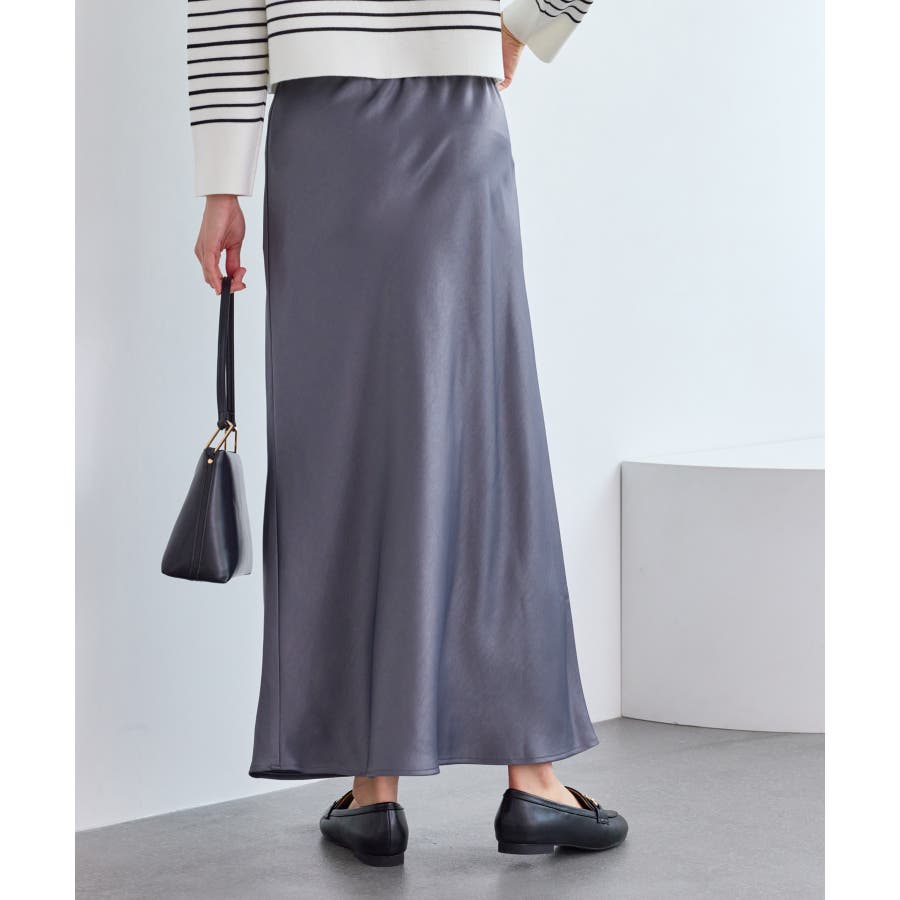 細見えバイアスサテンスカート/イージーケア
