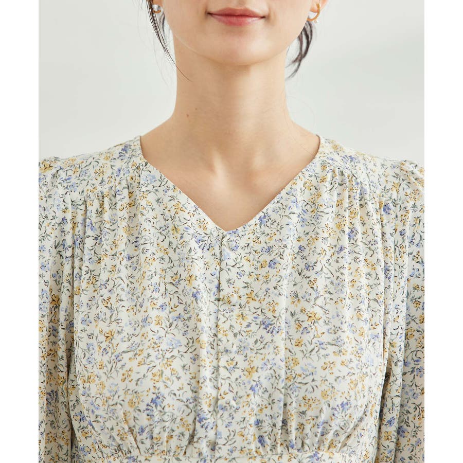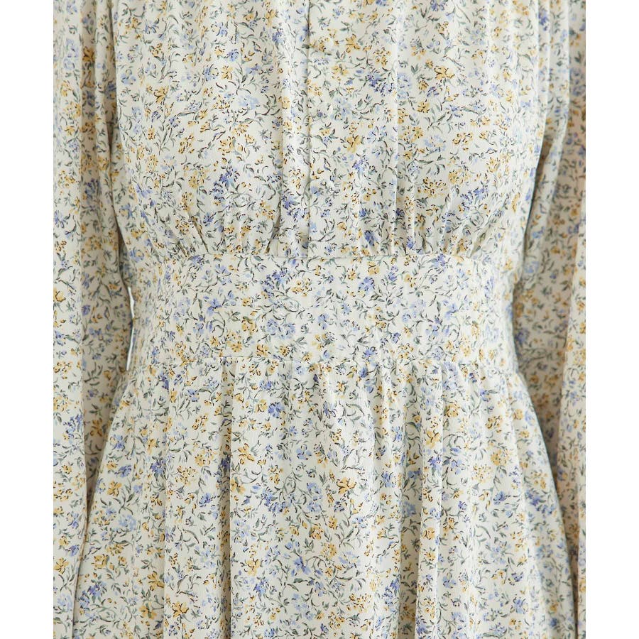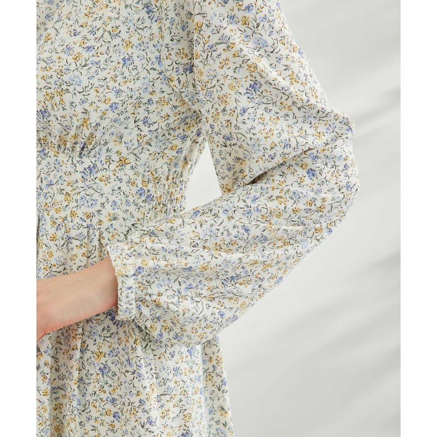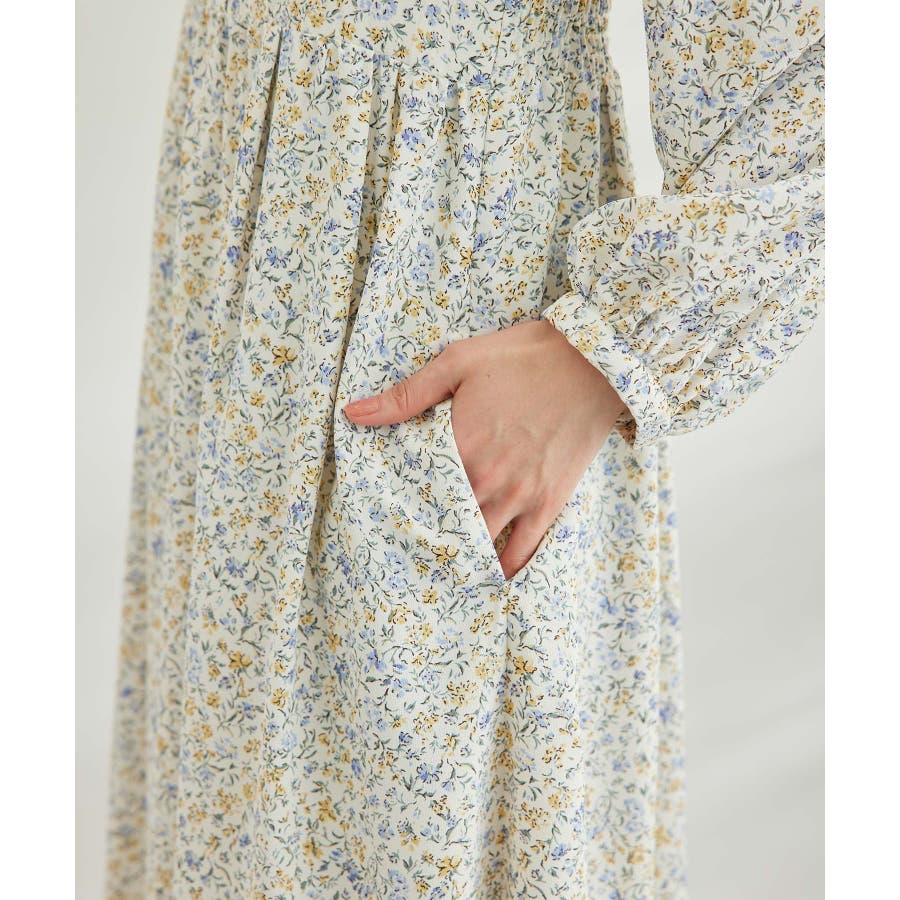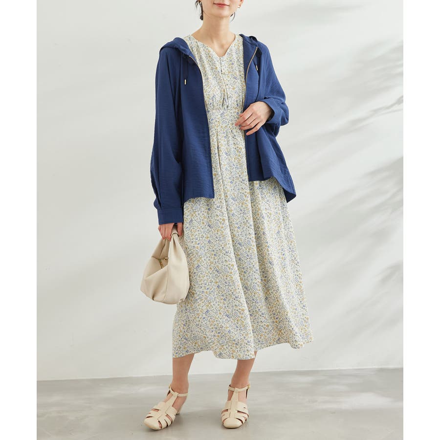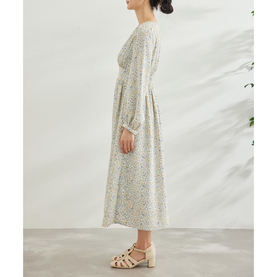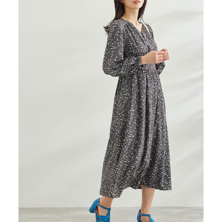 【素材感】 ・表面感のあるドビー素材を使用。 【デザイン・シルエット】 ・ハイウエストで切り替えを入れた、メリハリシルエットの長袖ワンピース。 ・取り入れやすいシックな小花プリント。 ・ウエストは後ろがギャザー使いでラクチン。 ・大人が着やすいロング丈。 【カラー】 ・オフホワイト、ベージュ、ネイビーのベーシックカラー3色展開。 ・ベージュ(27)は黄色に近い色味。 ・ネイビー(40)は濃いグレーのような色味。 【スタイリングポイント】 ・肌寒い時期には、厚手のカーディガンやブーツを合わせて。 ・春はレザージャケットやデニムジャケットを合わせると◎。 ----------------------------- 裏地:あり 透け感:なし、オフホワイト(15)は裏地が付いていないところはややあり 伸縮性:なし 生地感・厚さ:普通 ポケット:あり ウエスト:後ろゴム その他仕様:ボタンはフェイク。袖口一部ゴム 季節:春・秋 ----------------------------- ※撮影時の光、お使いのモニター環境によって色の見え方が違う場合がございます。 ※モデル身長:161cm 着用サイズ:38