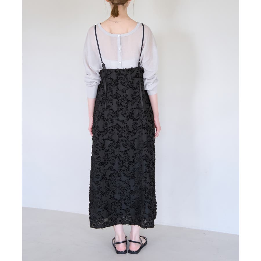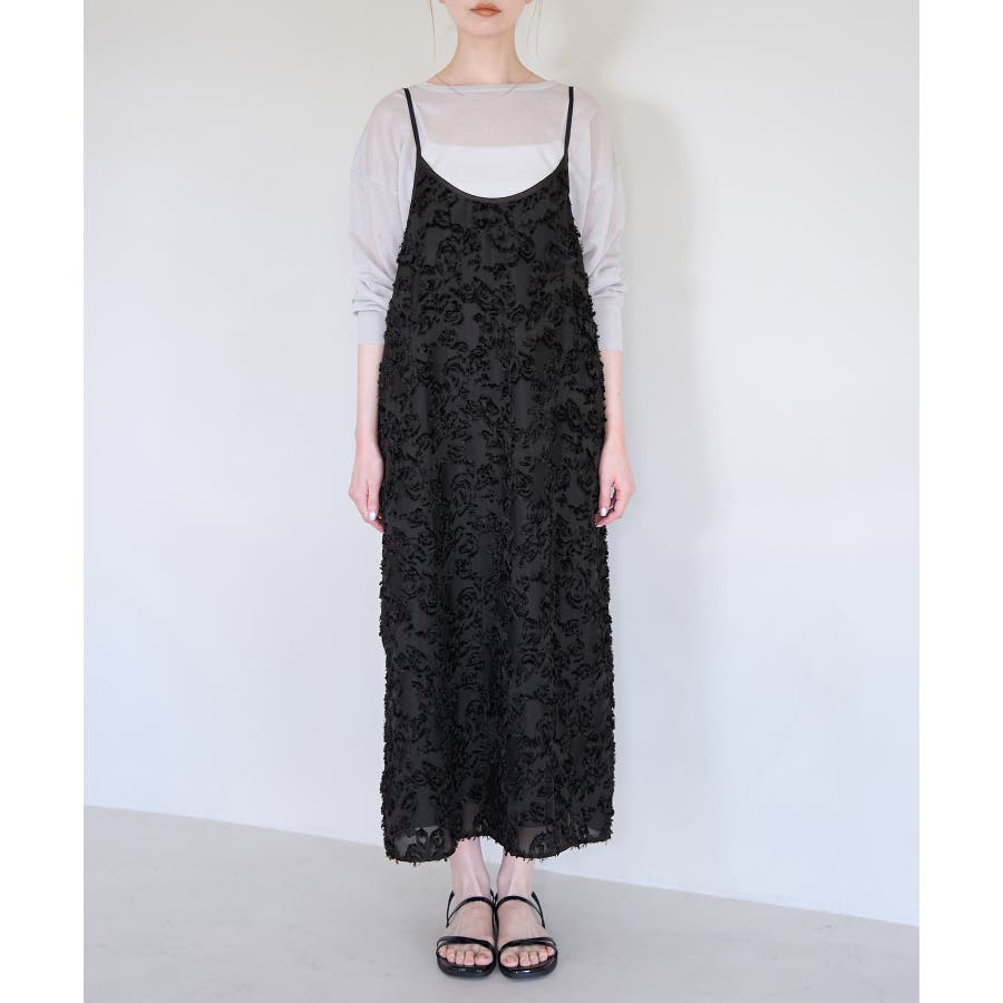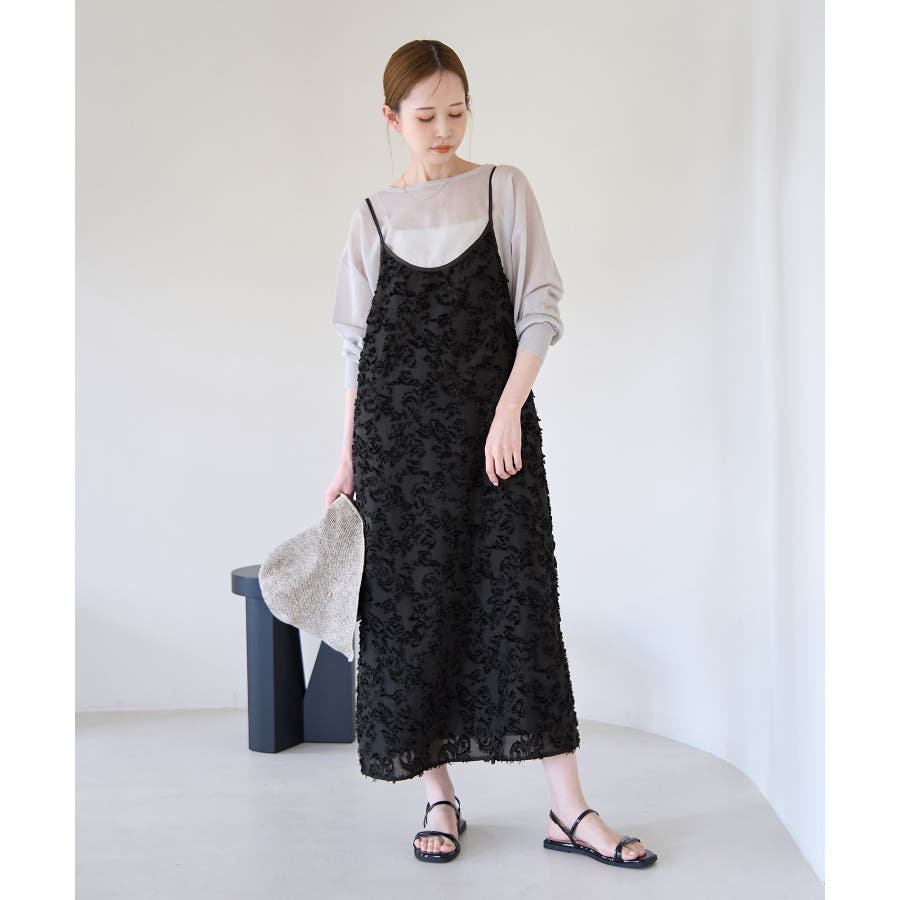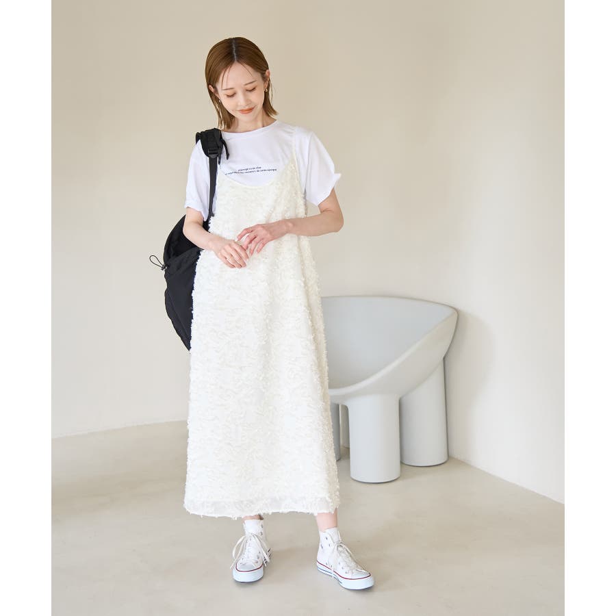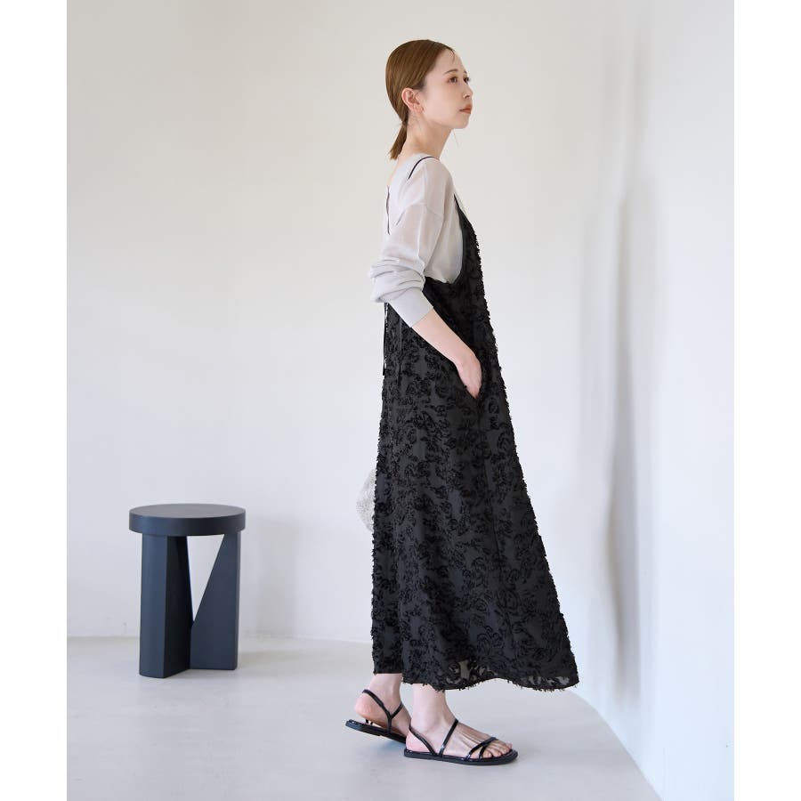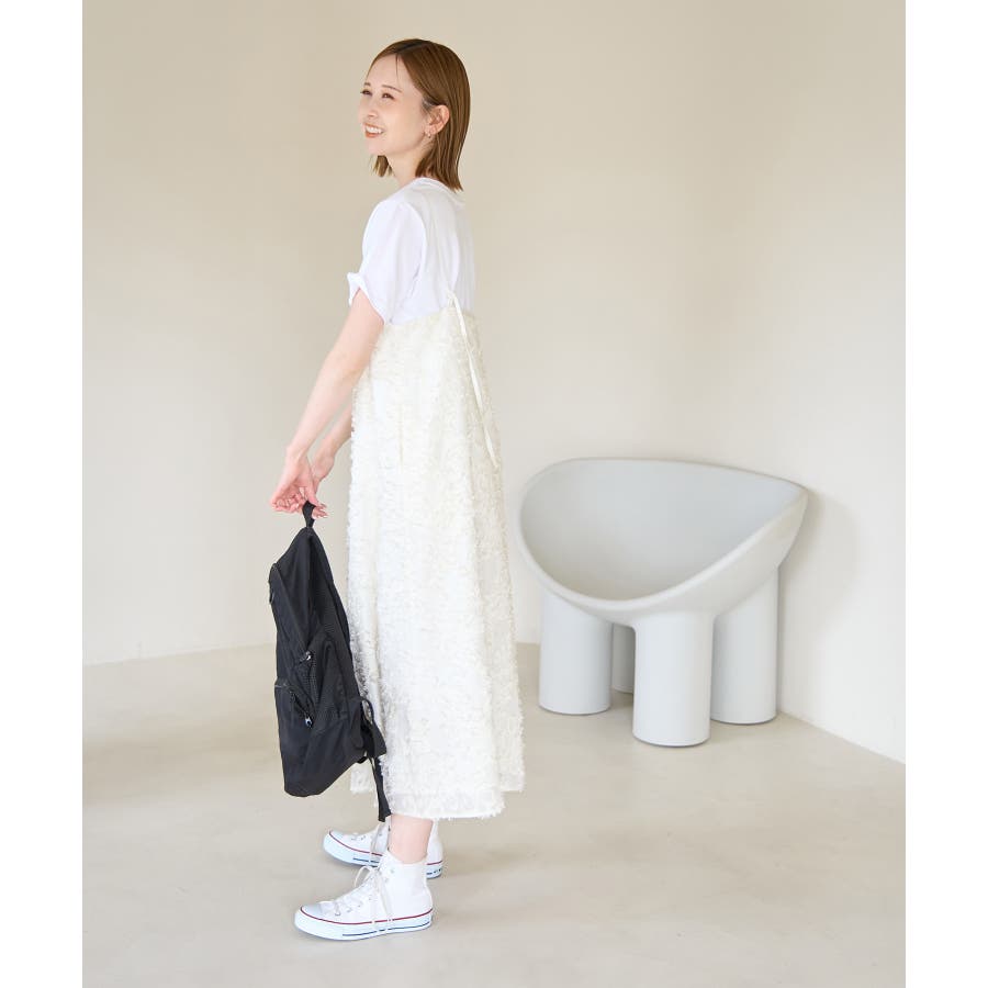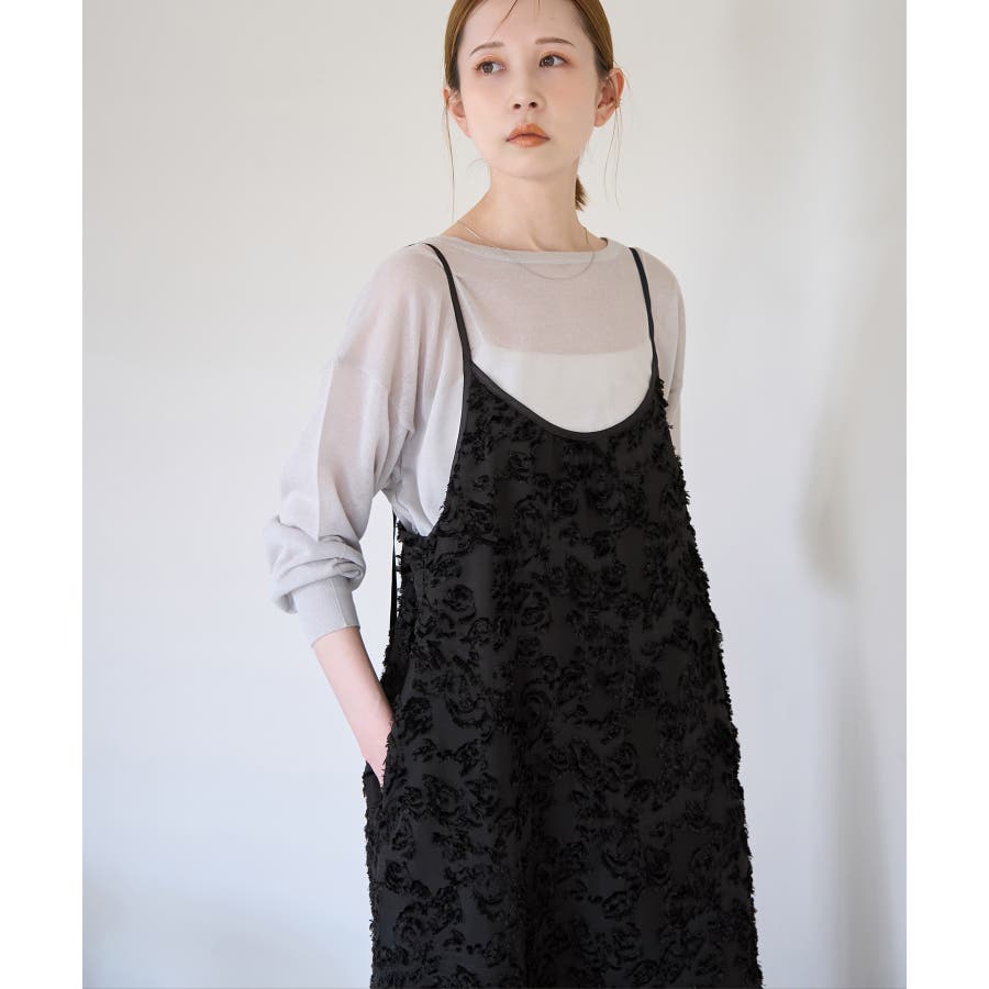 【素材感】 ・表情感のあるジャガード素材のキャミワンピース。 ・しっかりとした生地感なので、大人も着やすいアイテム。 【デザイン・シルエット】 ・細身の肩紐が大人なデザイン。 ・ショルダーストラップはアジャスト機能付き。 ・サイドの切り替えに隠しポケット付き。 【カラー】 ・ブラック、オフホワイトのモノクロカラー2色展開。 【スタイリングポイント】 ・ゆったりとしたニットやロングスリーブTシャツに合わせると今年っぽく決まる。 ・足もとはハイカットスニーカーでカジュアルダウンが一押し。 ・インナー次第でオールシーズン着用可能。 ----------------------------- 裏地:あり 透け感:なし 伸縮性:なし 生地感・厚さ:普通 ポケット:あり その他仕様:肩紐結び方で長さ調節可能 季節:通年 ----------------------------- ※撮影時の光、お使いのモニター環境によって色の見え方が違う場合がございます。 ※モデル身長:165cm 着用サイズ:38