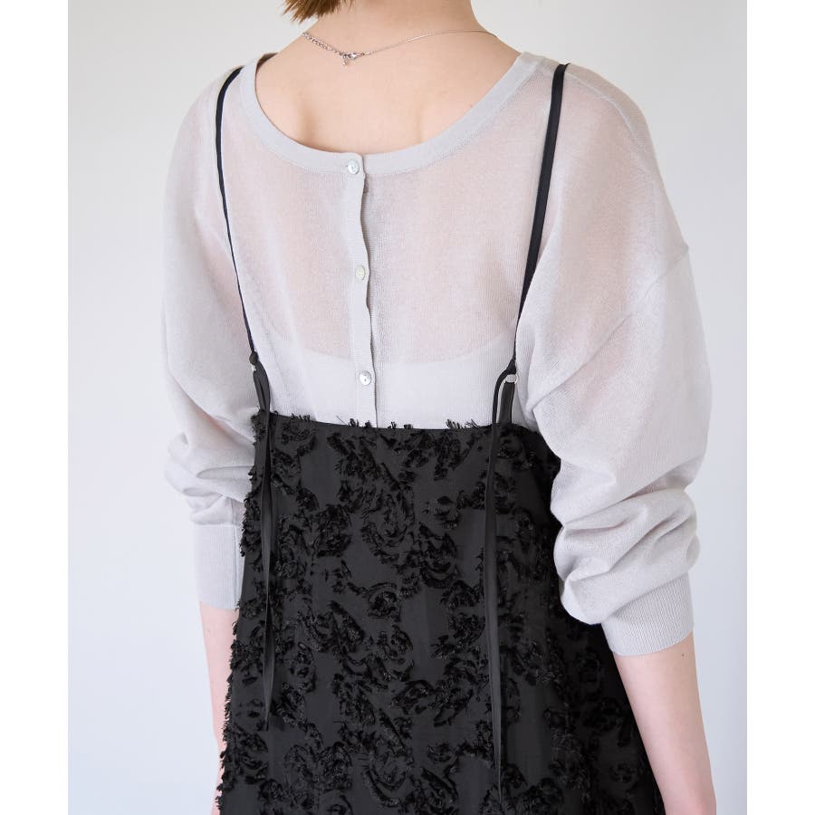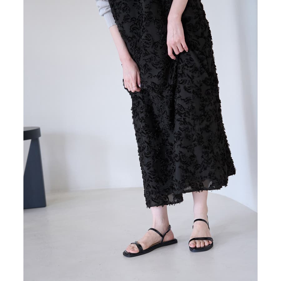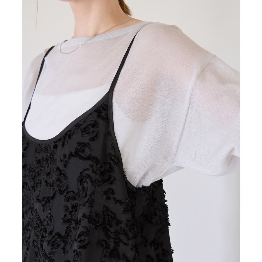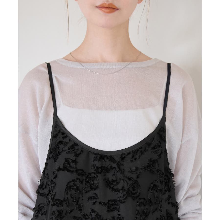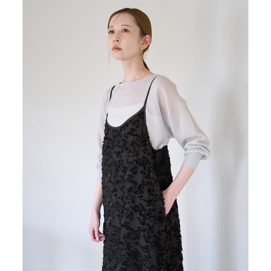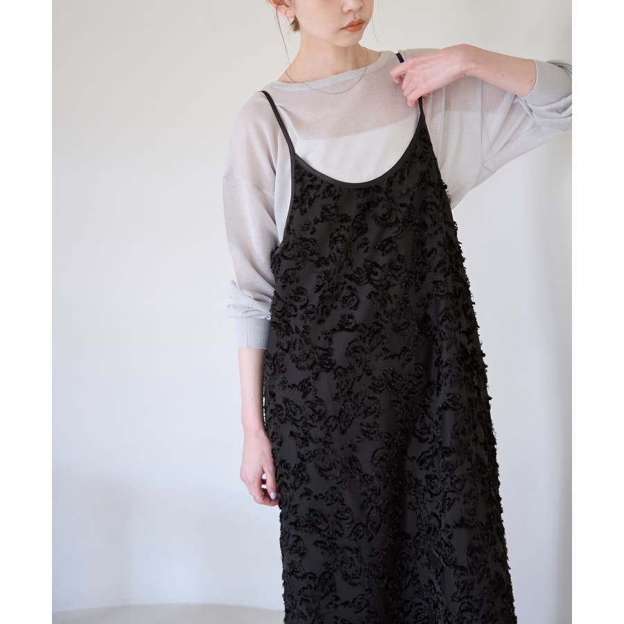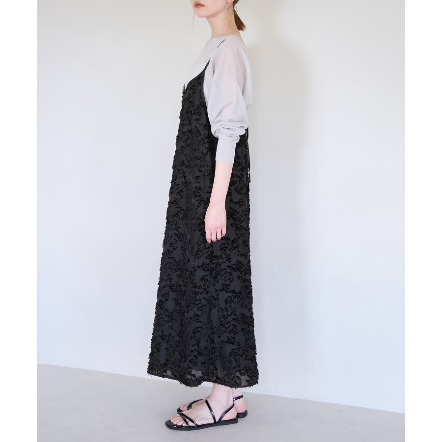 【素材感】 ・表情感のあるジャガード素材のキャミワンピース。 ・しっかりとした生地感なので、大人も着やすいアイテム。 【デザイン・シルエット】 ・細身の肩紐が大人なデザイン。 ・ショルダーストラップはアジャスト機能付き。 ・サイドの切り替えに隠しポケット付き。 【カラー】 ・ブラック、オフホワイトのモノクロカラー2色展開。 【スタイリングポイント】 ・ゆったりとしたニットやロングスリーブTシャツに合わせると今年っぽく決まる。 ・足もとはハイカットスニーカーでカジュアルダウンが一押し。 ・インナー次第でオールシーズン着用可能。 ----------------------------- 裏地:あり 透け感:なし 伸縮性:なし 生地感・厚さ:普通 ポケット:あり その他仕様:肩紐結び方で長さ調節可能 季節:通年 ----------------------------- ※撮影時の光、お使いのモニター環境によって色の見え方が違う場合がございます。 ※モデル身長:165cm 着用サイズ:38