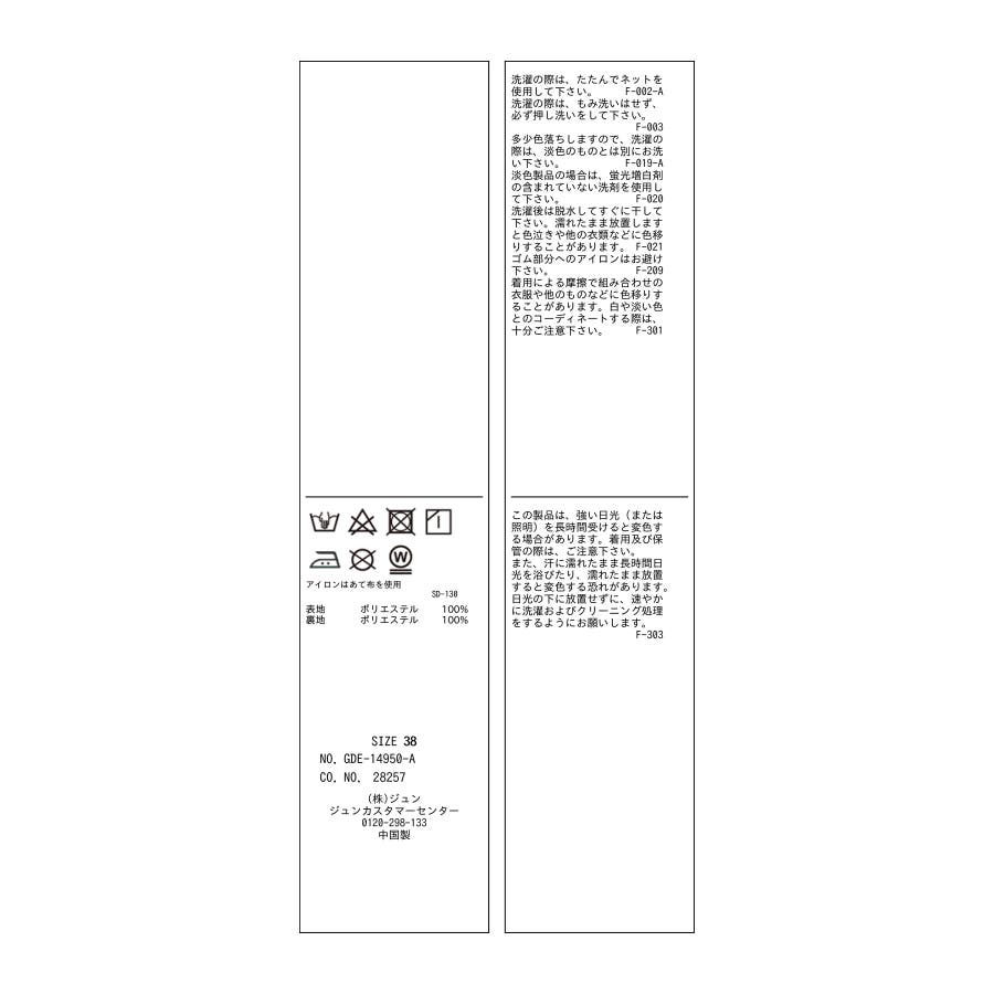 | 素材 | ホワイト系(11):(表地) ポリエステル 100% (裏地) ポリエステル 100%|ダークブラウン(20):(表地) ポリエステル 100% (裏地) ポリエステル 100%|レッド(60):(表地) ポリエステル 100% (裏地) ポリエステル 100% |