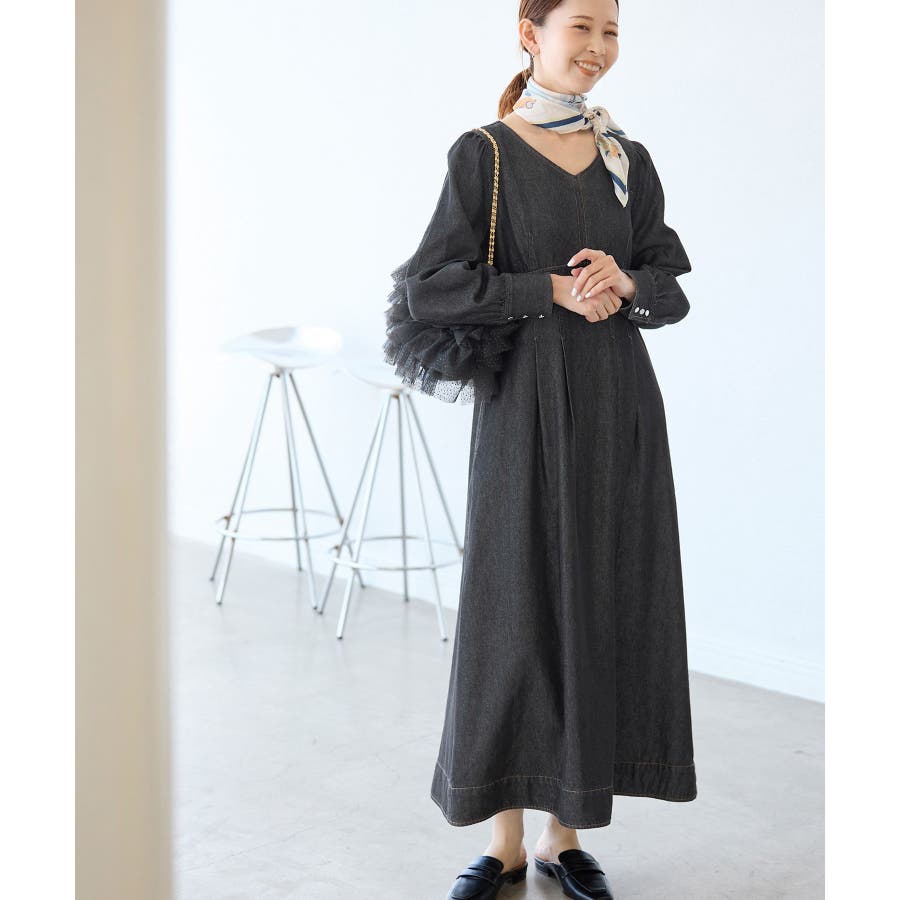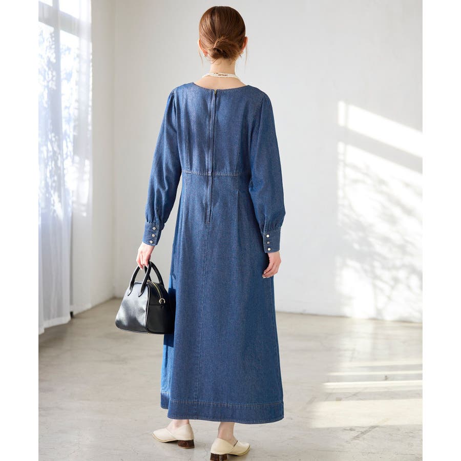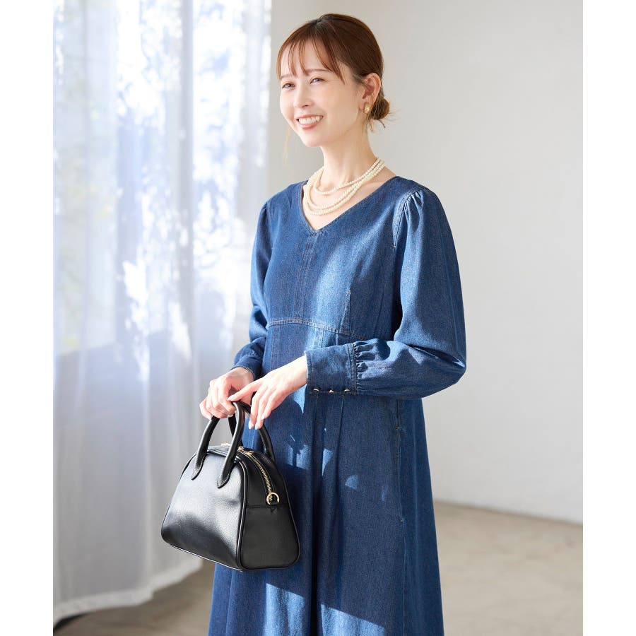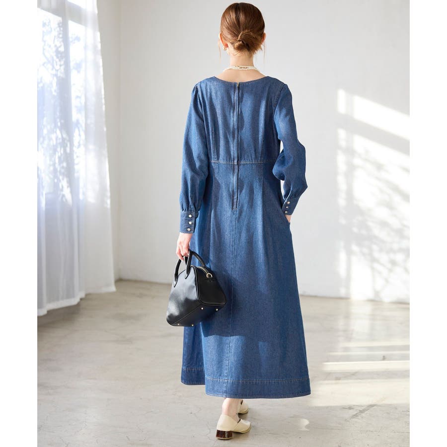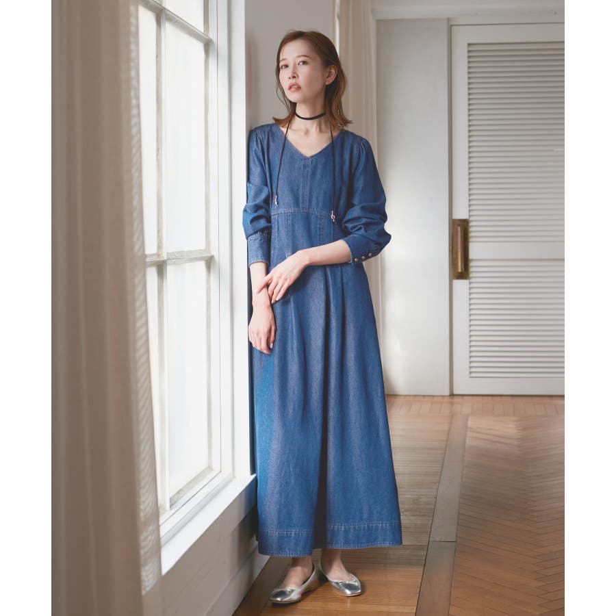 ・レディライクな袖付きワンピースを、デニム素材でほどよくカジュアルダウン。