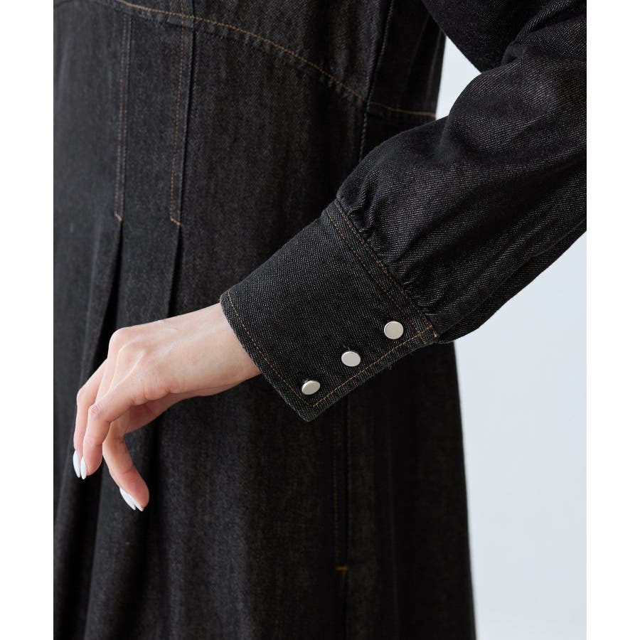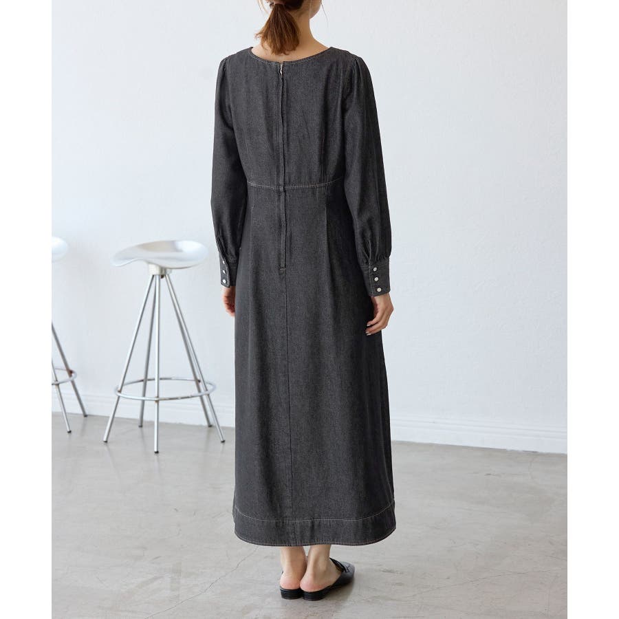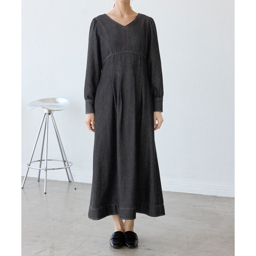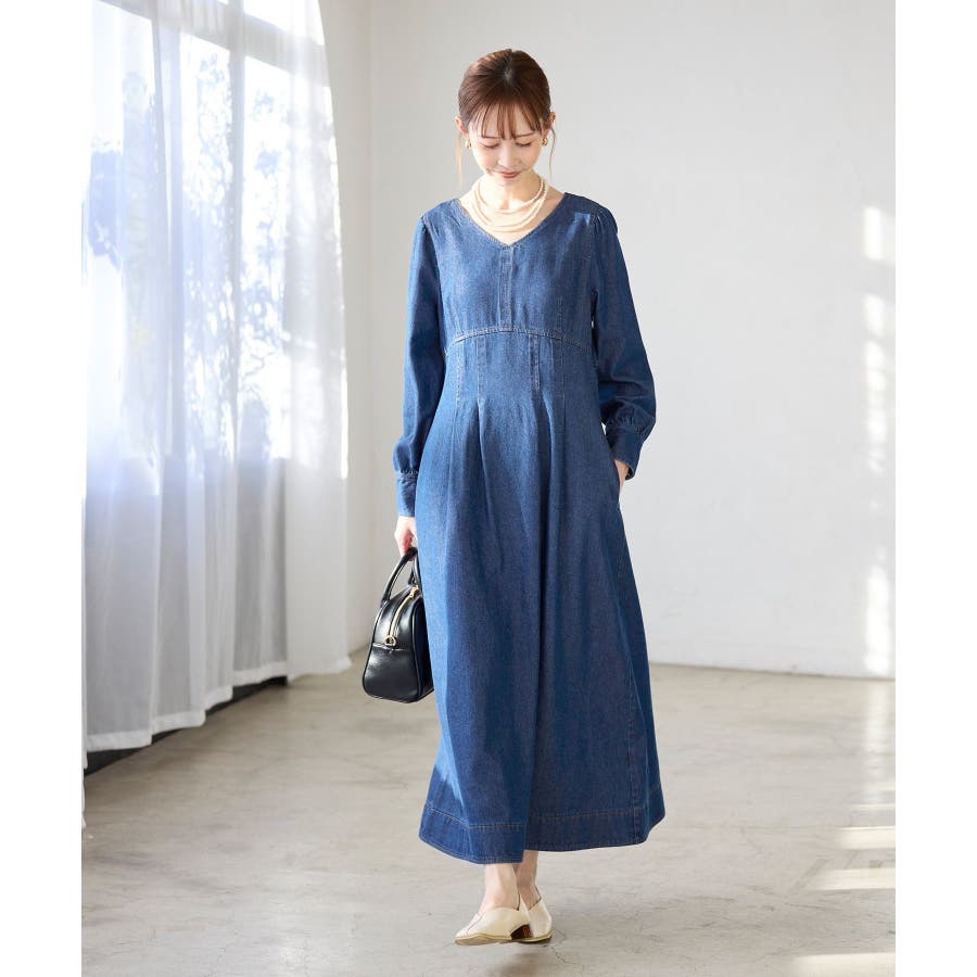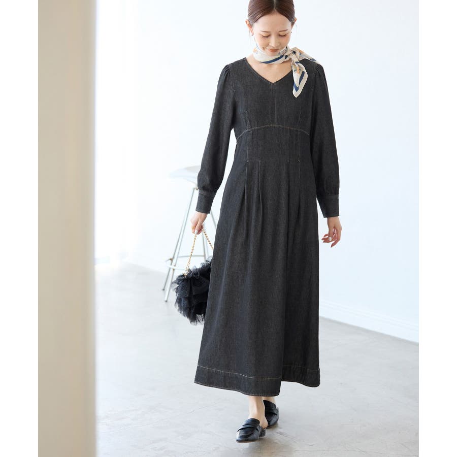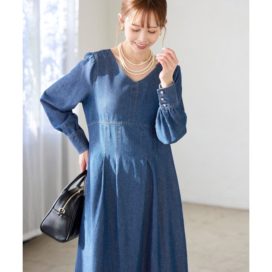 ・レディライクな袖付きワンピースを、デニム素材でほどよくカジュアルダウン。