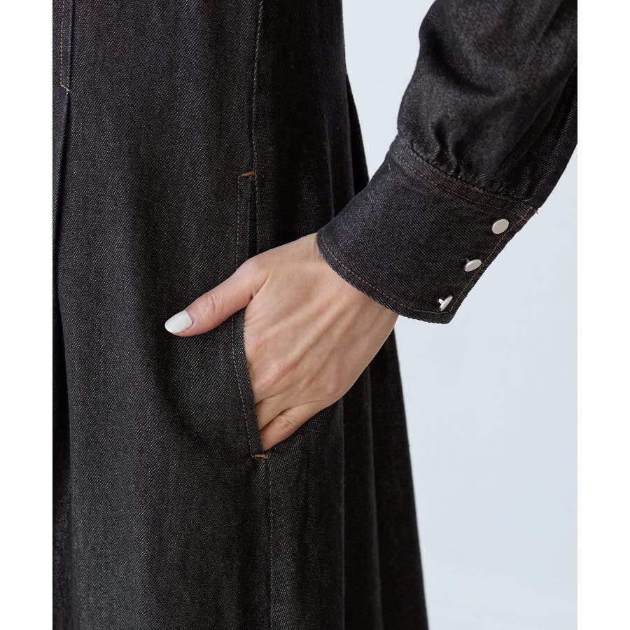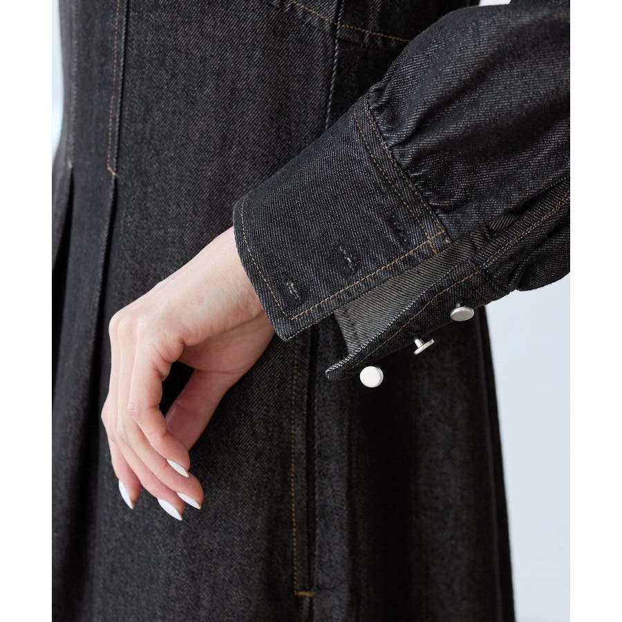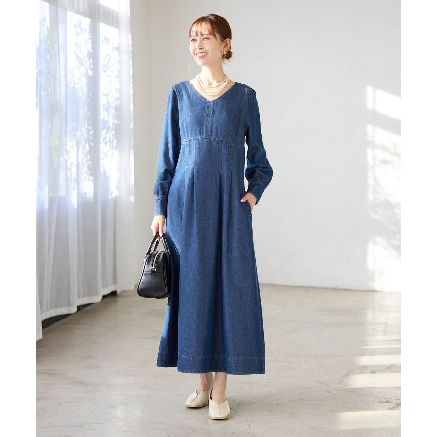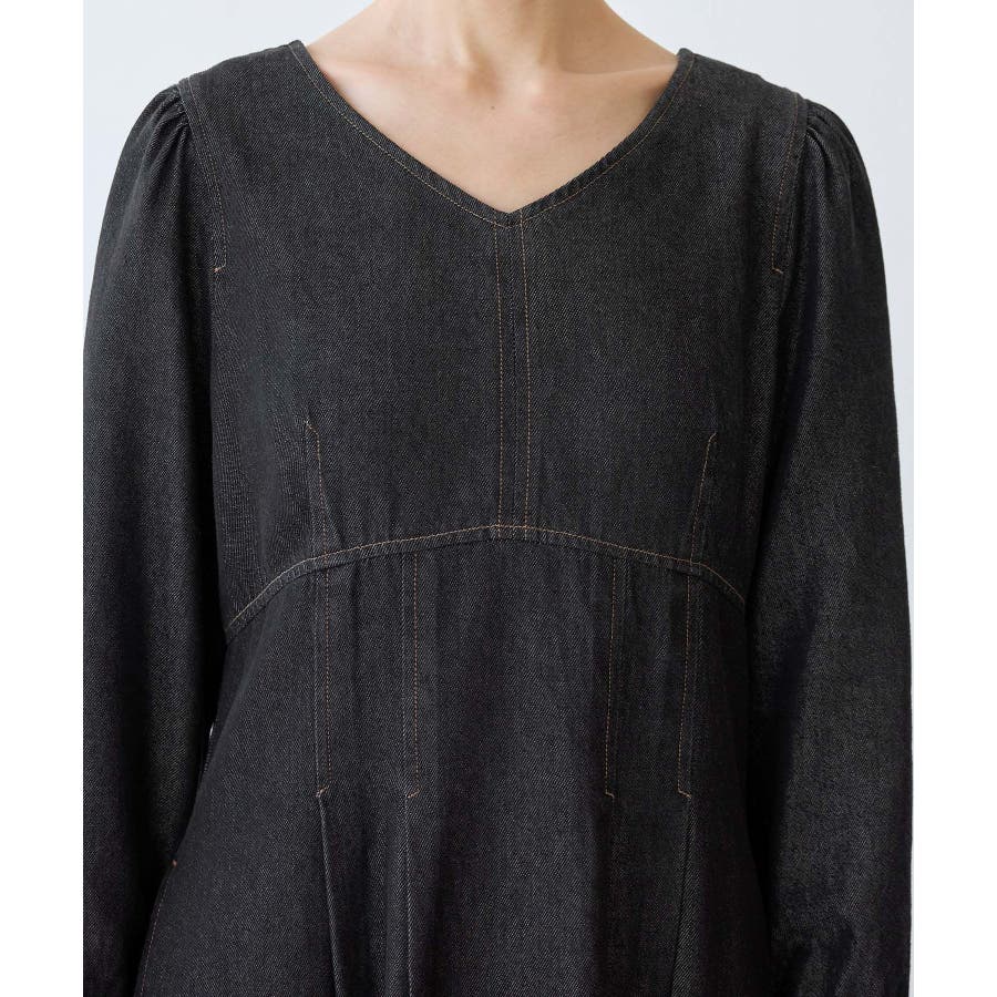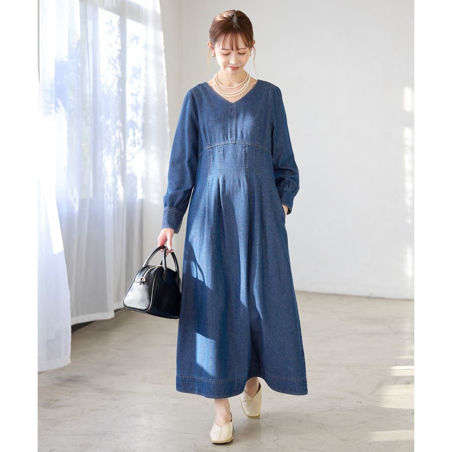 ・レディライクな袖付きワンピースを、デニム素材でほどよくカジュアルダウン。