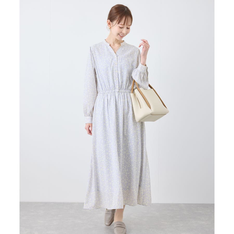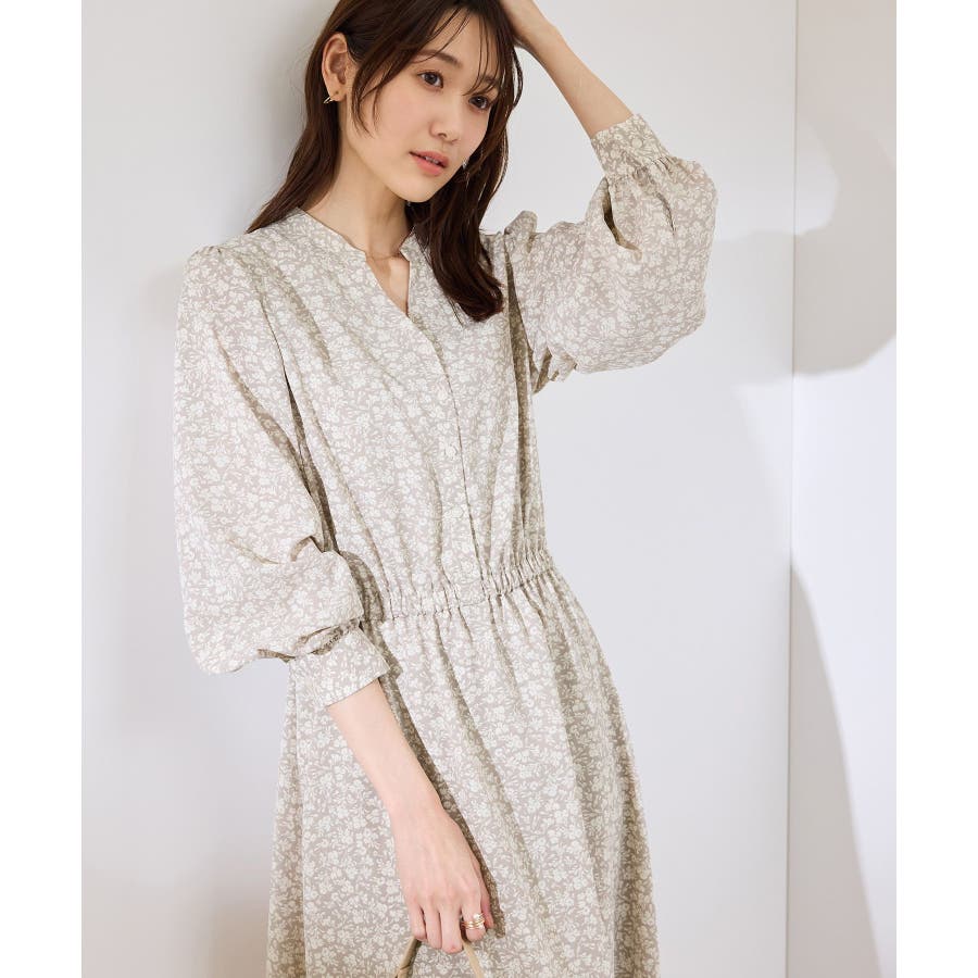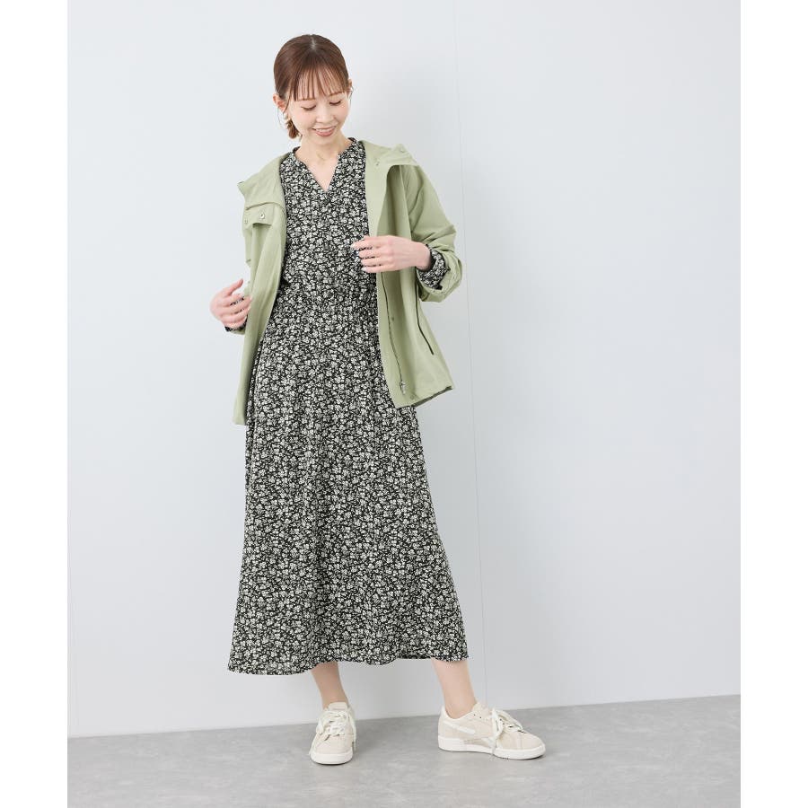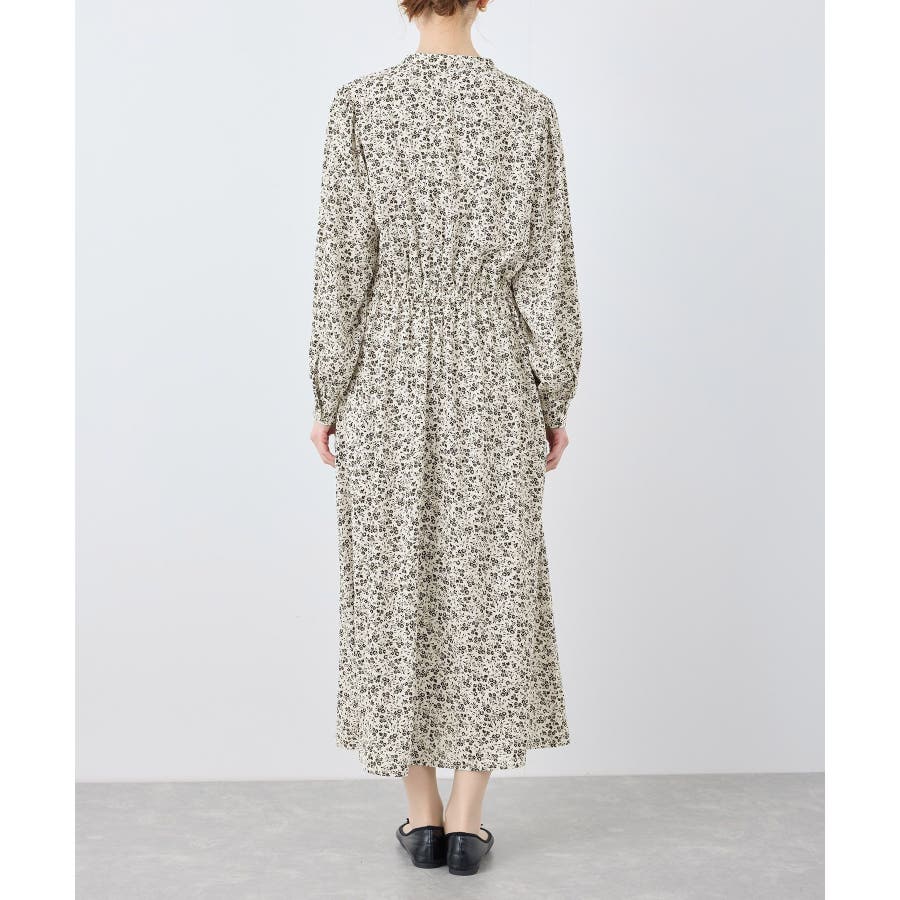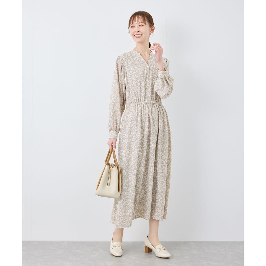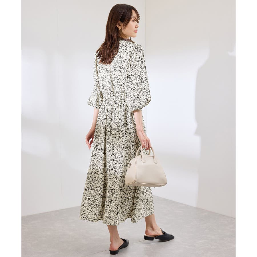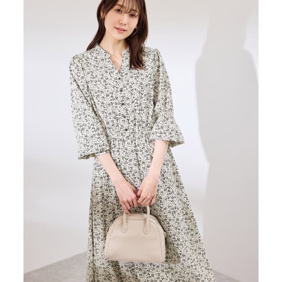 【デザイン・シルエット】 ・一枚で様になる小花プリントワンピース。 ・リラックスフォルムで着やすく、ウエストギャザーでシルエットもすっきり。 ・ボリュームスリーブが女性らしさをアップ。 ・スキッパーネックで首もとに抜け感をプラス。 【カラー】 ・ブラック、オフホワイト、ベージュ、サックスブルーの4色展開。 【スタイリングポイント】 ・春を先取りするならベージュやサックスブルーがおすすめ。 ・軽い素材なので、寒い時期は厚手のニットカーディガンやパデッドジャケットを羽織って工夫を。 ・足もとはブーツからパンプスやフラットシューズ、スニーカーに変えるだけで季節感をチェンジ。 ・寒い日は中に薄手のタートルシャツを重ねても◎。 ----------------------------- 裏地:あり 透け感:裏地がない部分はややあり 伸縮性:なし 生地感・厚さ:やや薄手 ウエスト:ゴム ポケット:なし ボタン:全て開閉可能 季節:春・秋・冬(カーディガンやジャケットを羽織れば◎) ----------------------------- ※撮影時の光、お使いのモニター環境によって色の見え方が違う場合がございます。 ※モデル身長:165cm 着用サイズ:38