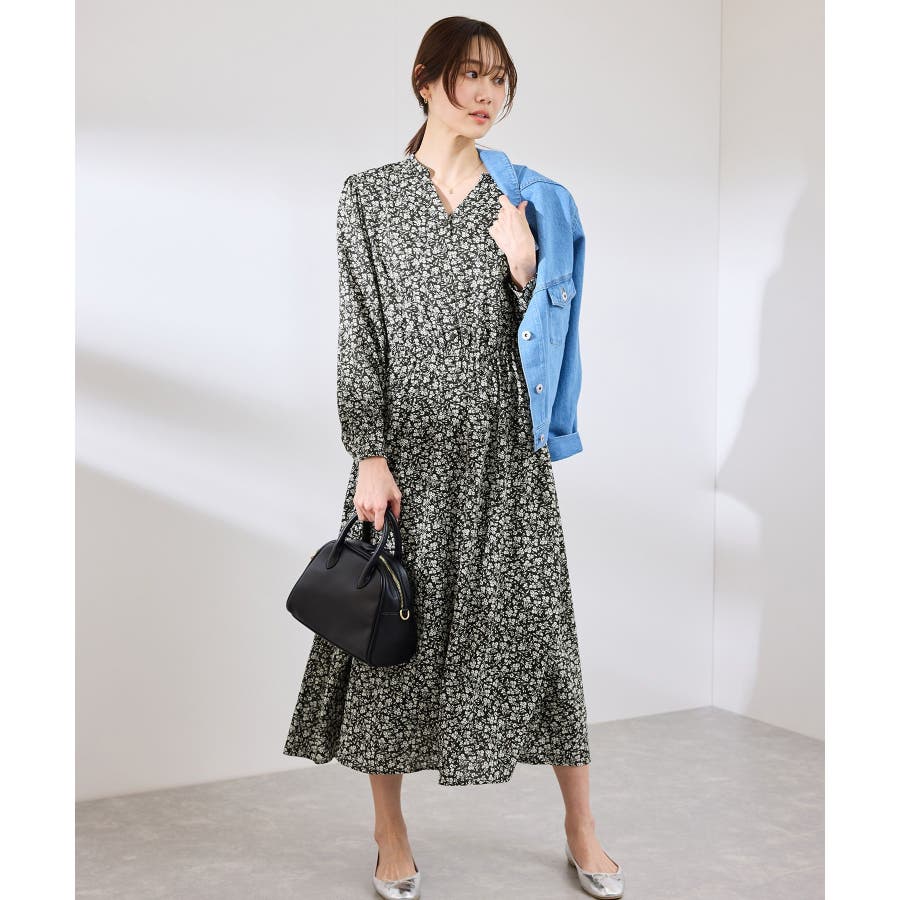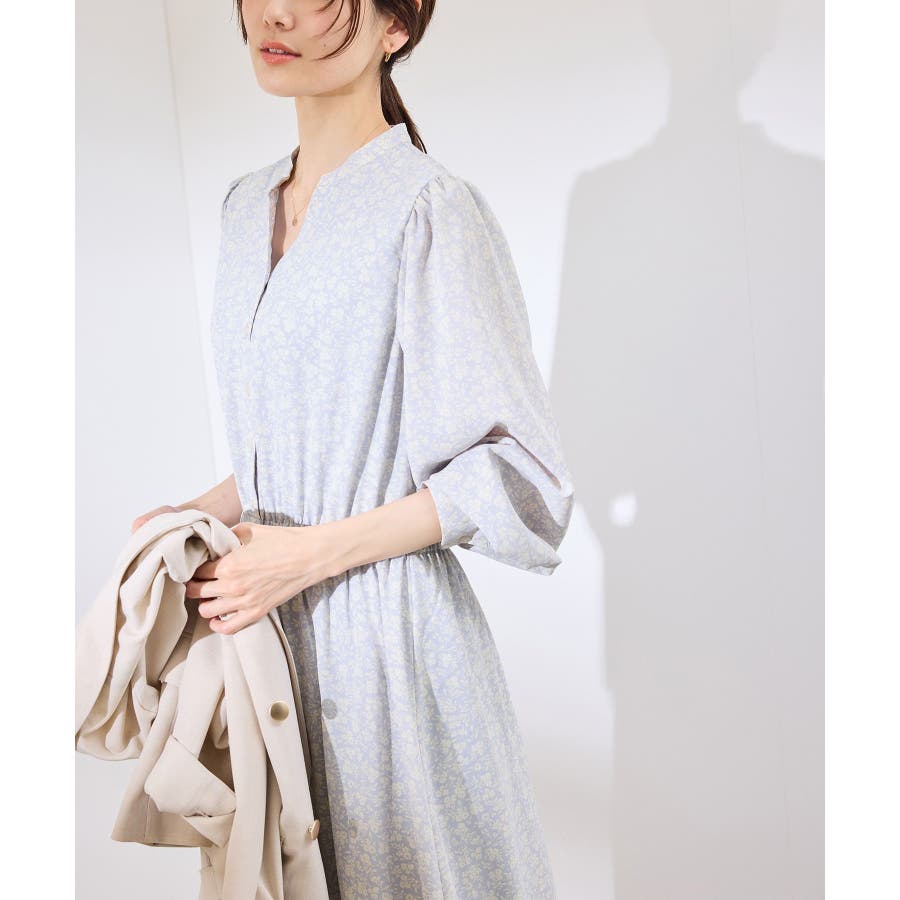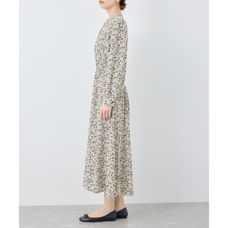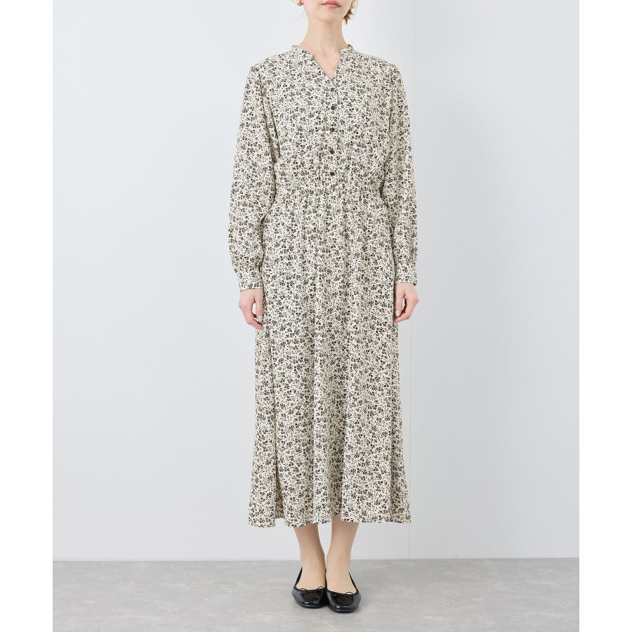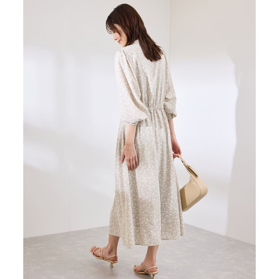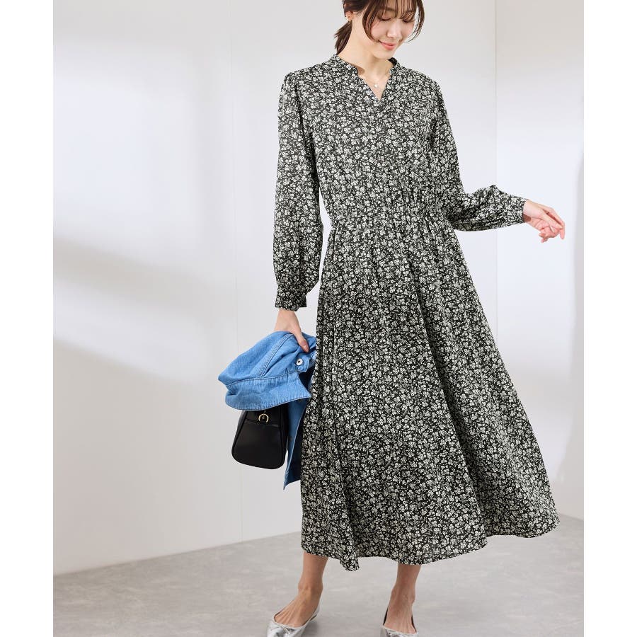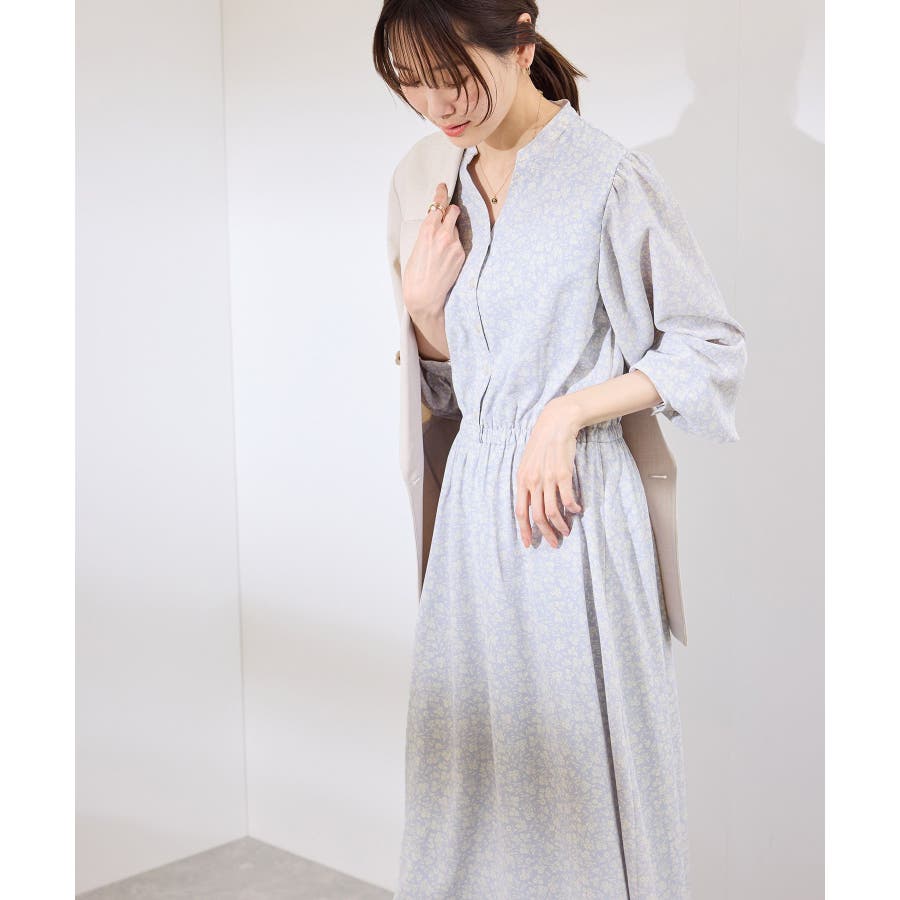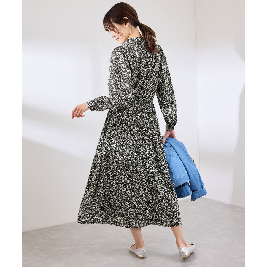【デザイン・シルエット】 ・一枚で様になる小花プリントワンピース。 ・リラックスフォルムで着やすく、ウエストギャザーでシルエットもすっきり。 ・ボリュームスリーブが女性らしさをアップ。 ・スキッパーネックで首もとに抜け感をプラス。 【カラー】 ・ブラック、オフホワイト、ベージュ、サックスブルーの4色展開。 【スタイリングポイント】 ・春を先取りするならベージュやサックスブルーがおすすめ。 ・軽い素材なので、寒い時期は厚手のニットカーディガンやパデッドジャケットを羽織って工夫を。 ・足もとはブーツからパンプスやフラットシューズ、スニーカーに変えるだけで季節感をチェンジ。 ・寒い日は中に薄手のタートルシャツを重ねても◎。 ----------------------------- 裏地:あり 透け感:裏地がない部分はややあり 伸縮性:なし 生地感・厚さ:やや薄手 ウエスト:ゴム ポケット:なし ボタン:全て開閉可能 季節:春・秋・冬(カーディガンやジャケットを羽織れば◎) ----------------------------- ※撮影時の光、お使いのモニター環境によって色の見え方が違う場合がございます。 ※モデル身長:165cm 着用サイズ:38