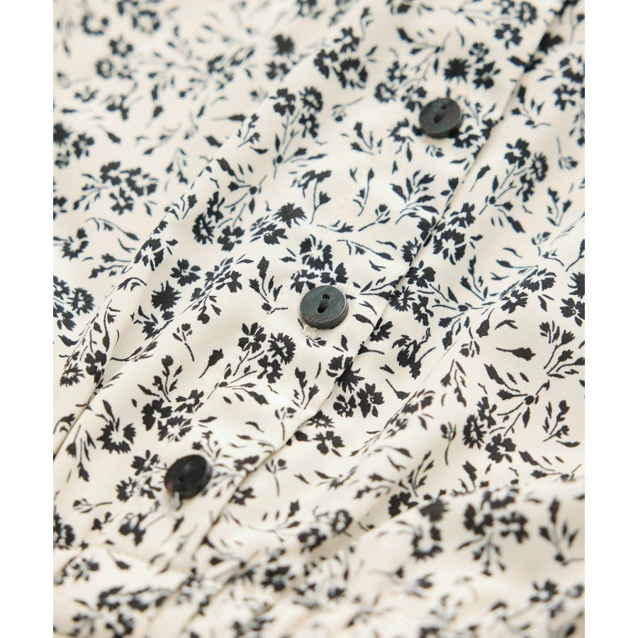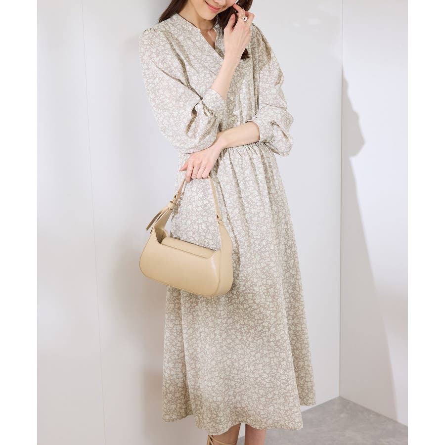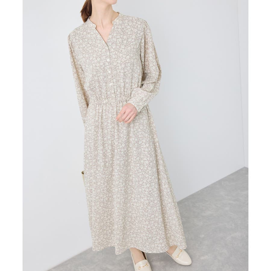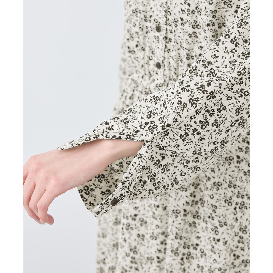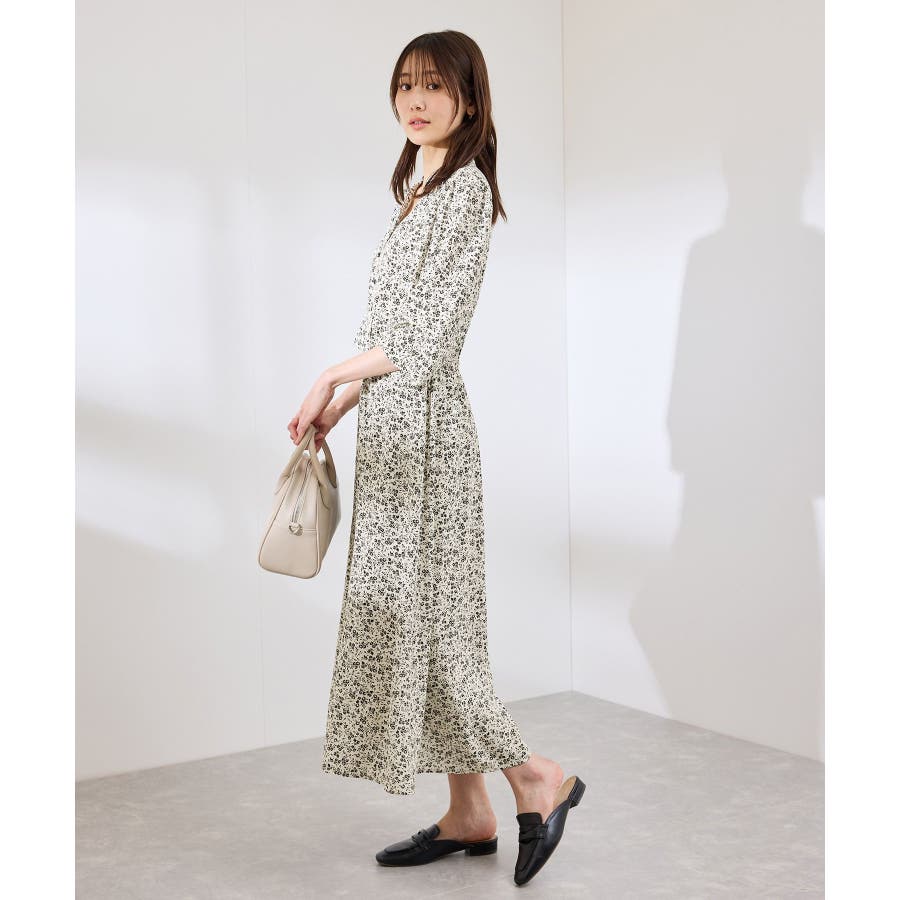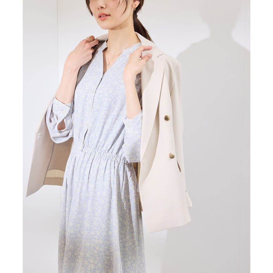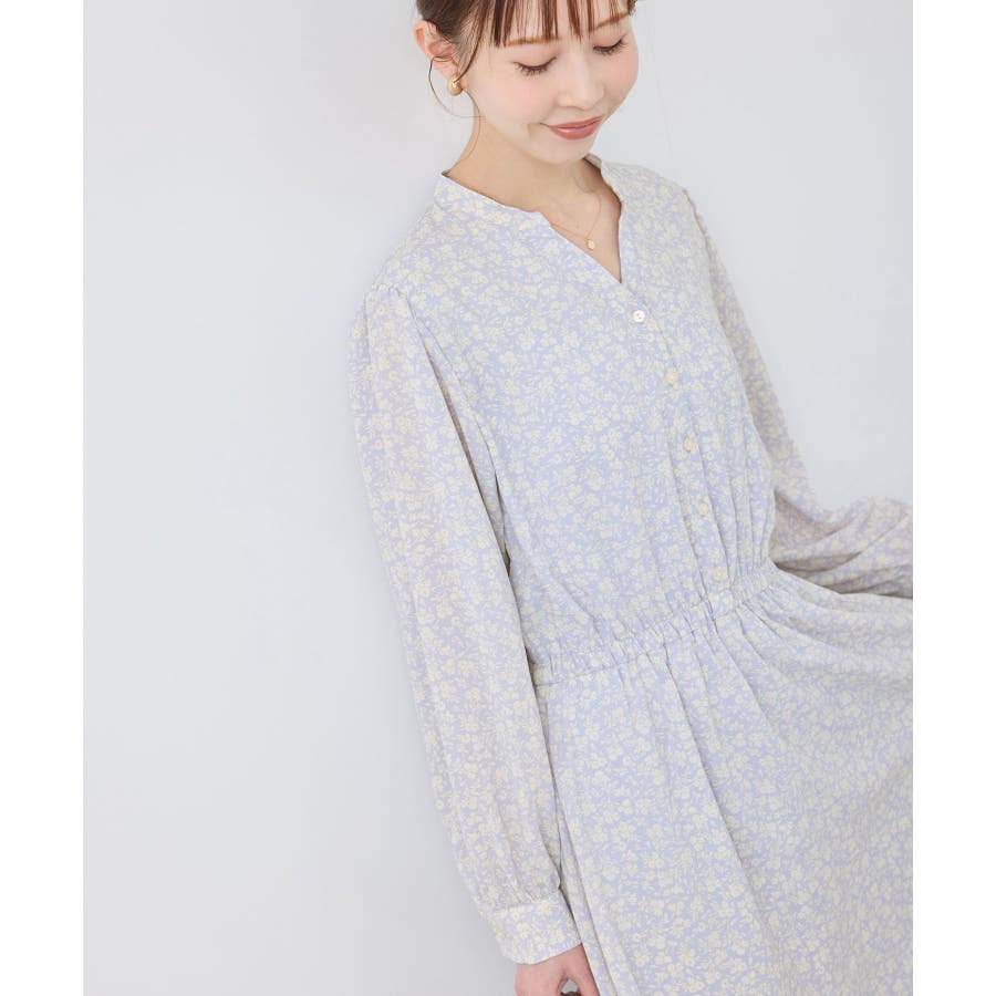 【デザイン・シルエット】 ・一枚で様になる小花プリントワンピース。 ・リラックスフォルムで着やすく、ウエストギャザーでシルエットもすっきり。 ・ボリュームスリーブが女性らしさをアップ。 ・スキッパーネックで首もとに抜け感をプラス。 【カラー】 ・ブラック、オフホワイト、ベージュ、サックスブルーの4色展開。 【スタイリングポイント】 ・春を先取りするならベージュやサックスブルーがおすすめ。 ・軽い素材なので、寒い時期は厚手のニットカーディガンやパデッドジャケットを羽織って工夫を。 ・足もとはブーツからパンプスやフラットシューズ、スニーカーに変えるだけで季節感をチェンジ。 ・寒い日は中に薄手のタートルシャツを重ねても◎。 ----------------------------- 裏地:あり 透け感:裏地がない部分はややあり 伸縮性:なし 生地感・厚さ:やや薄手 ウエスト:ゴム ポケット:なし ボタン:全て開閉可能 季節:春・秋・冬(カーディガンやジャケットを羽織れば◎) ----------------------------- ※撮影時の光、お使いのモニター環境によって色の見え方が違う場合がございます。 ※モデル身長:165cm 着用サイズ:38