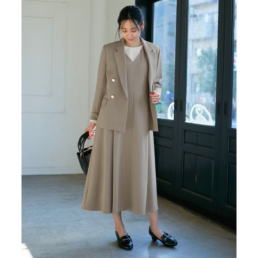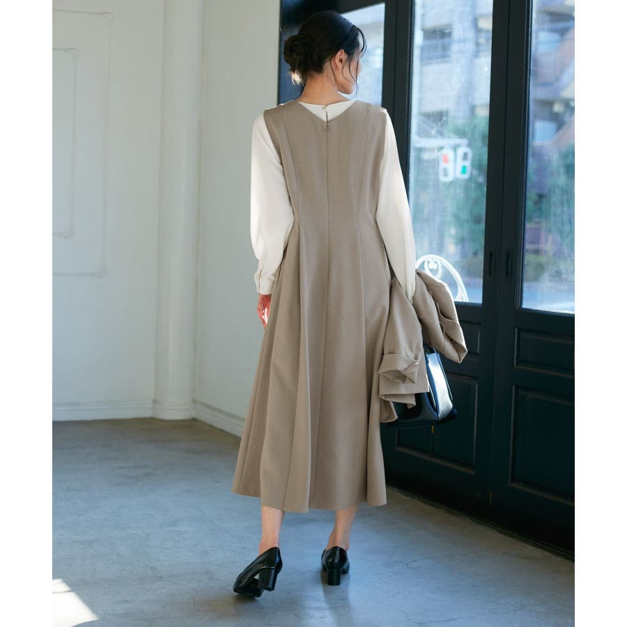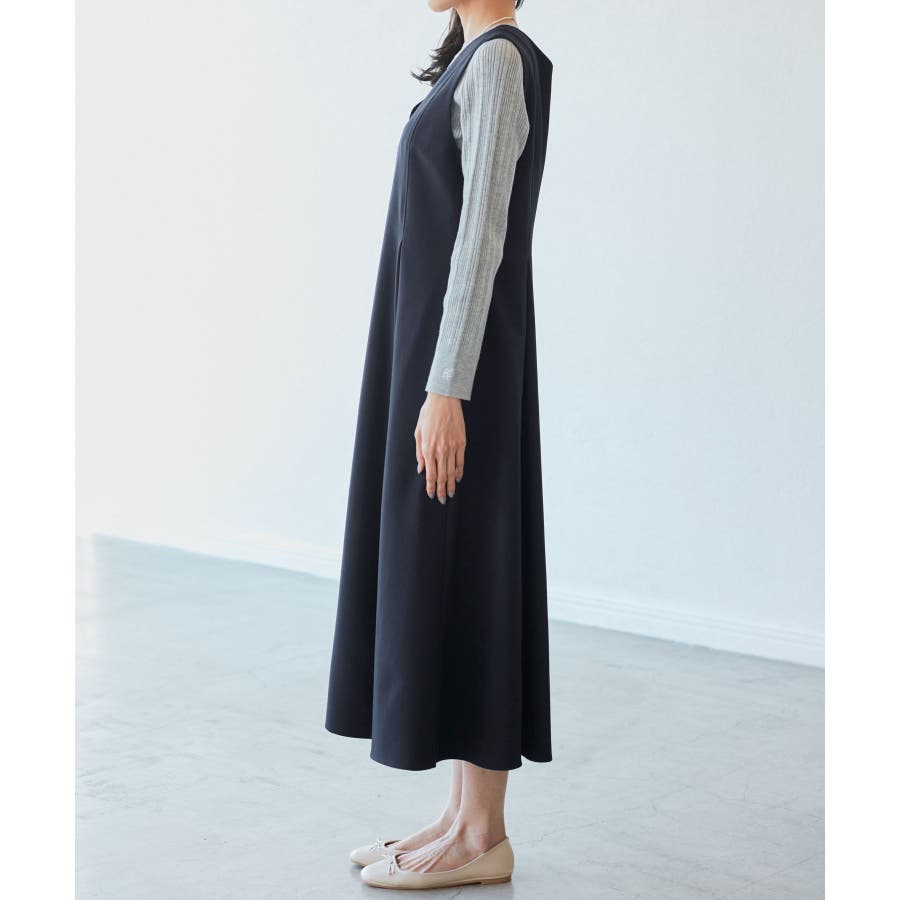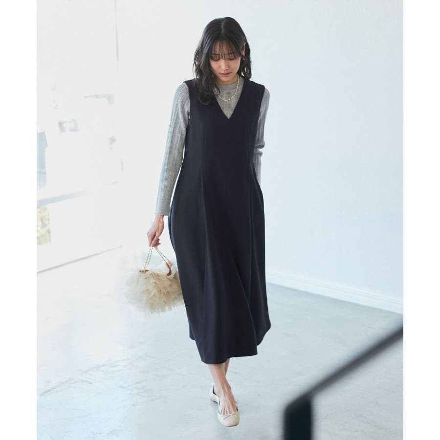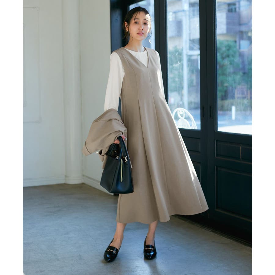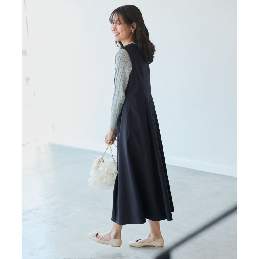 【素材感】 ・再生ポリエステルを使用した、サステナブルなアイテム。 ・ほんのり光沢のある、ツイル素材のジャンパースカート。 【デザイン・シルエット】 ・クリーンなツイル生地で仕立てたジャンパースカートは、通勤やお仕事からカジュアルシーンまで幅広く対応。 ・切り替えを入れることで、女性らしいフィット感を演出し、セレモニーシーンの服装にも最適。 ・前後に開くVネックがすっきりとした印象を与え、フォーマルスタイルをエレガントに仕上げる。 ・両サイドにあしらったベルトディテールがアクセントとなり、きちんと感の中にもトレンド感をプラス。 【カラー】 ・ライトグレー、キャメル、ネイビーの3色展開で、オケージョンやフォーマルな服装にも合わせやすい上品な色合い。 【スタイリングポイント】 ・メロウラインが可愛らしい薄手のタートルネックシャツを重ねて、カジュアルながらフォーマル感も兼ね備えた着こなしに。 ・襟付きブラウスと合わせることでクラシックなムードが楽しめ、卒園式や入園式のハレの日にも映えるスタイリングが完成。 ・きちんと感があり、通勤やお仕事の場面はもちろん、特別なお出かけシーンにも活躍する一着。 ----------------------------- 裏地:あり 透け感:なし 伸縮性:ややあり 生地感・厚さ:普通 ポケット:あり その他仕様:後ろファスナー 季節:春・夏・秋・冬 ----------------------------- ※撮影時の光、お使いのモニター環境によって色の見え方が違う場合がございます。 ※モデル身長:165cm 着用サイズ:38