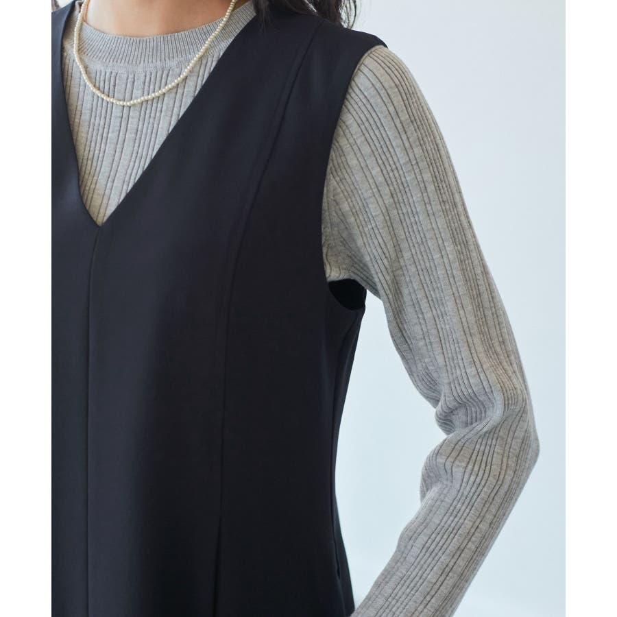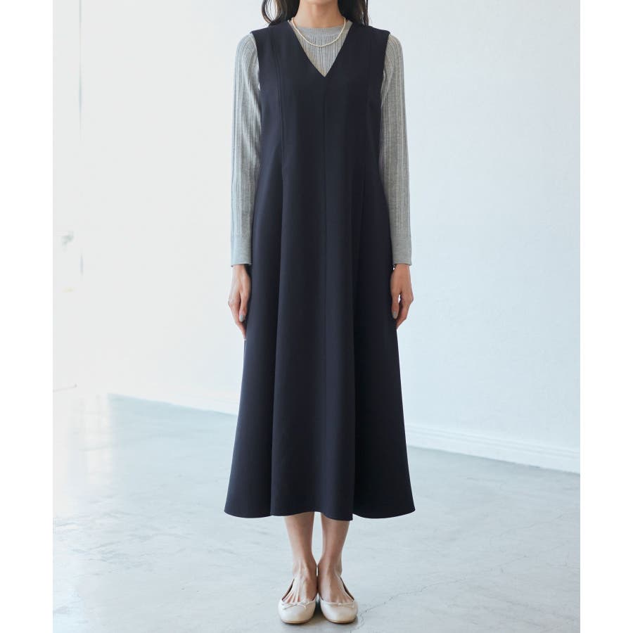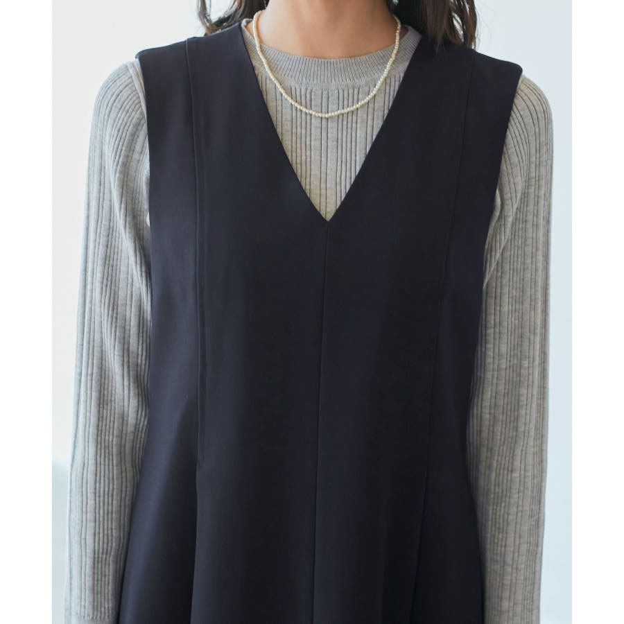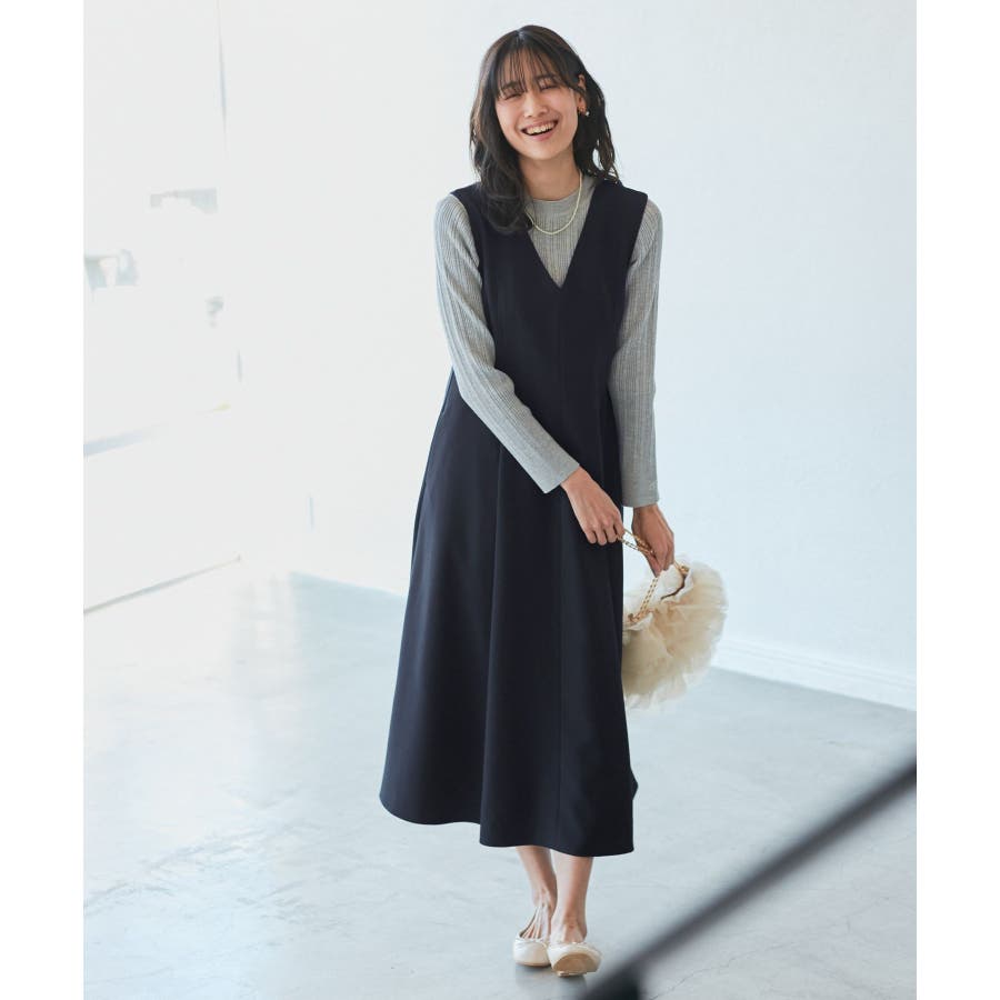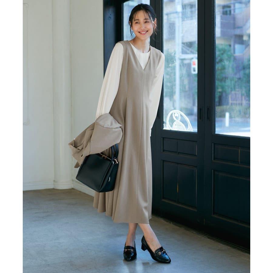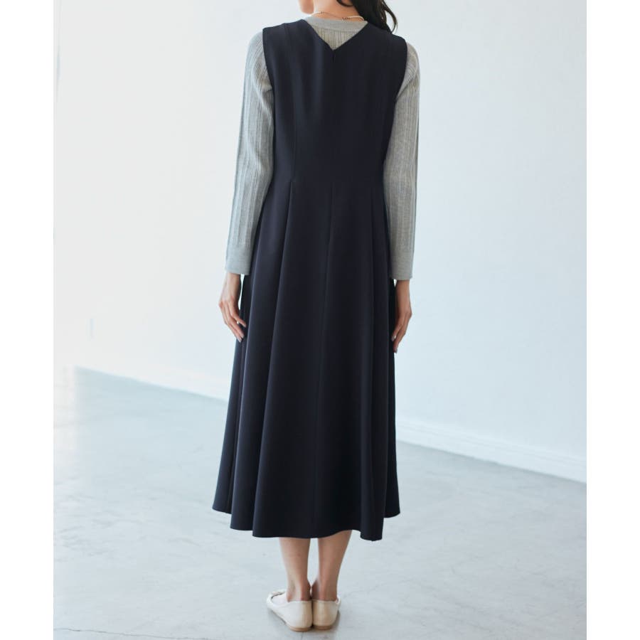 【素材感】 ・再生ポリエステルを使用した、サステナブルなアイテム。 ・ほんのり光沢のある、ツイル素材のジャンパースカート。 【デザイン・シルエット】 ・クリーンなツイル生地で仕立てたジャンパースカートは、通勤やお仕事からカジュアルシーンまで幅広く対応。 ・切り替えを入れることで、女性らしいフィット感を演出し、セレモニーシーンの服装にも最適。 ・前後に開くVネックがすっきりとした印象を与え、フォーマルスタイルをエレガントに仕上げる。 ・両サイドにあしらったベルトディテールがアクセントとなり、きちんと感の中にもトレンド感をプラス。 【カラー】 ・ライトグレー、キャメル、ネイビーの3色展開で、オケージョンやフォーマルな服装にも合わせやすい上品な色合い。 【スタイリングポイント】 ・メロウラインが可愛らしい薄手のタートルネックシャツを重ねて、カジュアルながらフォーマル感も兼ね備えた着こなしに。 ・襟付きブラウスと合わせることでクラシックなムードが楽しめ、卒園式や入園式のハレの日にも映えるスタイリングが完成。 ・きちんと感があり、通勤やお仕事の場面はもちろん、特別なお出かけシーンにも活躍する一着。 ----------------------------- 裏地:あり 透け感:なし 伸縮性:ややあり 生地感・厚さ:普通 ポケット:あり その他仕様:後ろファスナー 季節:春・夏・秋・冬 ----------------------------- ※撮影時の光、お使いのモニター環境によって色の見え方が違う場合がございます。 ※モデル身長:165cm 着用サイズ:38