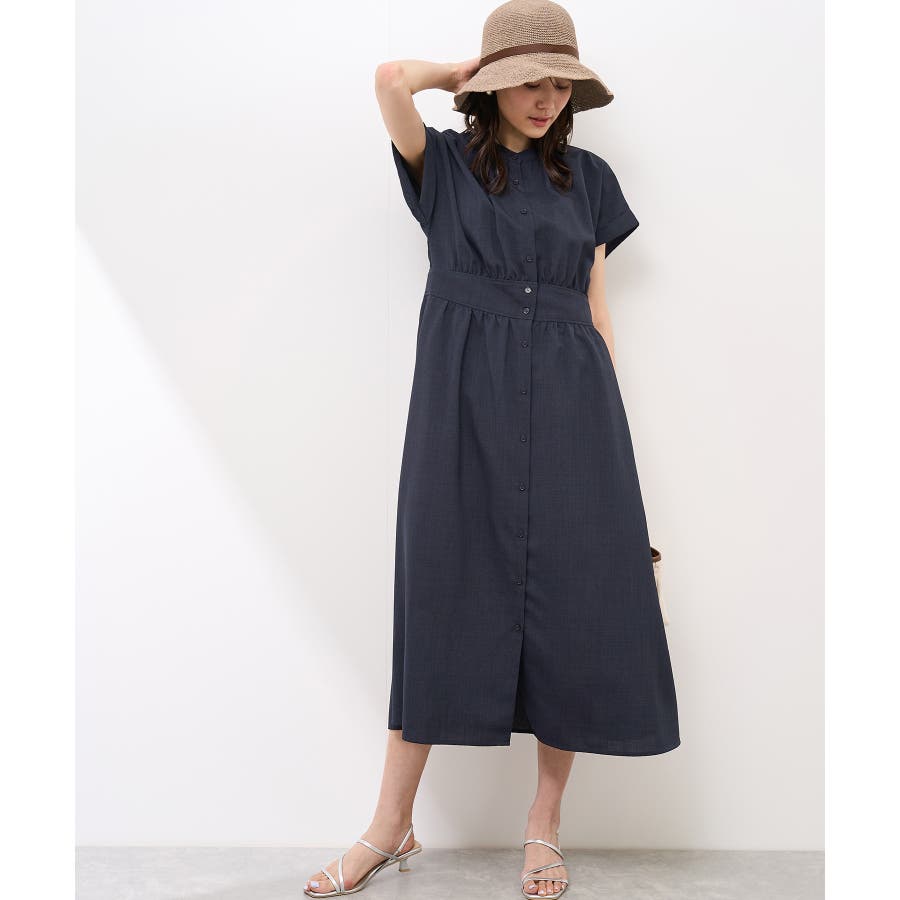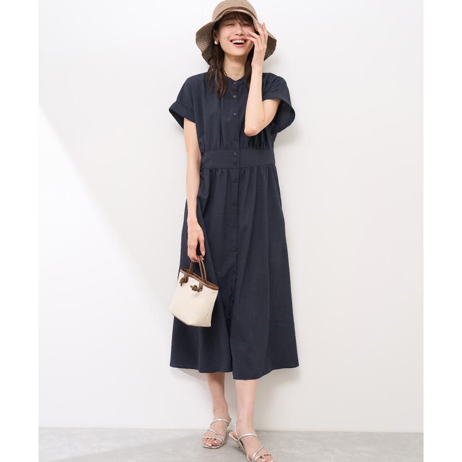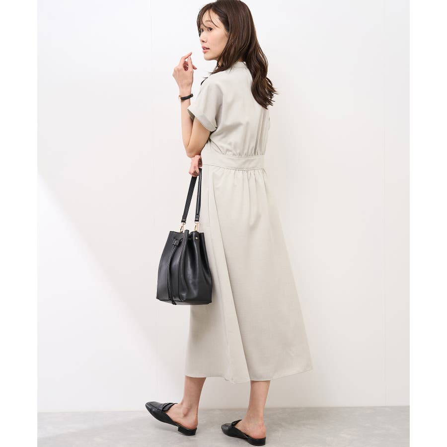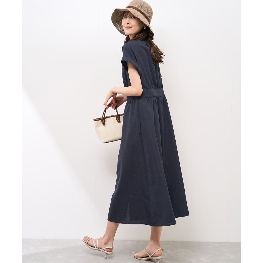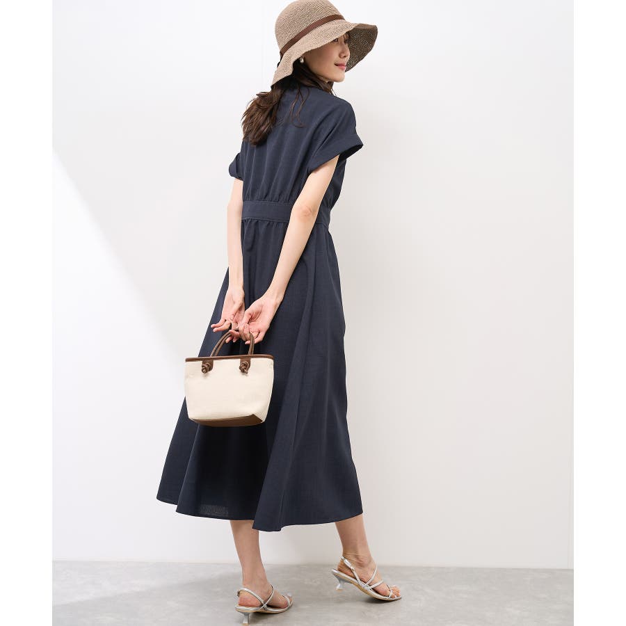 ・麻調のポリエステル素材でナチュラルなドライタッチ。