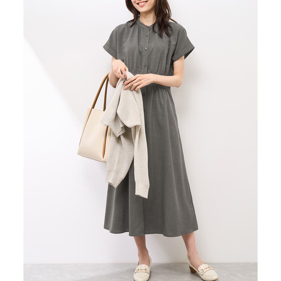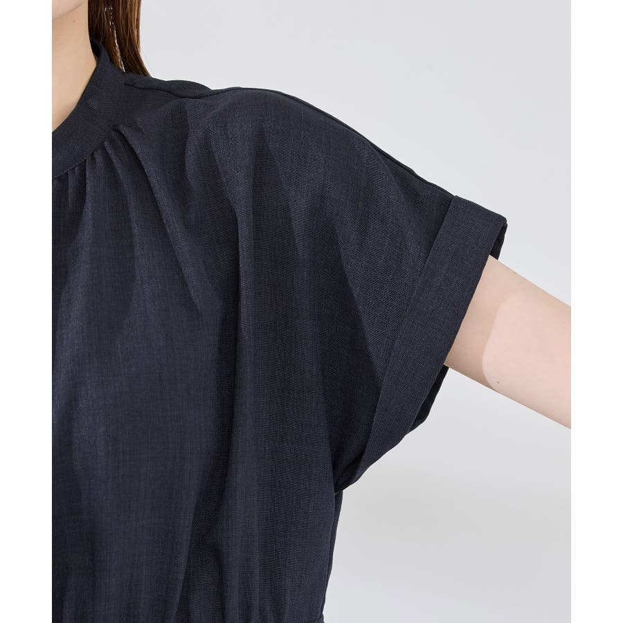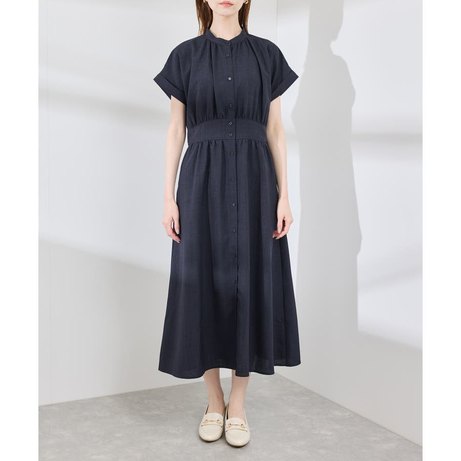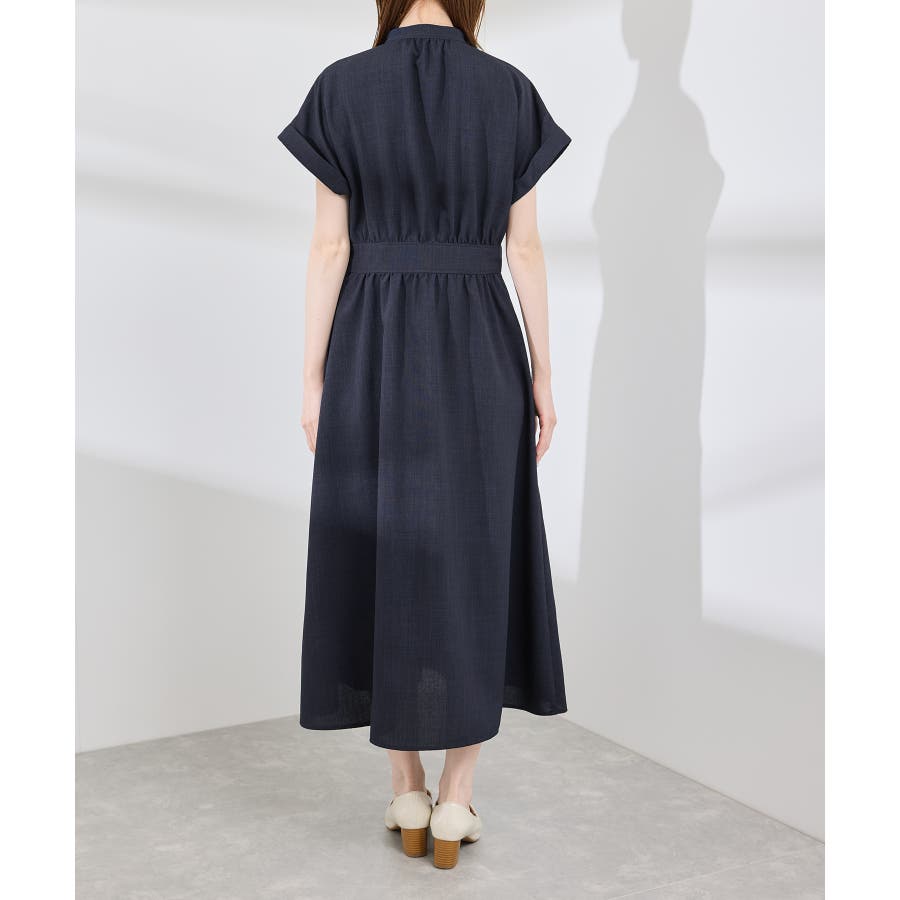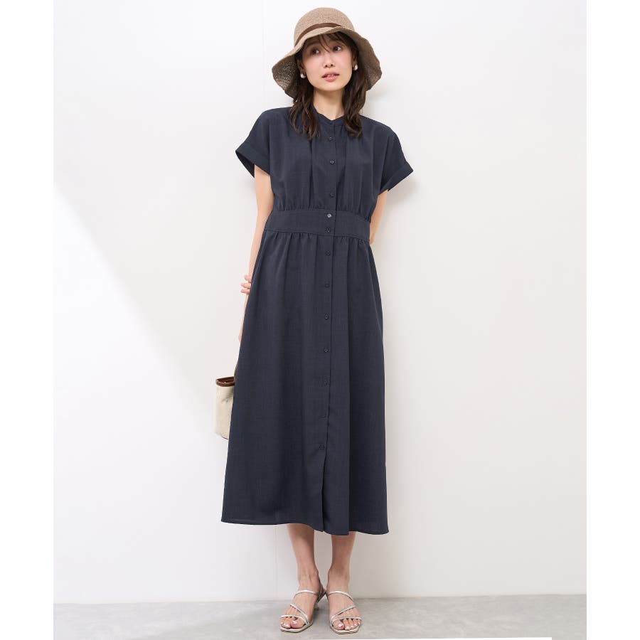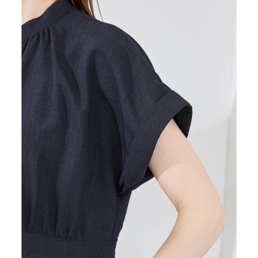 ・麻調のポリエステル素材でナチュラルなドライタッチ。