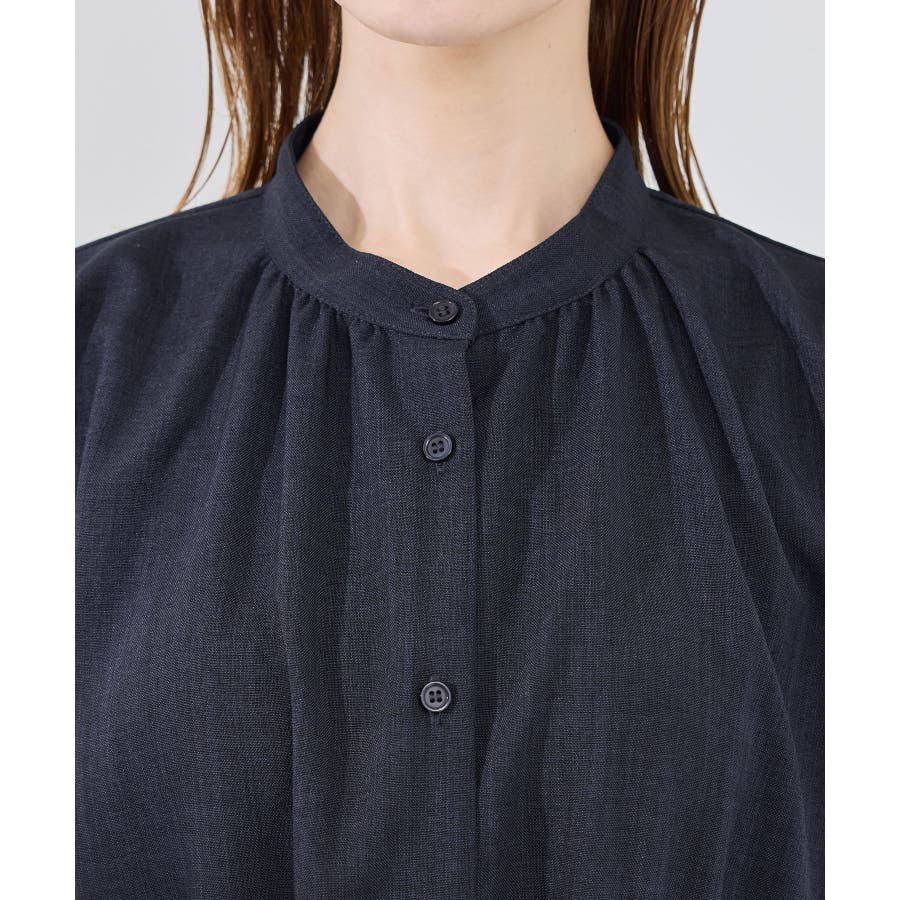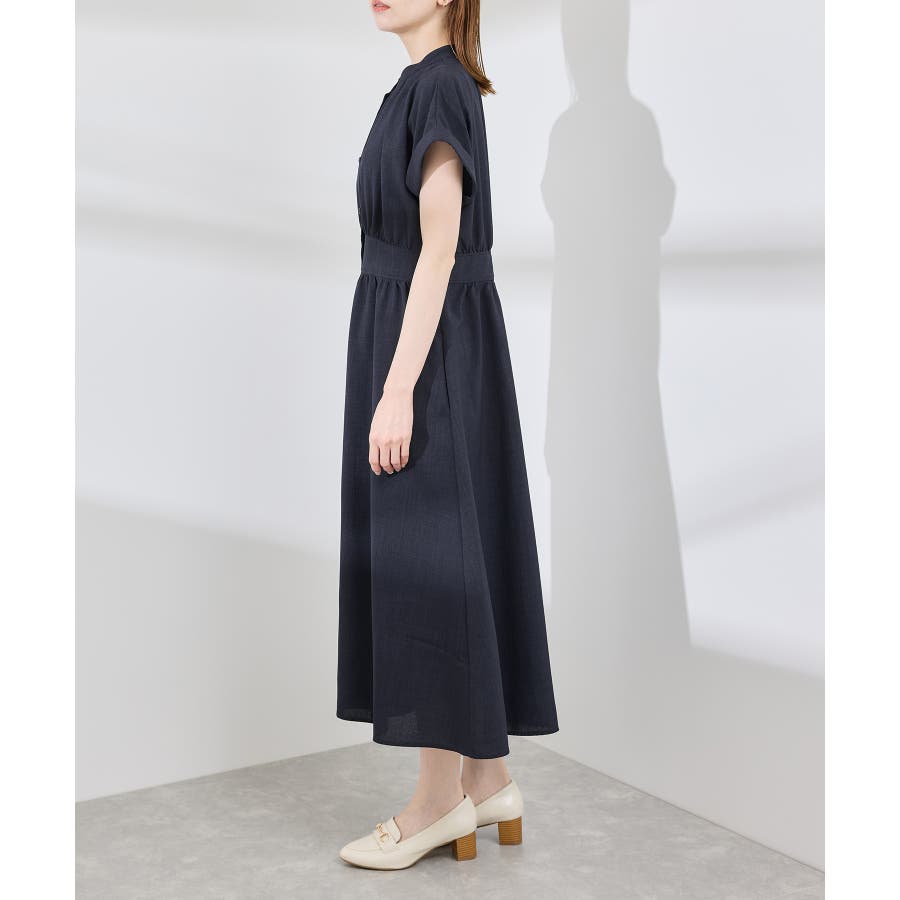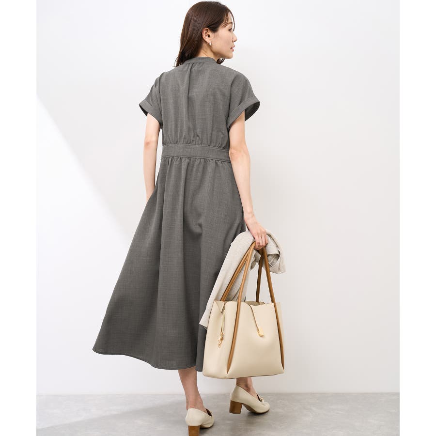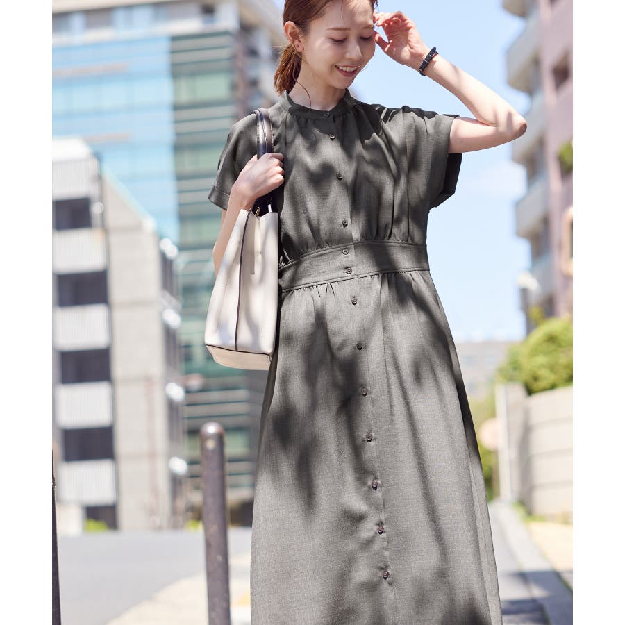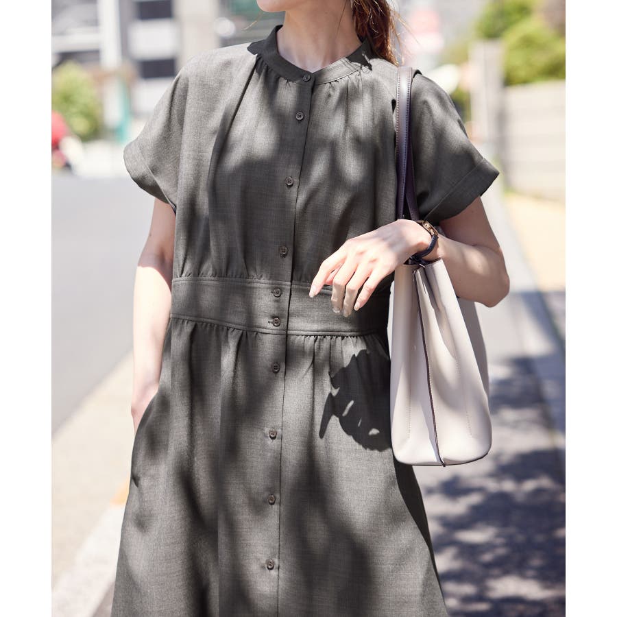 ・麻調のポリエステル素材でナチュラルなドライタッチ。