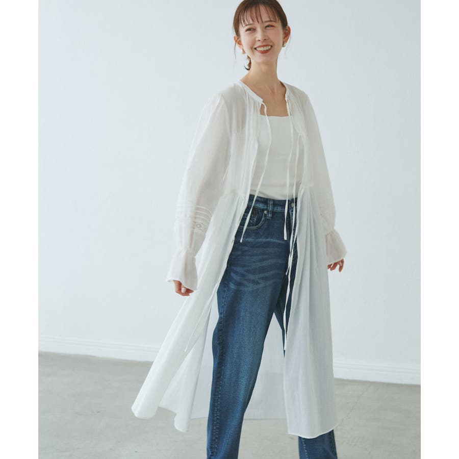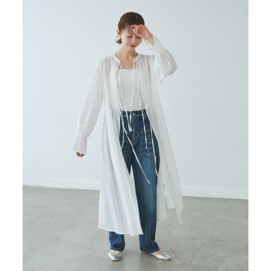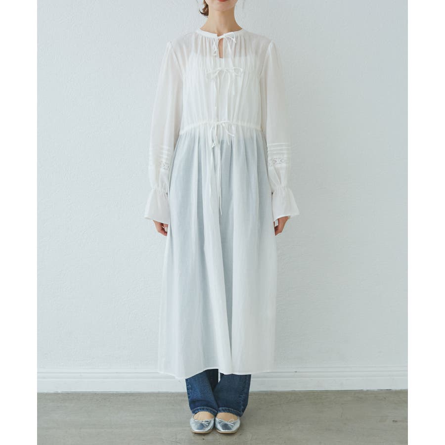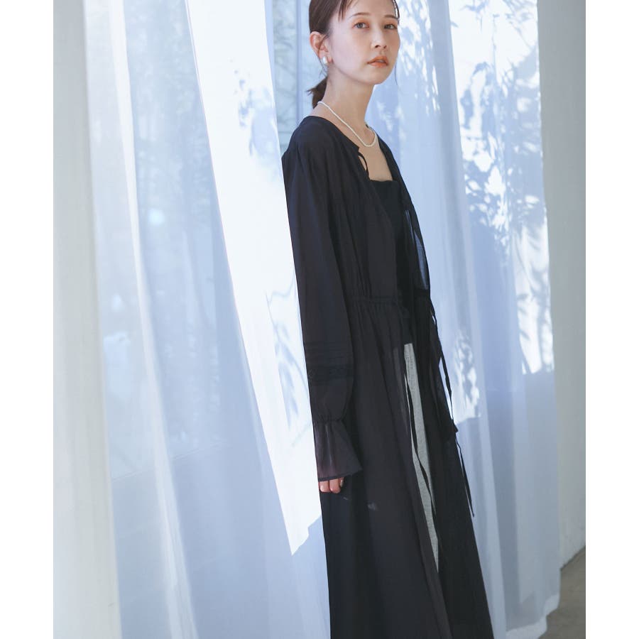 ・羽織りとしてデニムやTシャツと合わせたカジュアルスタイルから、ワンピースとしてリボンを結びフェミニンに着こなすことも可能。