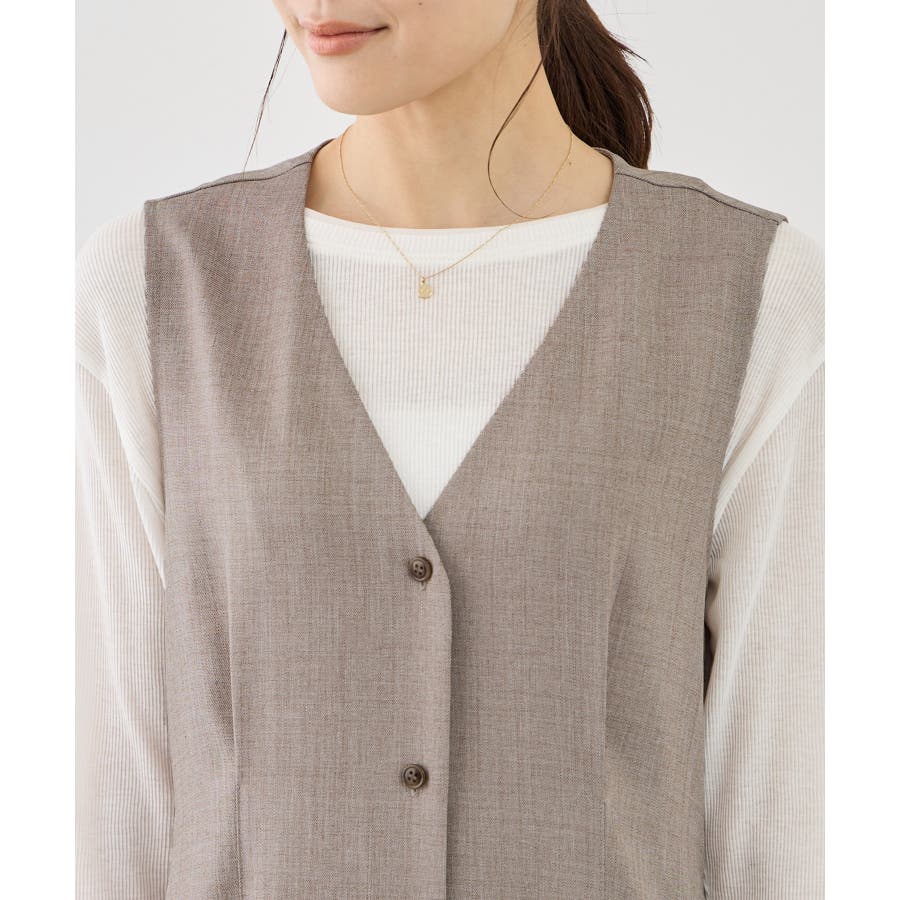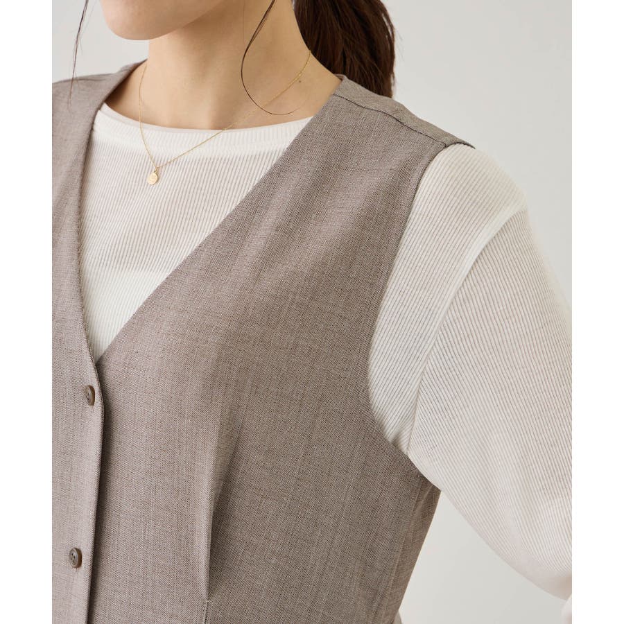 ・Vネックデザインで顔まわりをすっきり見せ、インナーとのレイヤードも楽しめる仕様。