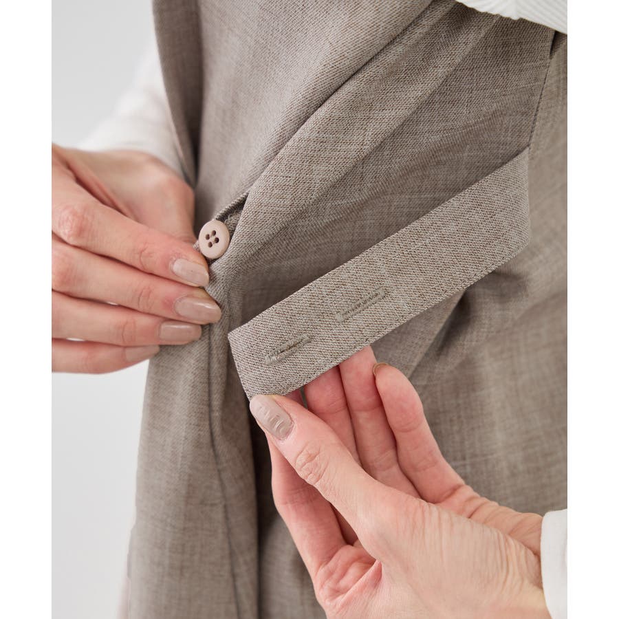 ・ボタンベルトでウエスト位置を調整し、好みのシルエットに。