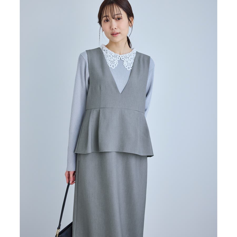※前シーズンのペプラムジャンパースカート(品番:GDE55080)と同型、素材違い。