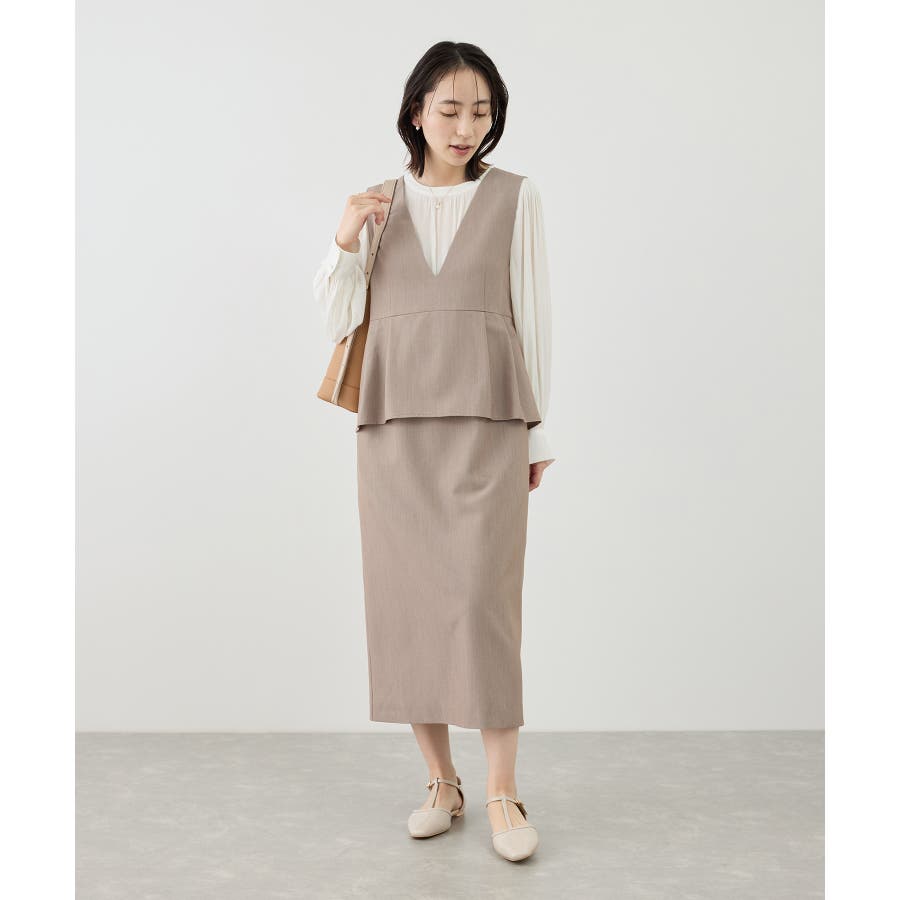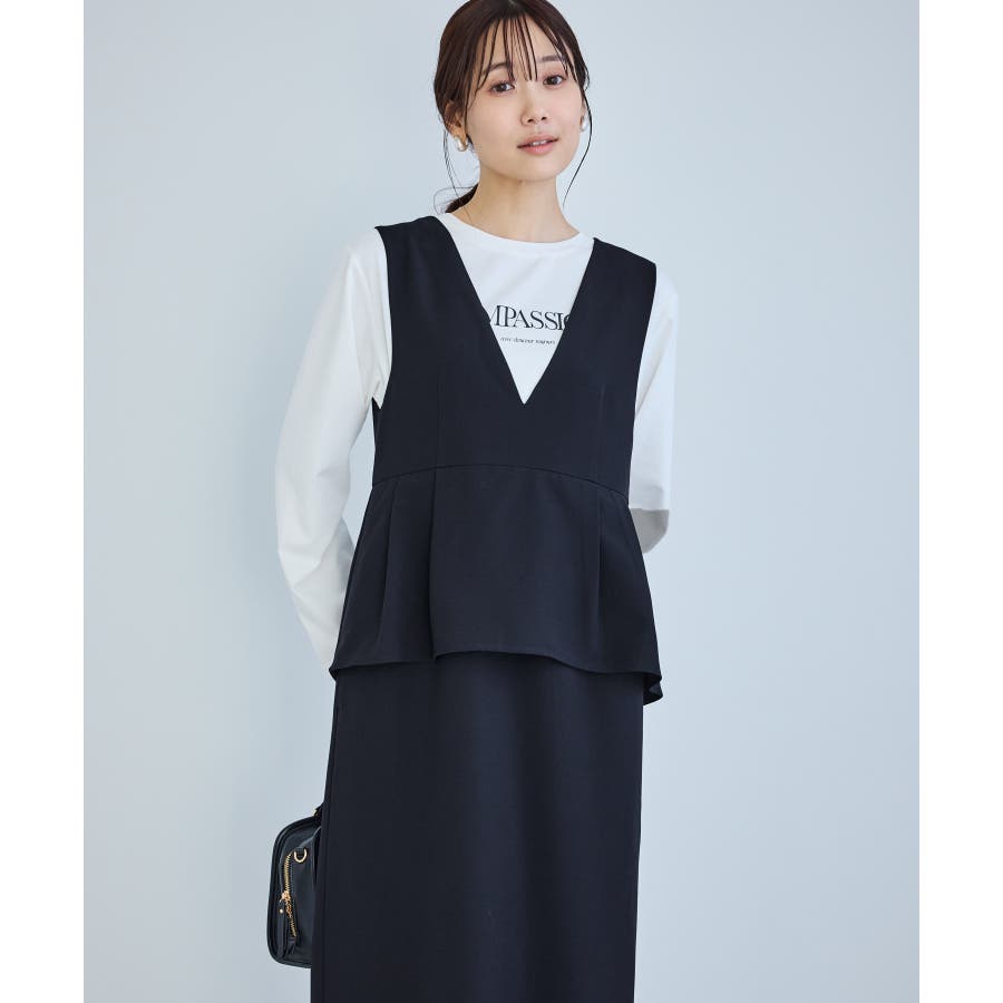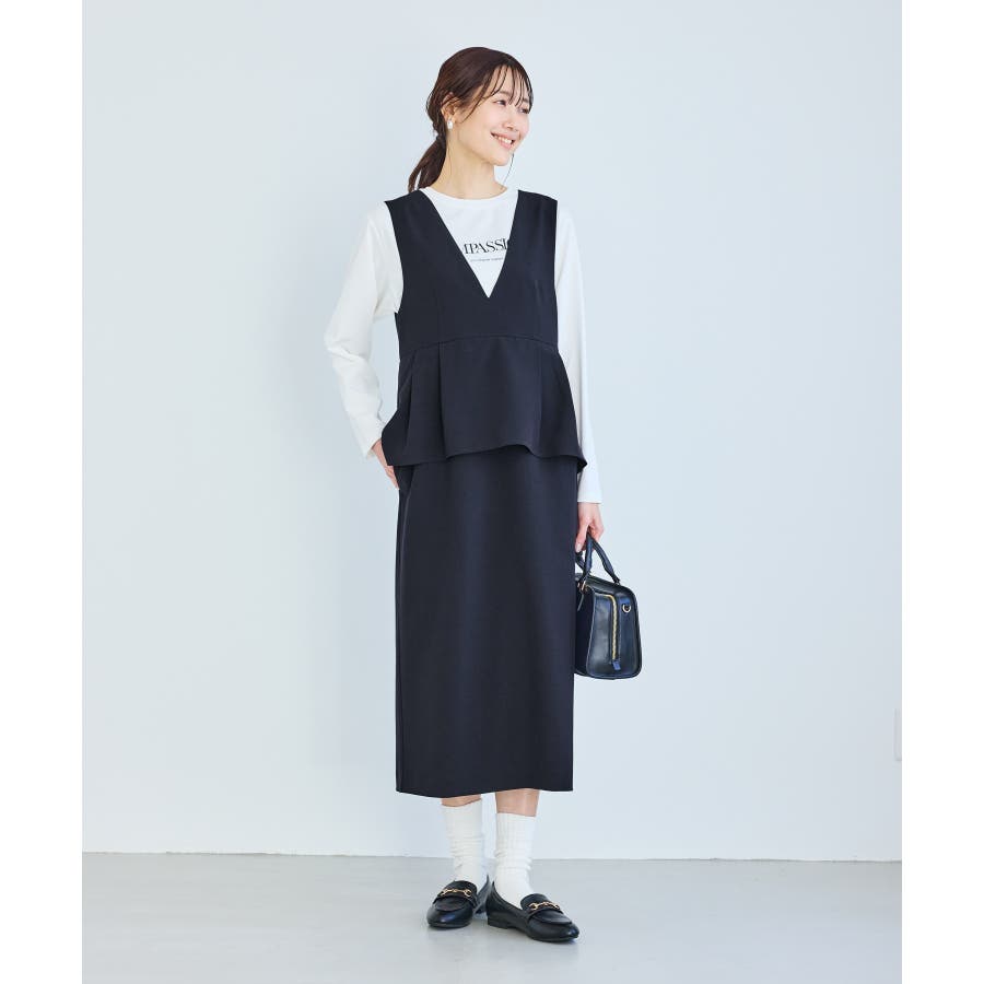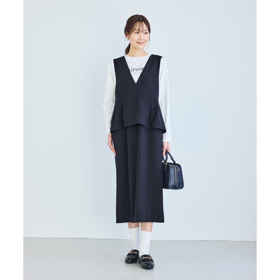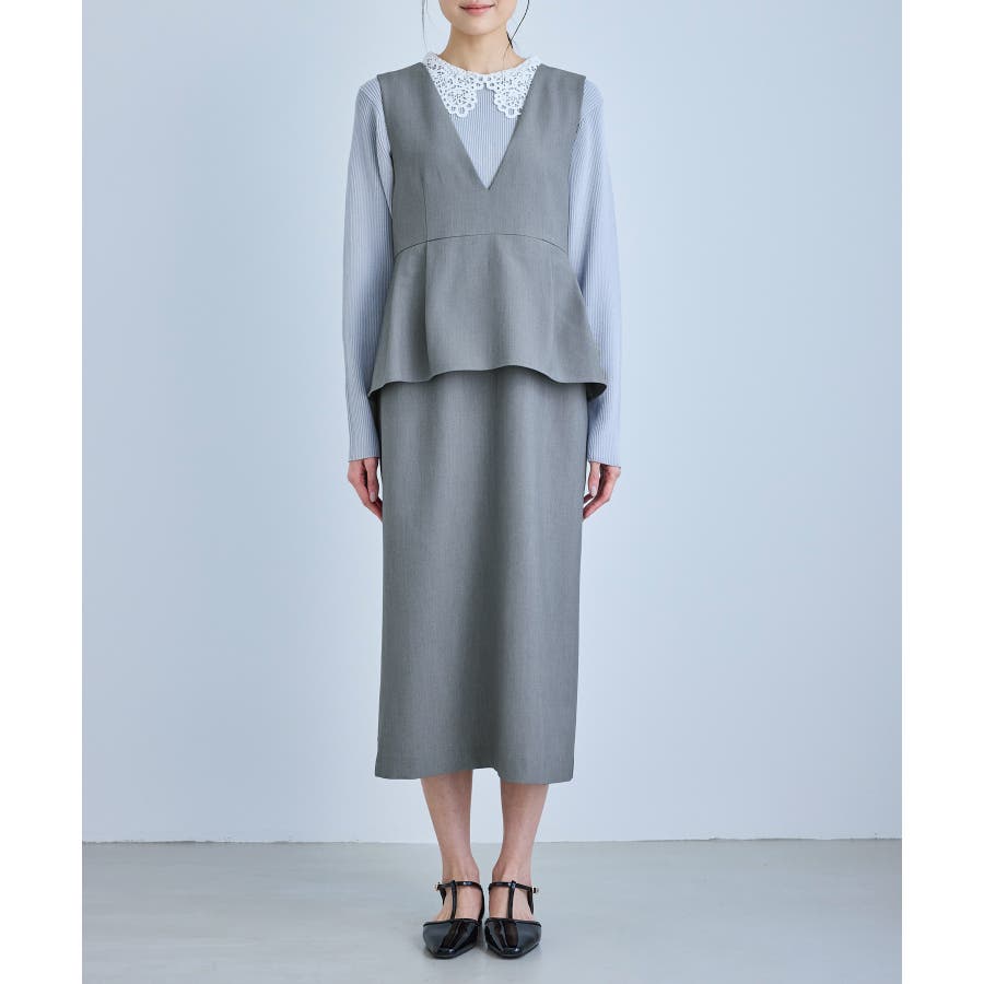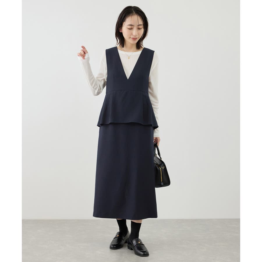 レイヤード風ペプラムジャンパースカート