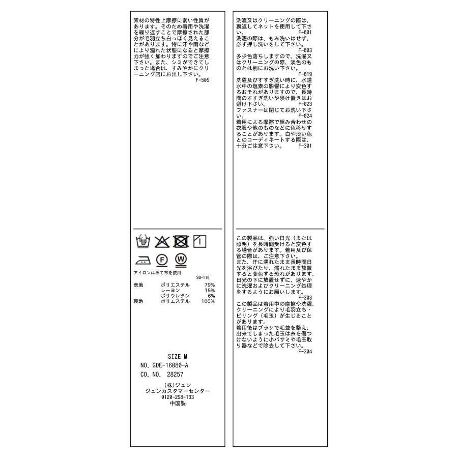 | 素材 | (表地) ポリエステル 79% レーヨン 15% ポリウレタン 6% (裏地) ポリエステル 100% |