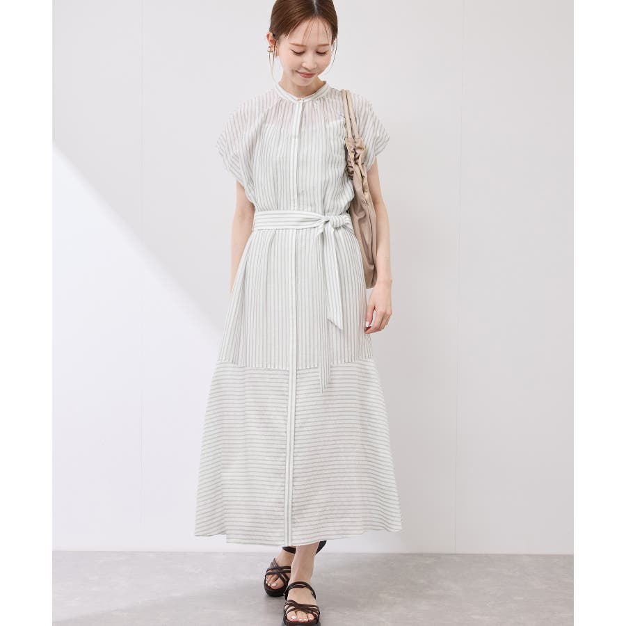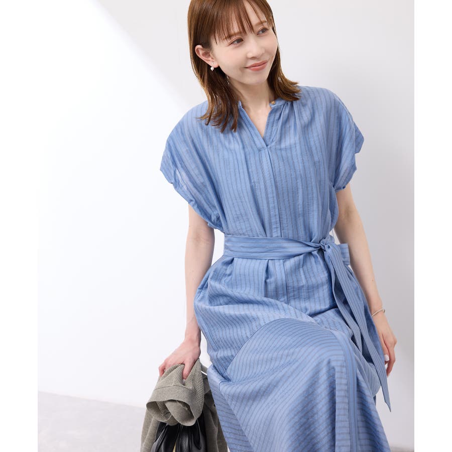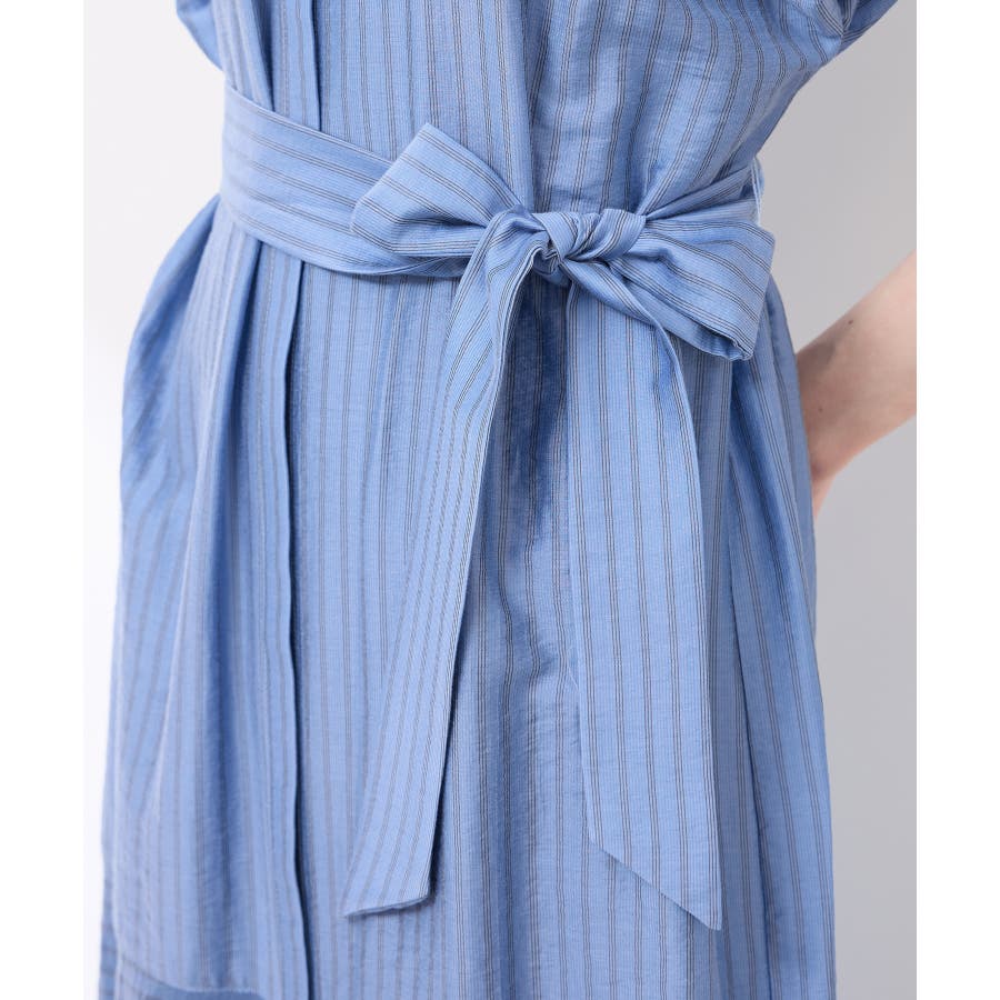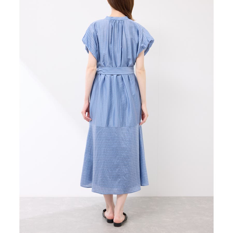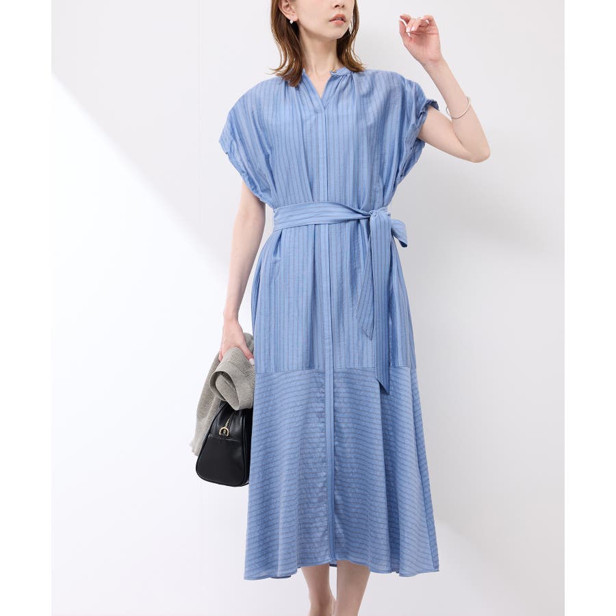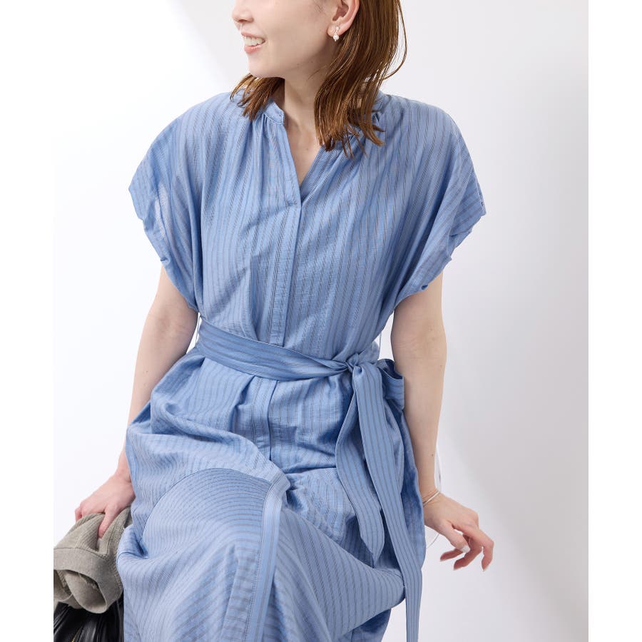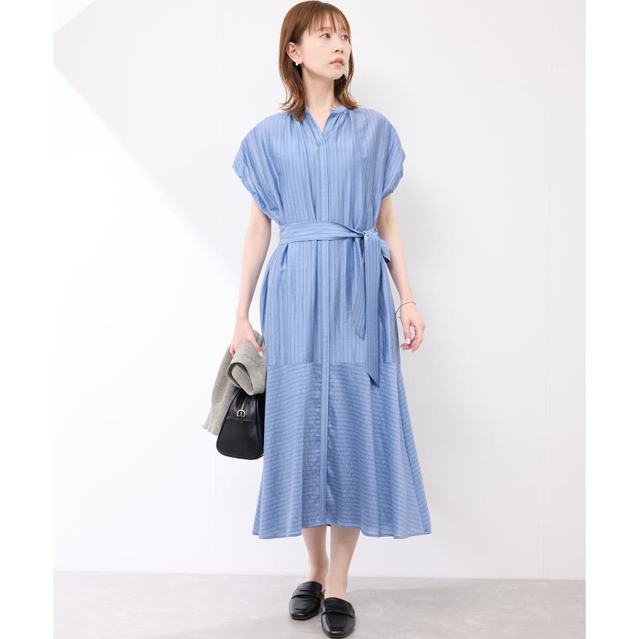 ・ドビーストライプのシャツ型ワンピース。