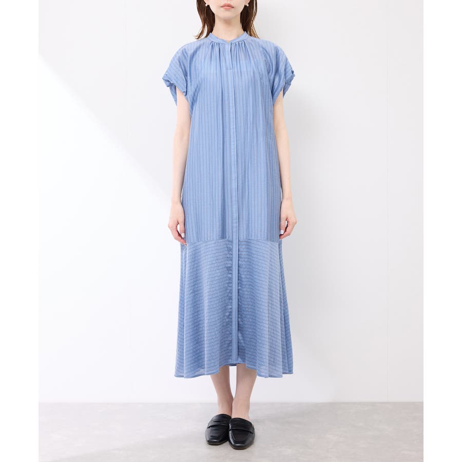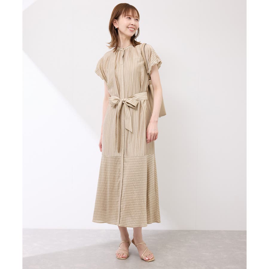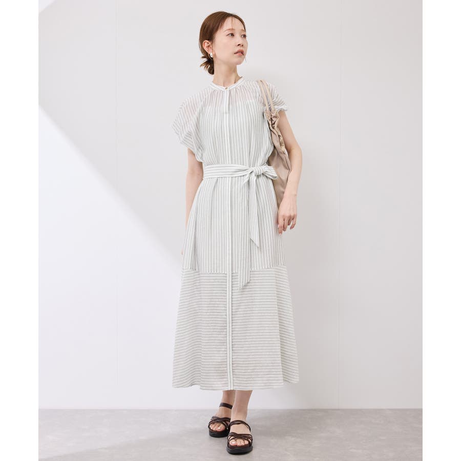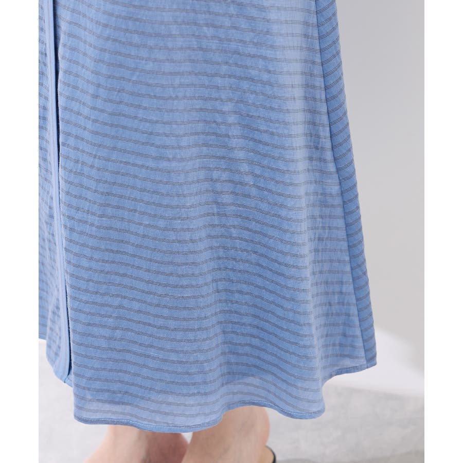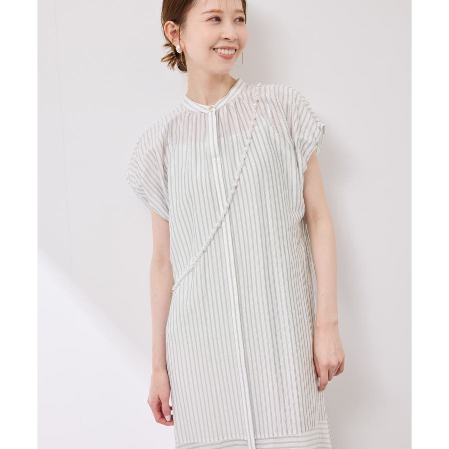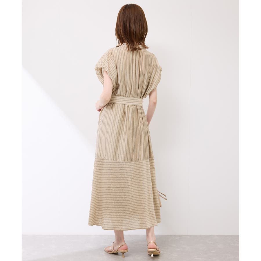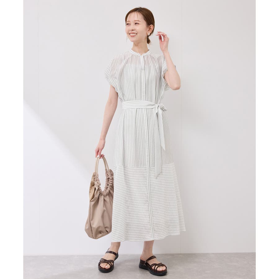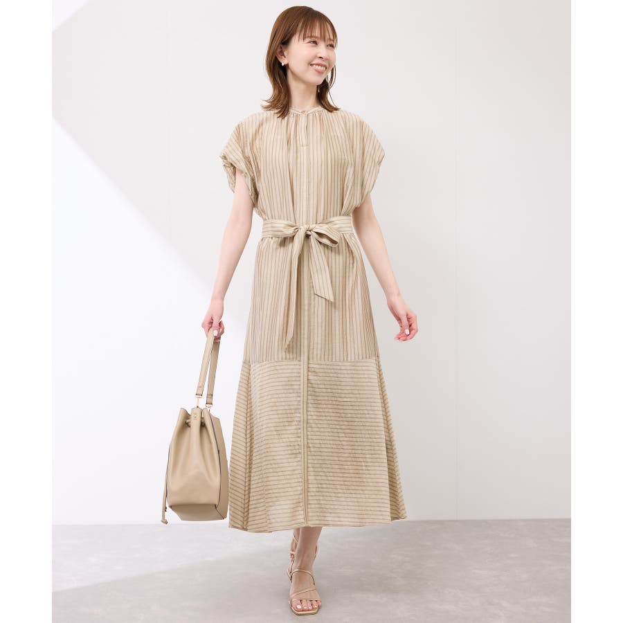 ・ドビーストライプのシャツ型ワンピース。