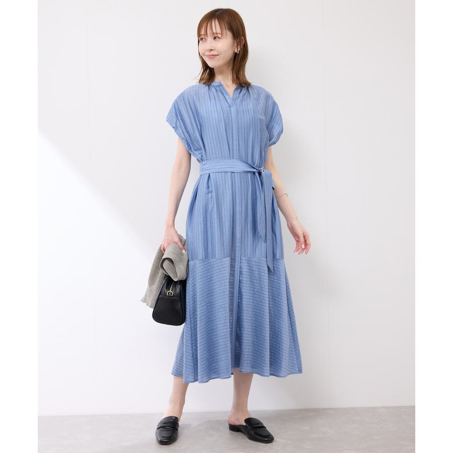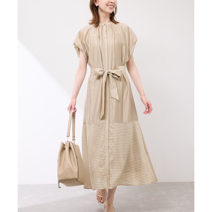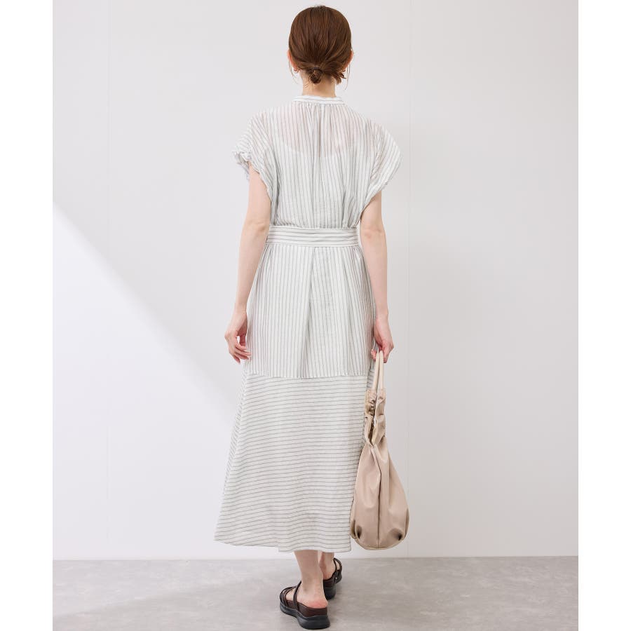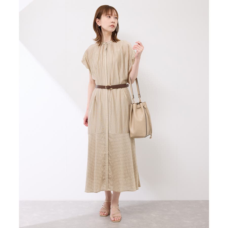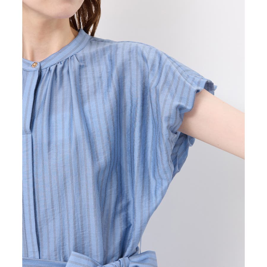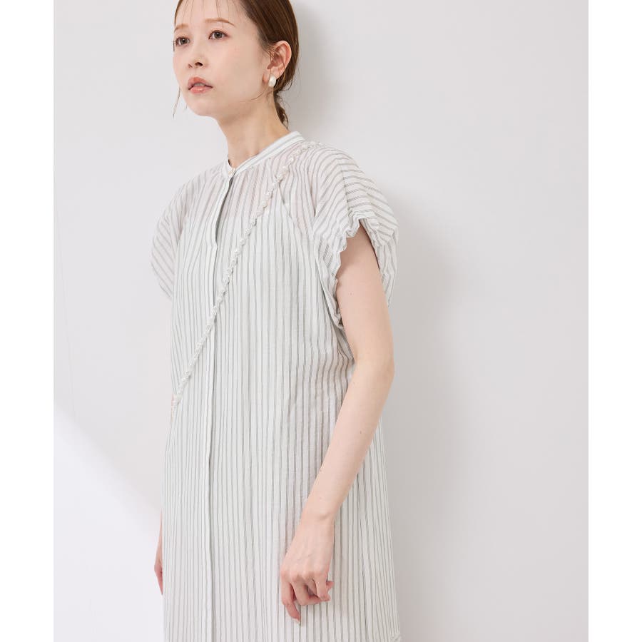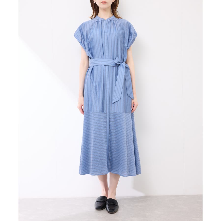 ・ドビーストライプのシャツ型ワンピース。