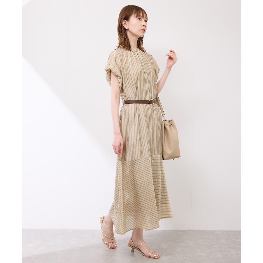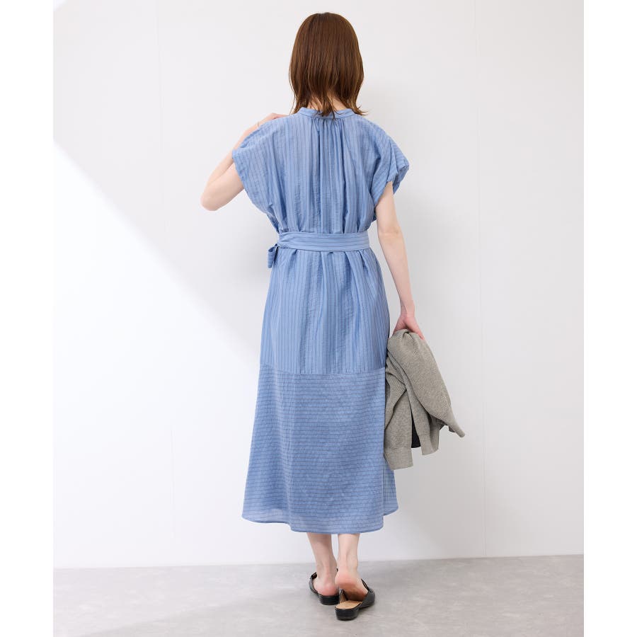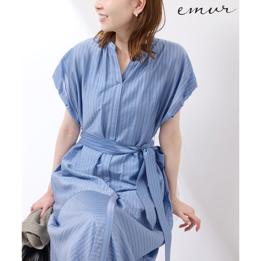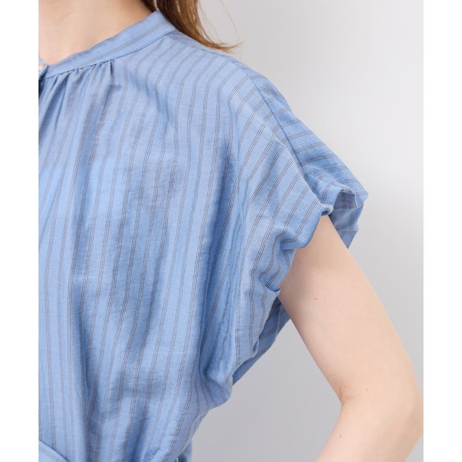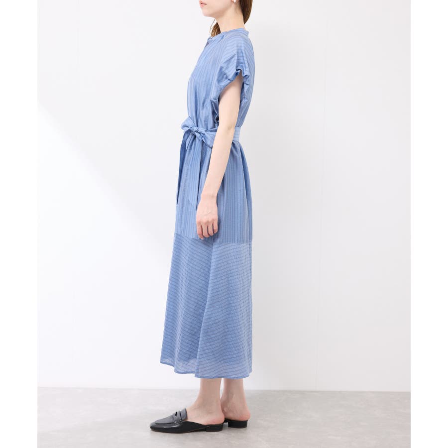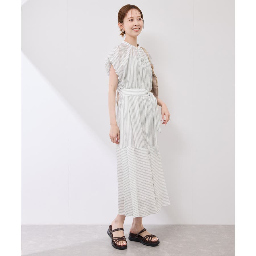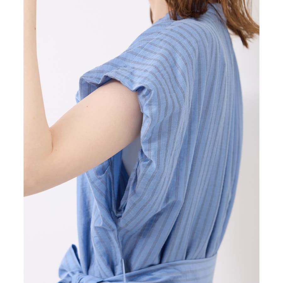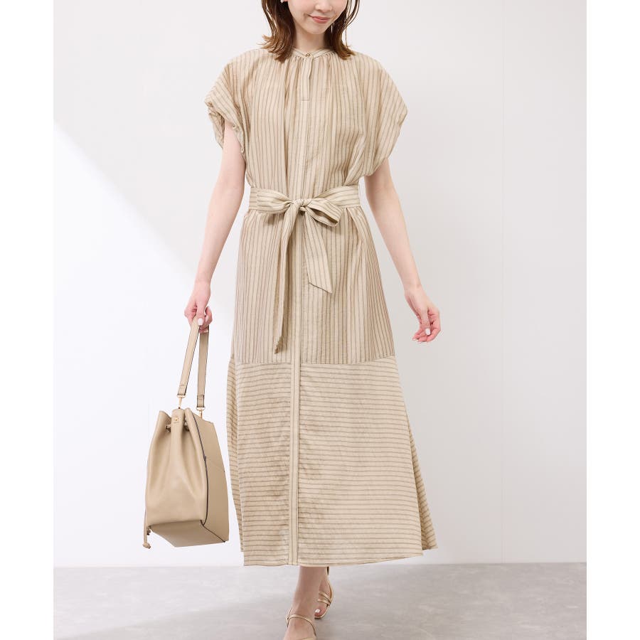 ・ドビーストライプのシャツ型ワンピース。