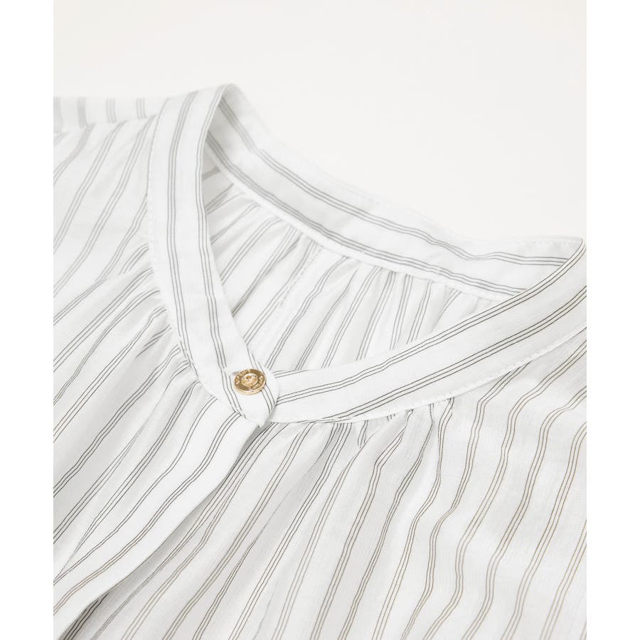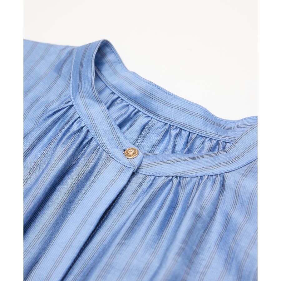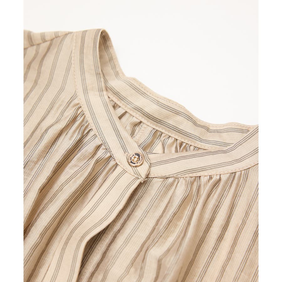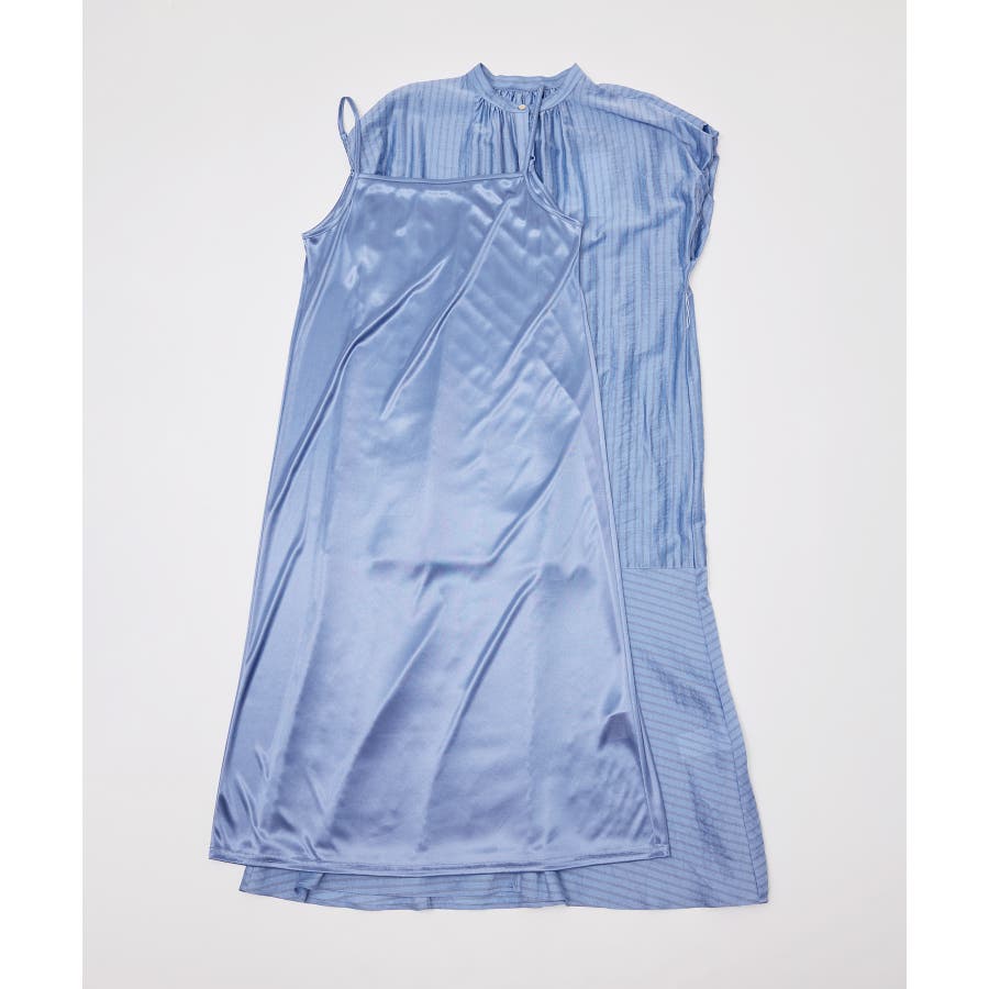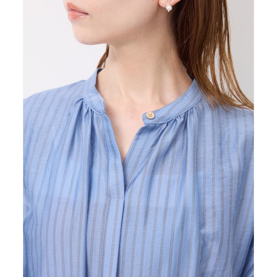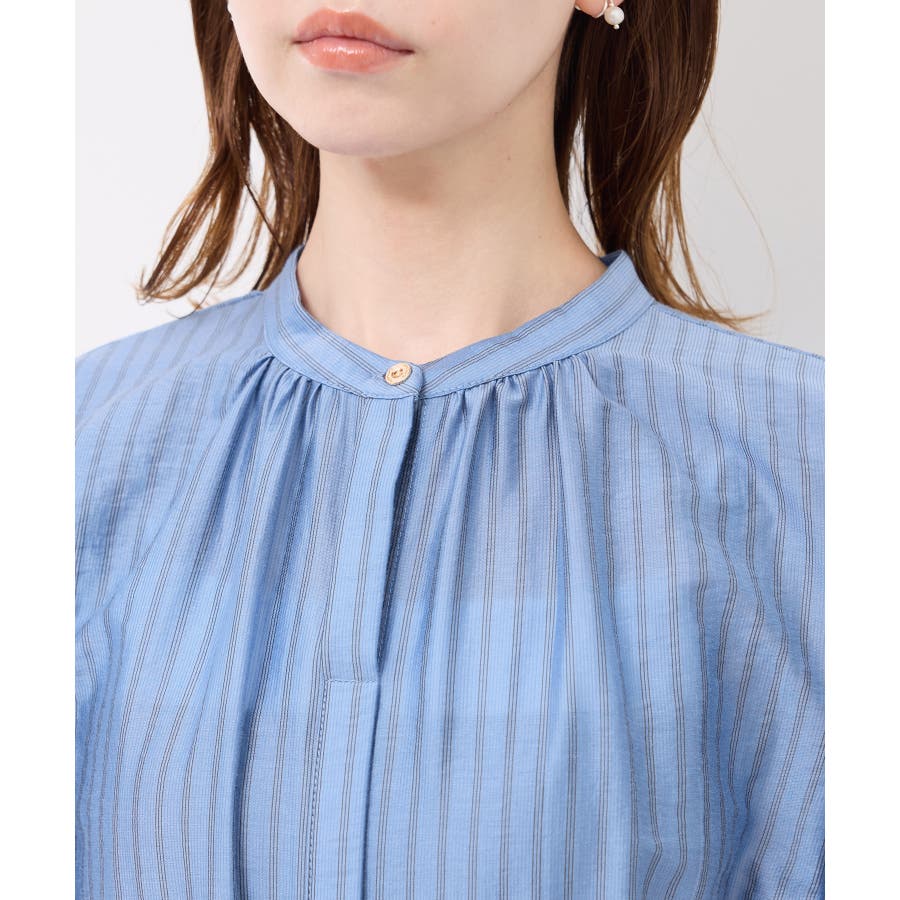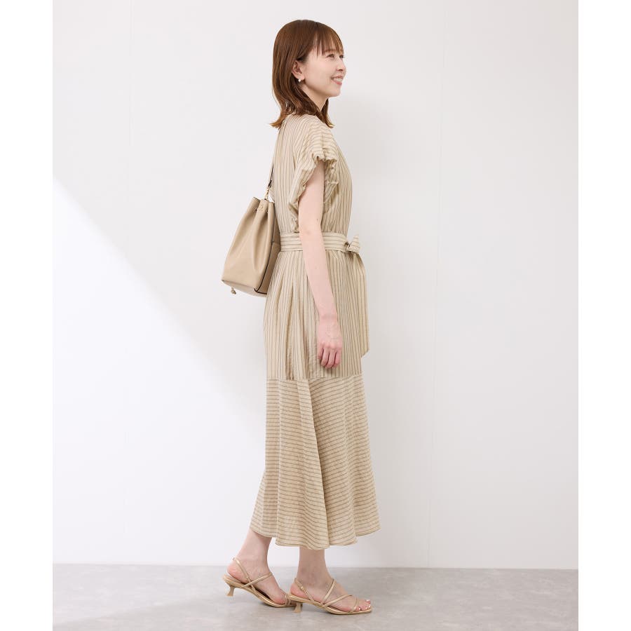 ・ドビーストライプのシャツ型ワンピース。