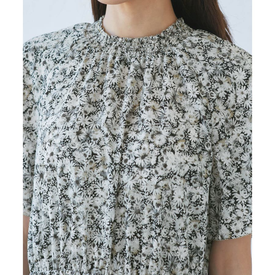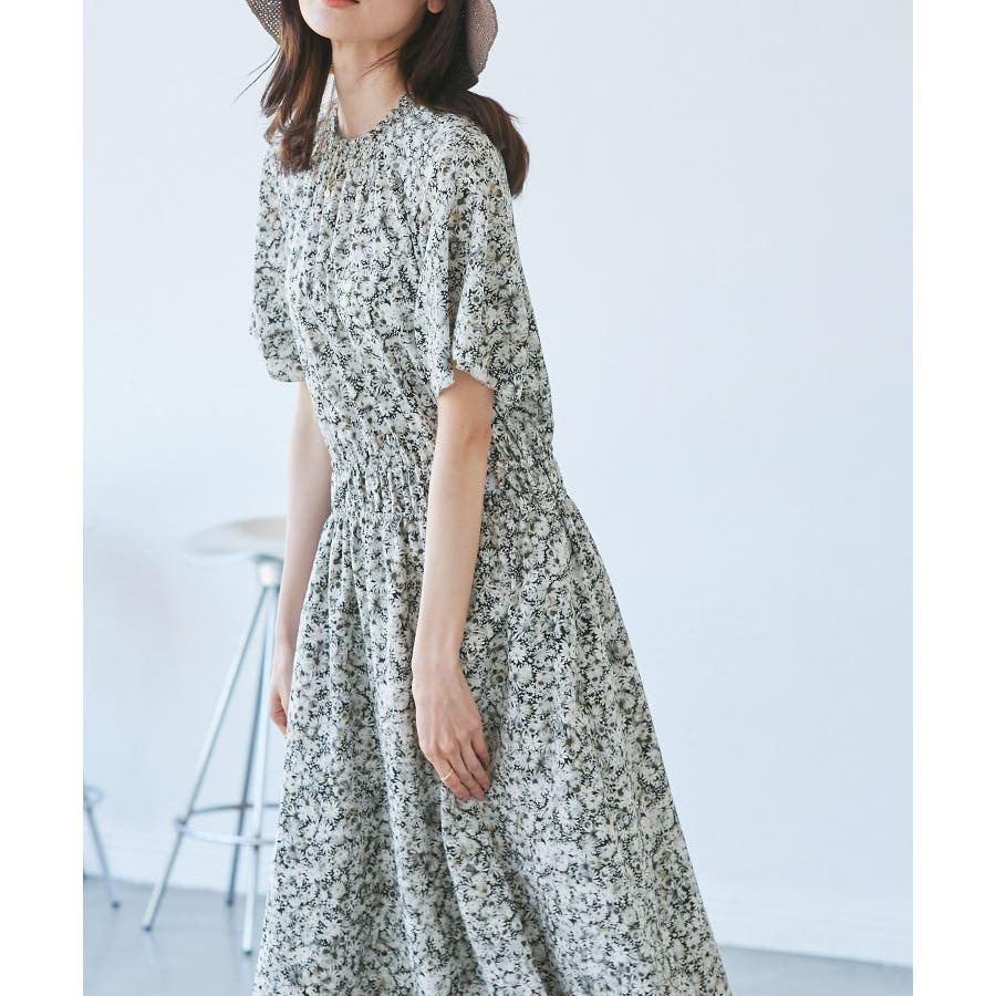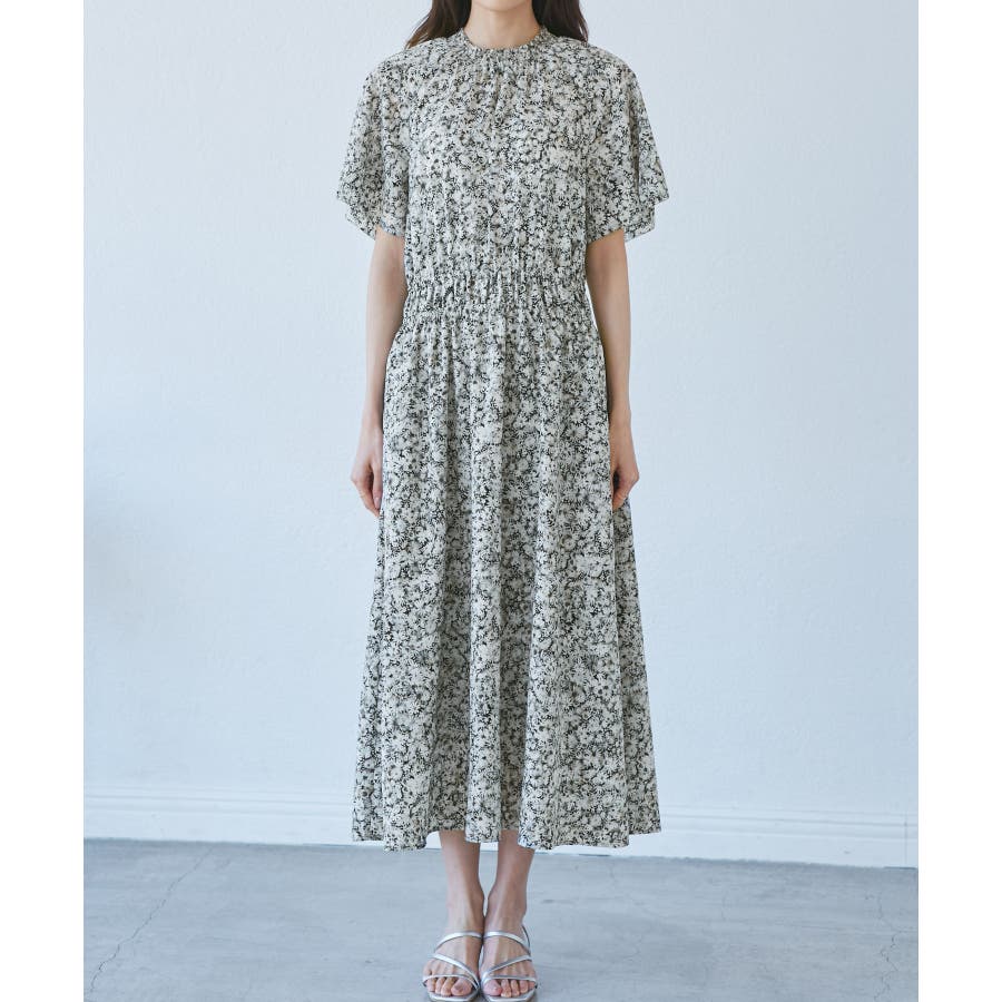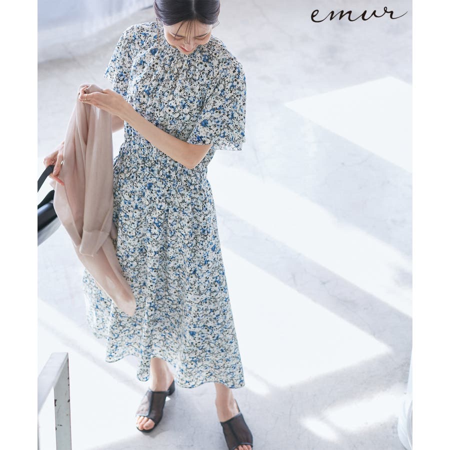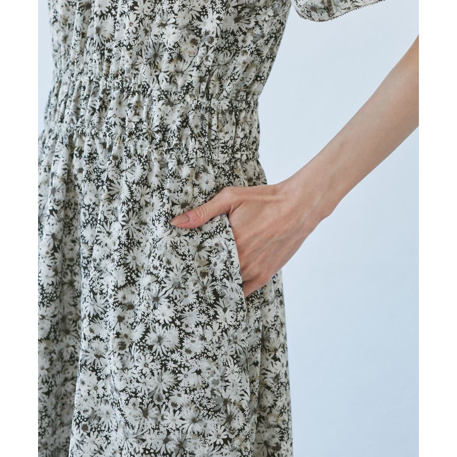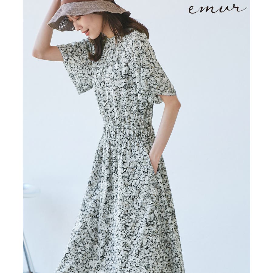 【emur/エミュール】マーガレット柄シャーリングワンピース